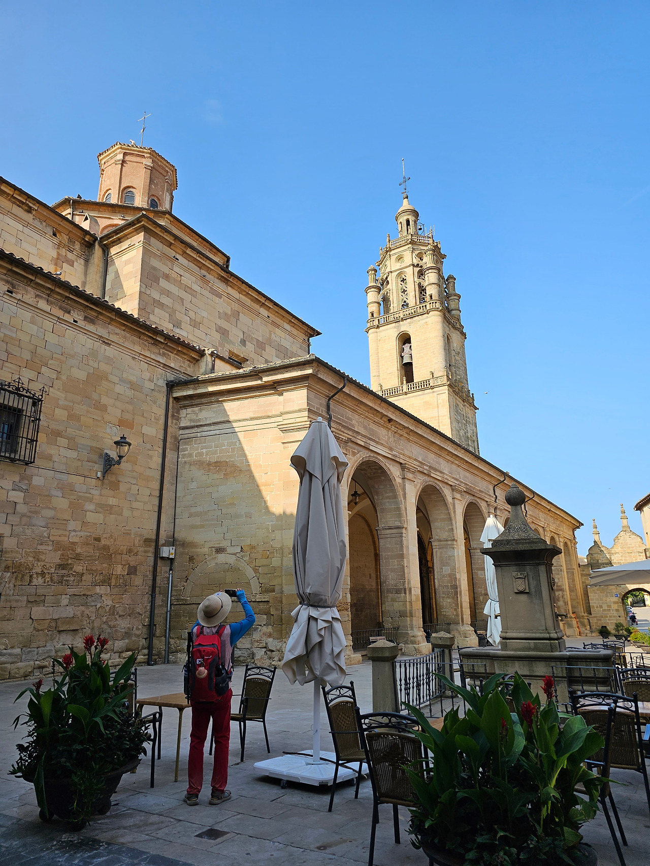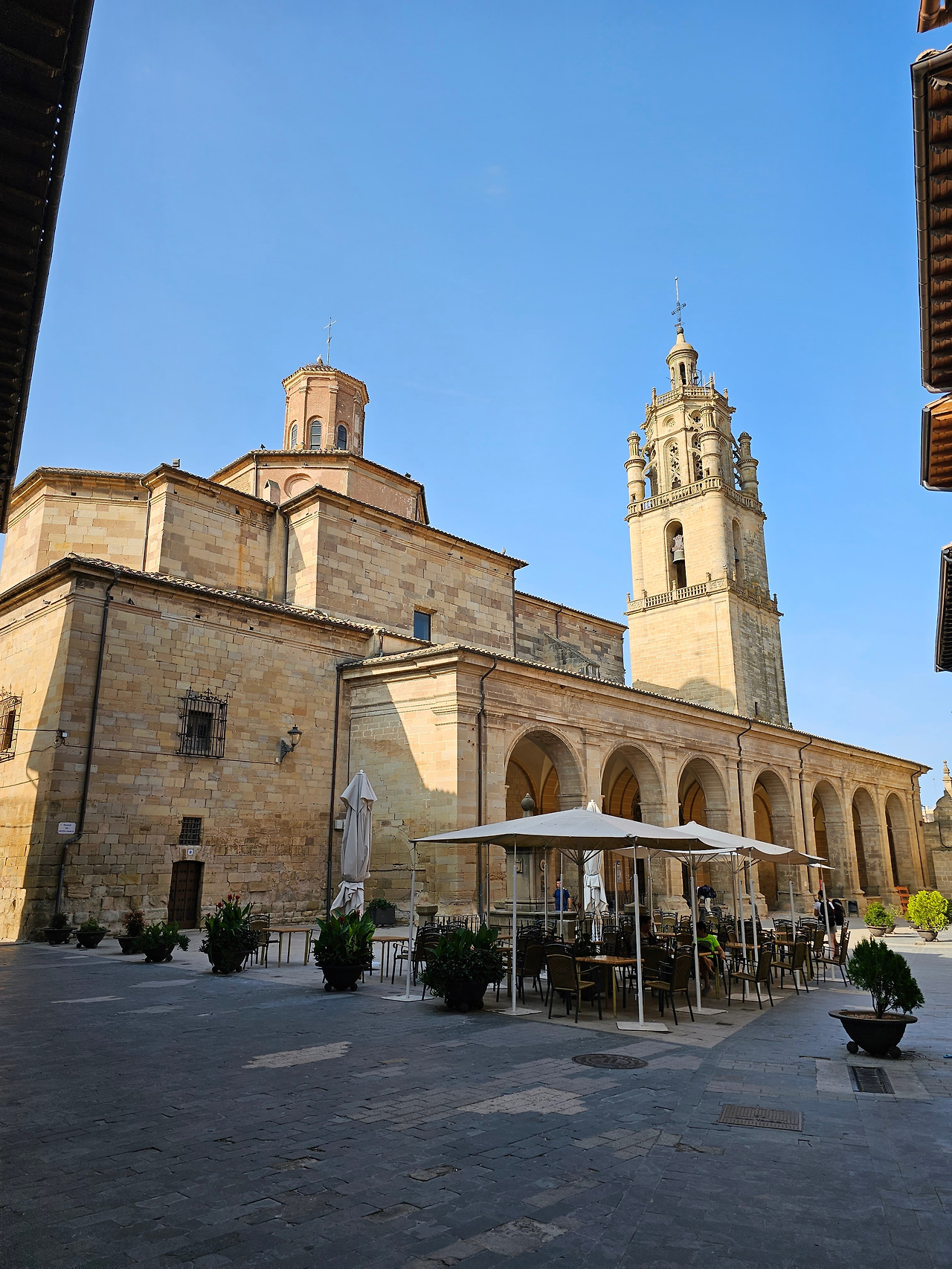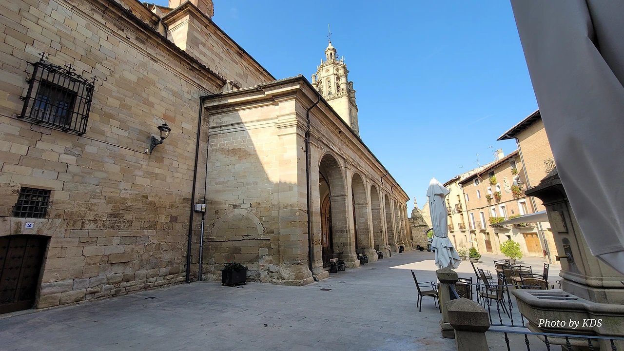 산따 마리아 성당(Iglesia de Santa Maria)은 12세기의 로마네스크 양식이 바로크 양식으로 바뀌는 변화가 느껴지면서 조화를 이루는 성당이다. 십자가 평면의 성당은 그리스와 로마식 신랑(神廊)으로 이루어져 있으며, 16세기에 보수되어, 성당의 일부 요소는 로마네스크 양식의 요소를 간직하고 있다. 바로크 시대의 반종교개혁으로 내부의 장식이 변화되었으며, 나바라 왕국이 가지는 바로크 양식의 풍성함과 특별함을 지니고 있단다. 외부에는 거대한 쿠폴라와 16세기 중반에 세워진 아름다운 르네상스 풍의 탑이 있다. 팔각형의 이 탑은 산티아고로 가는 길에 볼 수 있는 가장 높으면서 가장 아름다운 탑 중 하나이다. 성당의 내부를 장식한 벽화들은 부르고스 출신의 끄리스또발 곤살레스의 작품인데, 꼬르도바 가죽가공을 차용하여 나무와 은 위에 벽화를 그렸다. 1561년에 만들어졌다는 바로크 장식이 아름다운 합창대의 각석과 그 아래에 만들어진 고딕양식의 회랑은 이곳을 방문하는 순례자에게 좋은 인상을 준다.