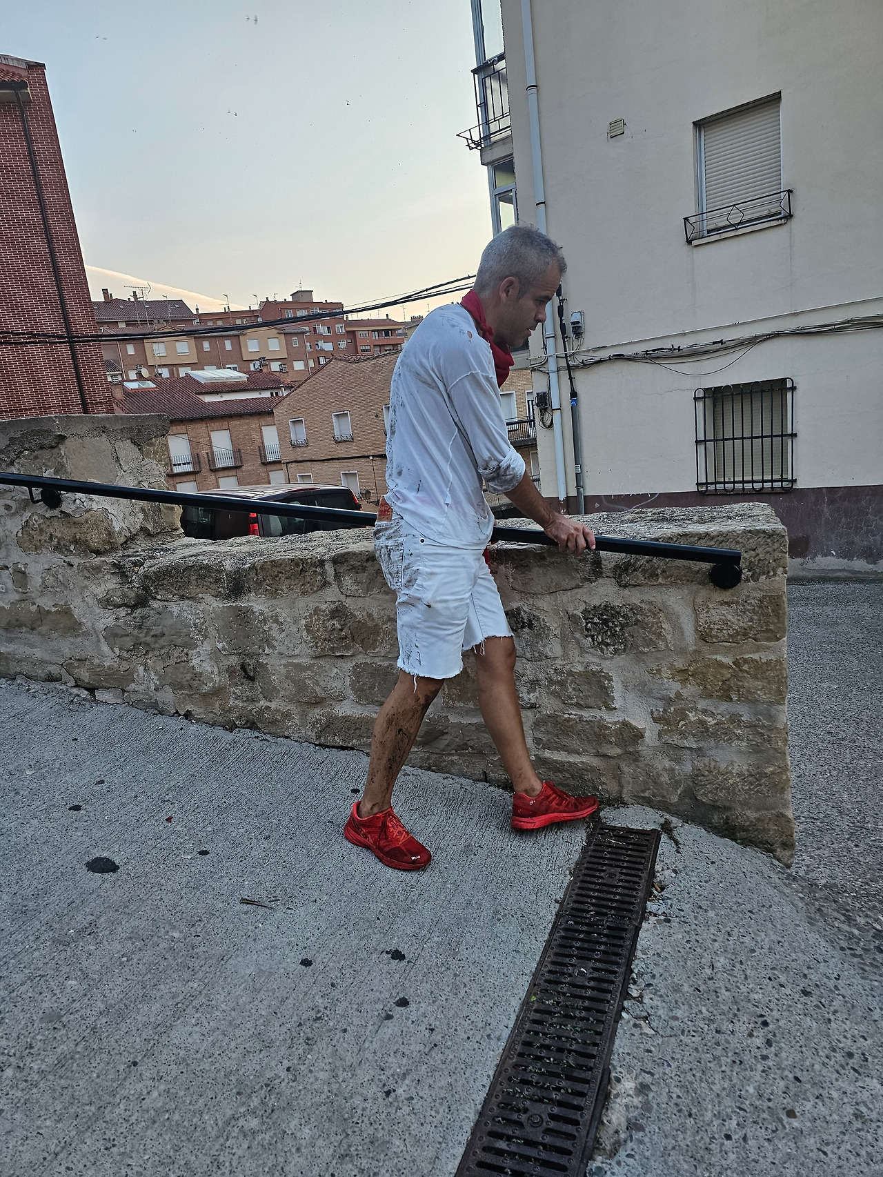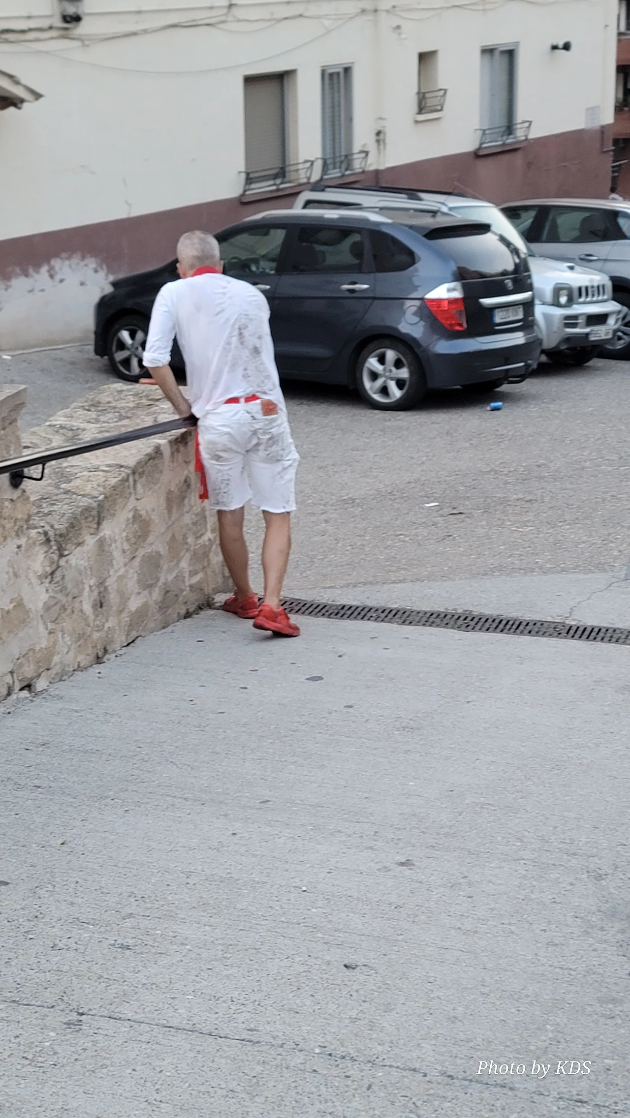 비아나(Viana)에서 어제 축제의 밤을 보내고 이른 아침에 배낭을 다시 꾸려서 순례길은 나섰다. 알베르게를 나와서 순례길을 가자면 어제 축제장을 지나야 한다. 약간의 오르막을 올라 가는데 축제 복장을 한 사나이기 길바닥에 누워서 잠이 들어 있었다. 마치 노숙을 하고 있는 지나가는 과객 마냥 대담하게 드러누워 있었다. 무심히 지나칠 수가 없어서 가까이 가서 흔들어 일으켰더니 술이 덜 깬 눈으로 왜 남의 단잠을 깨우느냐는 얼굴이다. 자더라도 집에 들어가서 자라고 일으켜 세웠더니 그제야 비틀거리면서 일어난다. 몸을 가누기가 여간 불안해 보이지 않다. 조선 과객 금삿갓은 갈길이 바쁜데 그대를 집까지 데려다줄 수가 없는 처지다. 괜찮으냐고 물어보니 문제없단다. 그럼 조심해서 가거라. 나도 내 길을 가야겠다. 혹시나 해서 가는 모습을 기록으로 남겼다.