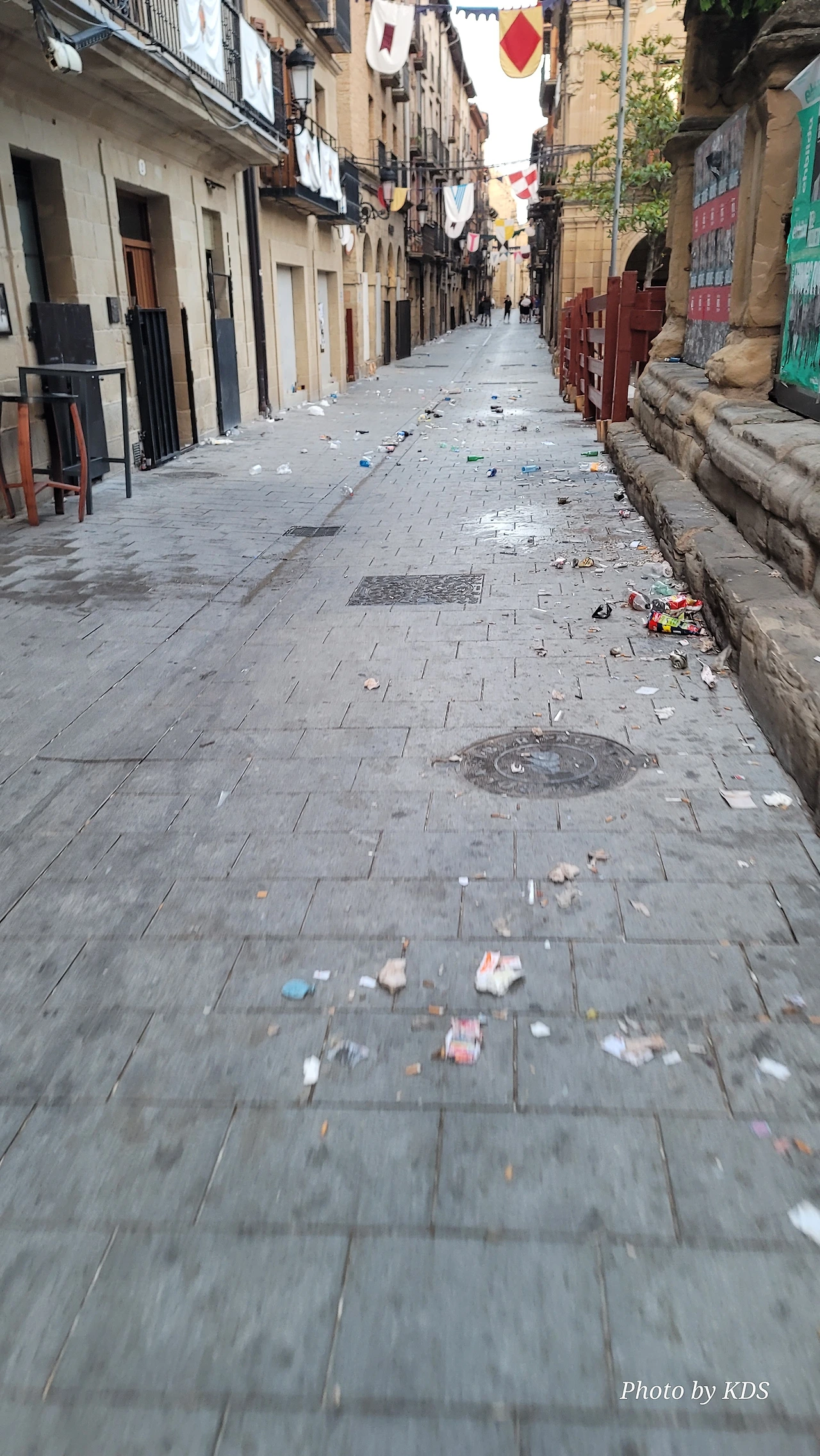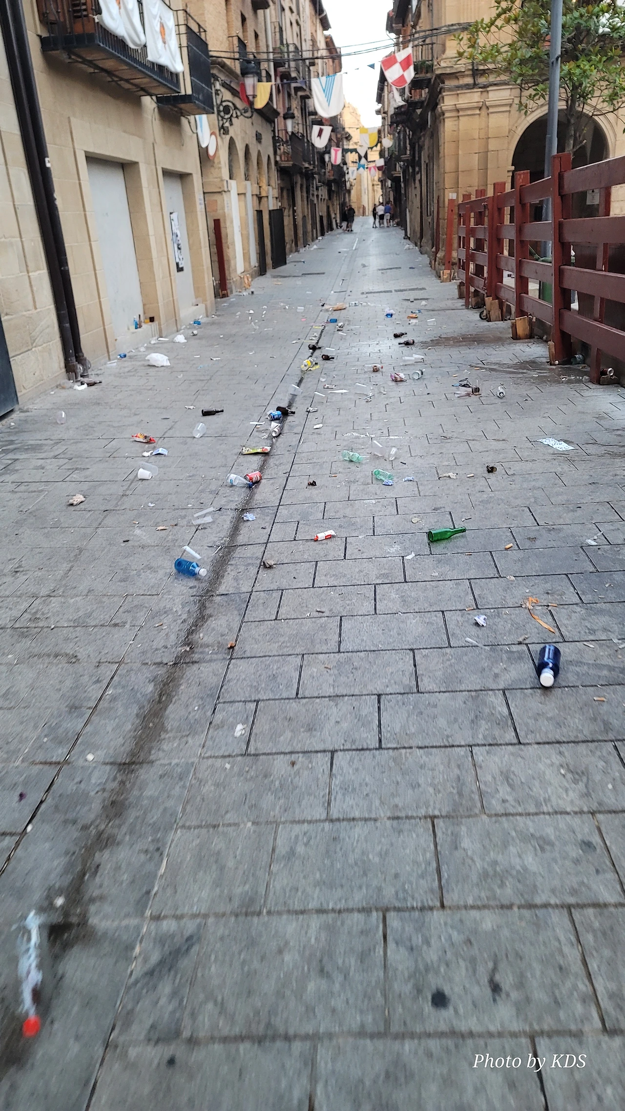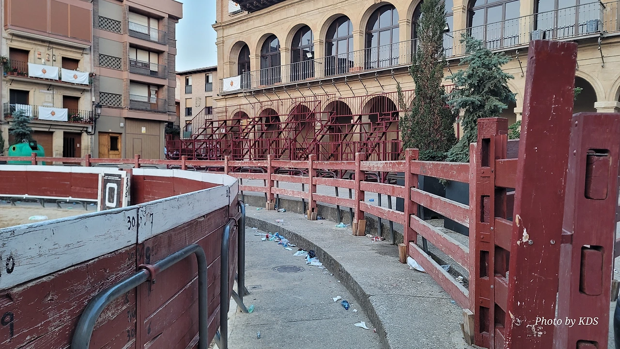 소몰이 축제가 열였던 골목은 소몰이가 끝나고 밤새 먹고 마신 뒤끝이 깨끗하지 못했다. 골목 어귀에 들어서자 퀴퀴한 맥주 냄새와 지린내가 물씬거리고 올라온다. 길에는 버려진 술병과 쓰레기가 즐비하다. 많은 사람이 모였던 광자의 모습은 더 처참했다. 일요일인데도 일찍부터 시청 청소원들이 출근하여 열심히 쓰레기를 치우고 있다. 우리나라 붉은 악마들은 거리 응원을 하고 난 후에도 깨끗하게 있던 곳을 정리하고 떠나는데, 이들도 그런 것은 좀 본받아야겠다. 스페인 와서 느끼는 건데 일반인들이 쓰레기나 특히 담배꽁초를 버리는걸 무척 자주 보았다. 골목 구석구석 담배꽁토 투성이다. 담배를 피우는 것도 매우 관대하고 길거리든 공원 벤치든 어디든 아주 자연스럽게 남녀노소를 불문하고 담배를 피우고 꽁초를 아무 데나 버린다. 반면에 쓰레기를 청소하는 청소원들 또한 열심히 청소한다. 아침 일찍 출근하여 자기가 맡은 구역을 열심히 청소한다.
