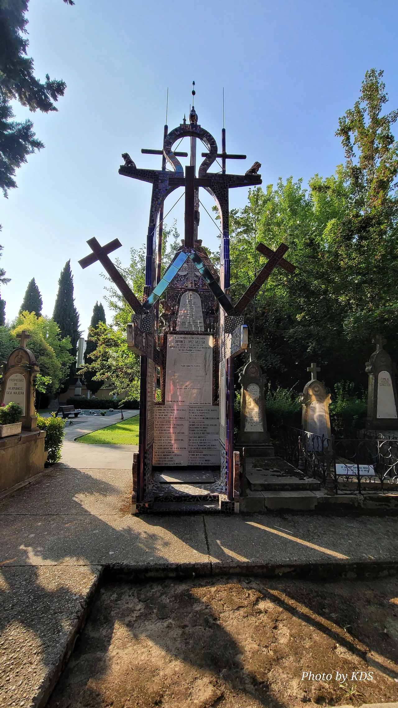 "이 성스러운 장소에 들어가라. 당신의 고귀한 상태를 기리기 위해"라는 문구를 새겨 놓은 타일 현판이 걸려 있다. 인생의 순례길을 걷다가 누구나 그 길을 끝마치고 사라진다. 다만 남는 것은 살아 있는 자의 기억에서 일 뿐이다. 이 기억을 더 현란하고 더 크게 만들기 위해 경쟁적으로 무덤을 크게 만들고 비석을 더 크고 존재감 있게 만드는 것일 뿐이다. 죽은 사람은 말이 없고 죽은 후의 일을 알지도 기억하지도 보지도 못한다. 살아있는 남은 자들이 자기만족으로 죽을 자를 돋보이게 만드는 것이다. 그렇다고 이런 것들이 무의미하다고는 보지 않는다. 각자가 각자를 기억하고 기리는 방법일 뿐이니까.