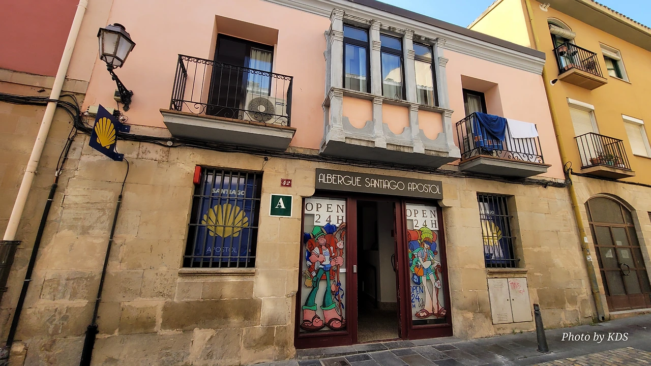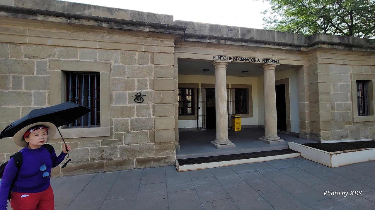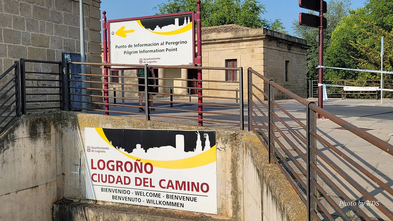 다리를 건너기 위해 다리 입구에 올라서면 바로 순례자들을 위한 안내소가 설치되어 있다. 순례자들은 이곳에 들여서 여러 가지 정보를 얻곤 하는데, 우리는 특별한 정보가 필요하지 않고 다만 그동안 참고 걸어온 용변(用便)이 급했다. 야외 지역이면 길가의 수풀이나 적당한 곳에 소변을 볼 수 있으니 시내 구간을 길게 걸을 경우 용변 보기가 힘들다. 공중 화장실이 귀한 것은 유럽을 여행해 본 분들은 잘 아시리라. 이 순례자 안내소는 그런 용변을 보고 싶은 순례객들의 위안소나 마찬가지다. 사실 여러 가지 안내 지도나 로그로뇨 시가지의 관광지 같은 소개 팸플릿이 많이 비치되어 있지만 순례길만 줄곧 걷는 순례자들에게는 크게 관심이 쏠리지 않는 것이다. 대부분의 순례자들은 이곳에 들어와서 그동안 참은 용변을 시원하게 해결하는 목적으로 사용한다.