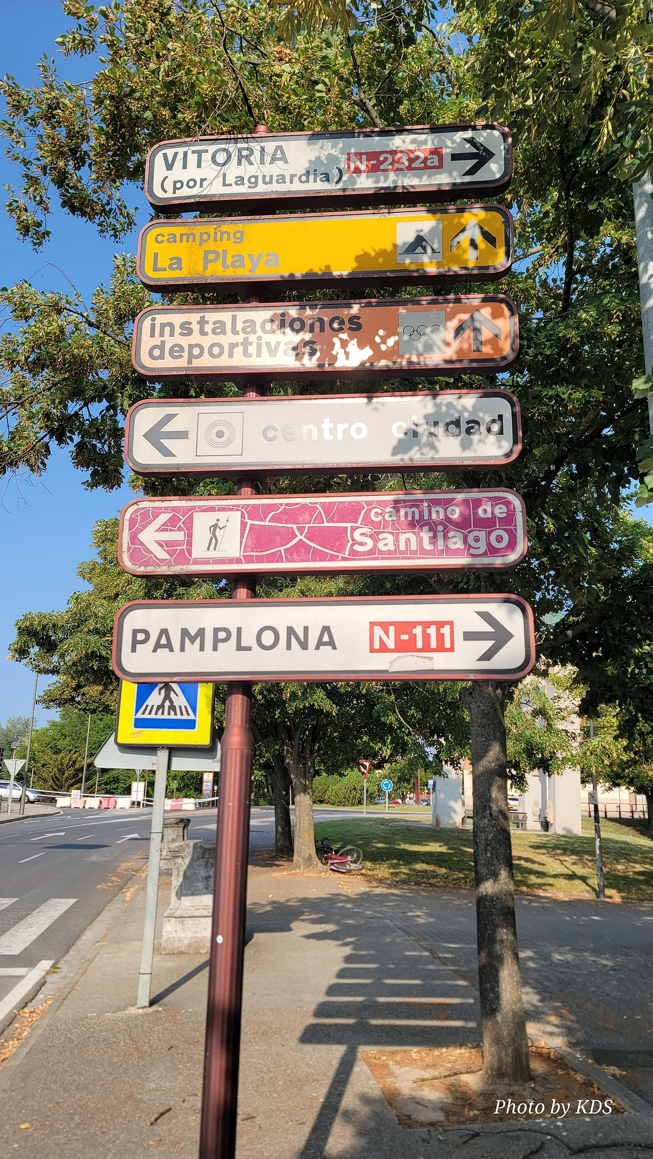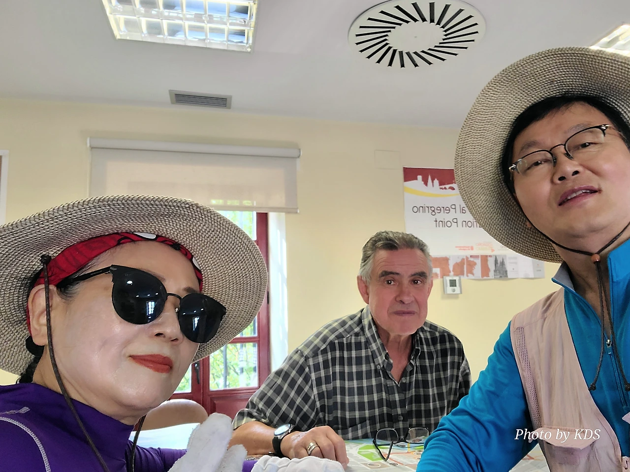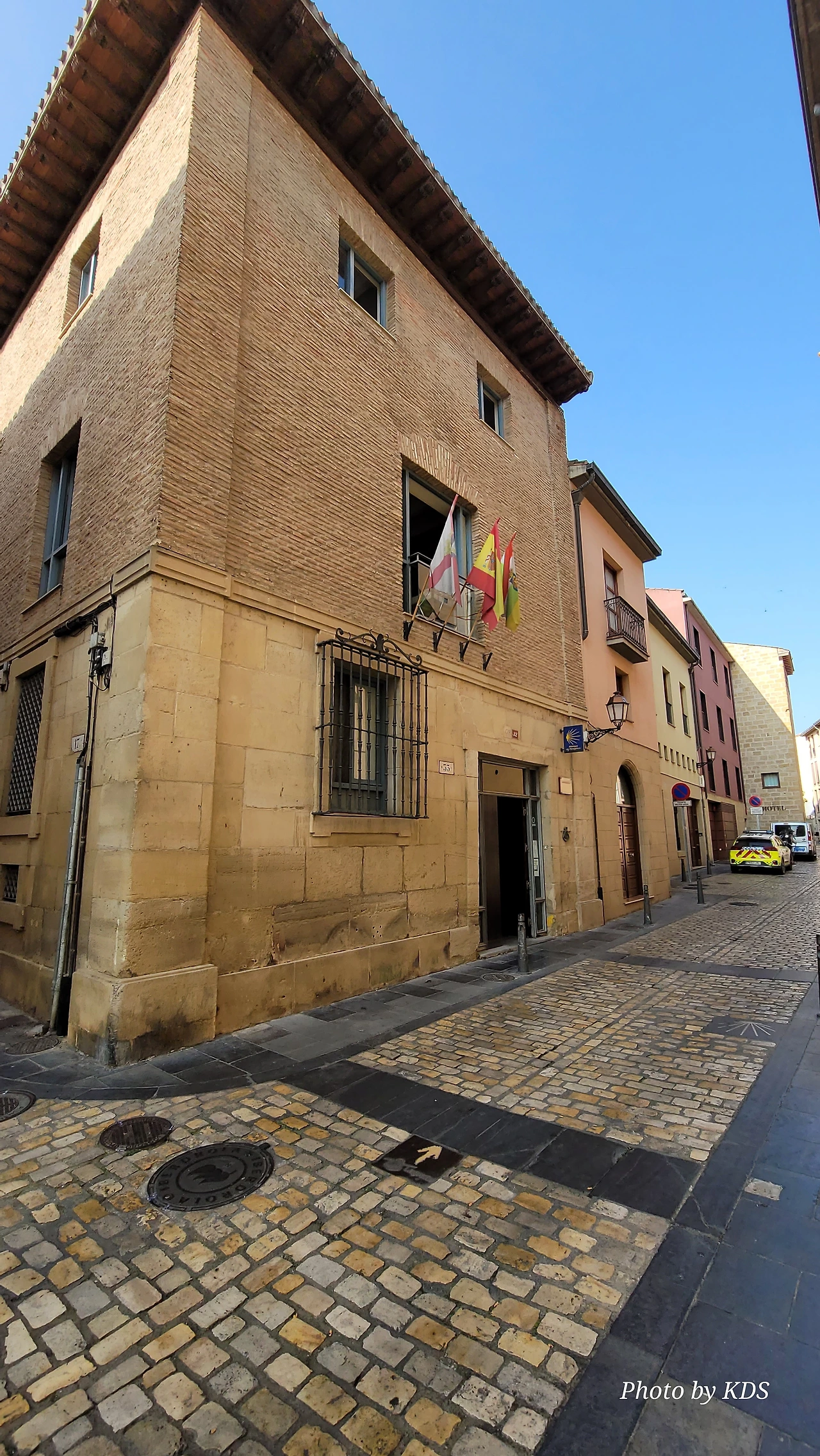다리를 건너기 위해 다리 입구에 올라서면 바로 순례자들을 위한 안내소가 설치되어 있다. 순례자들은 이곳에 들여서 여러 가지 정보를 얻곤 하는데, 우리는 특별한 정보가 필요하지 않고 다만 그동안 참고 걸어온 용변(用便)이 급했다. 야외 지역이면 길가의 수풀이나 적당한 곳에 소변을 볼 수 있으니 시내 구간을 길게 걸을 경우 용변 보기가 힘들다. 공중 화장실이 귀한 것은 유럽을 여행해 본 분들은 잘 아시리라. 이 순례자 안내소는 그런 용변을 보고 싶은 순례객들의 위안소나 마찬가지다. 사실 여러 가지 안내 지도나 로그로뇨 시가지의 관광지 같은 소개 팸플릿이 많이 비치되어 있지만 순례길만 줄곧 걷는 순례자들에게는 크게 관심이 쏠리지 않는 것이다. 대부분의 순례자들은 이곳에 들어와서 그동안 참은 용변을 시원하게 해결하는 목적으로 사용한다.
