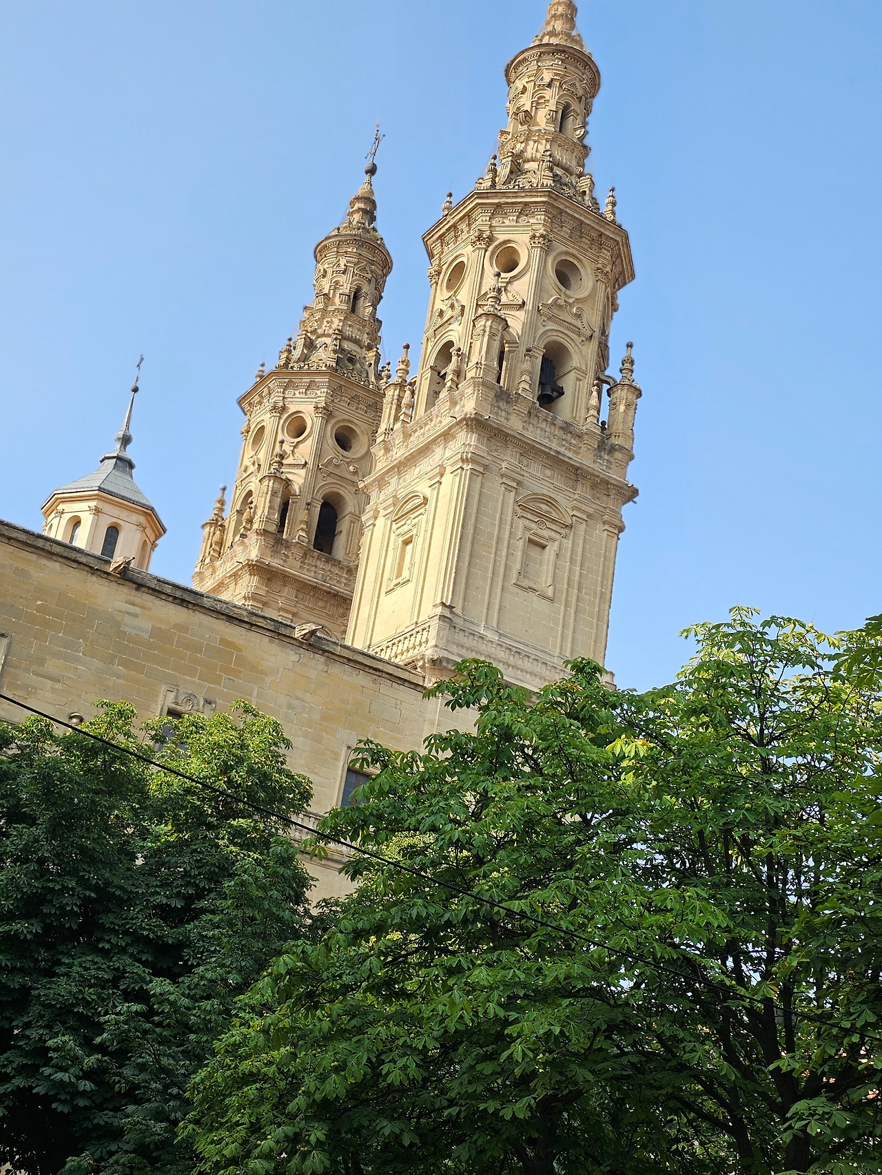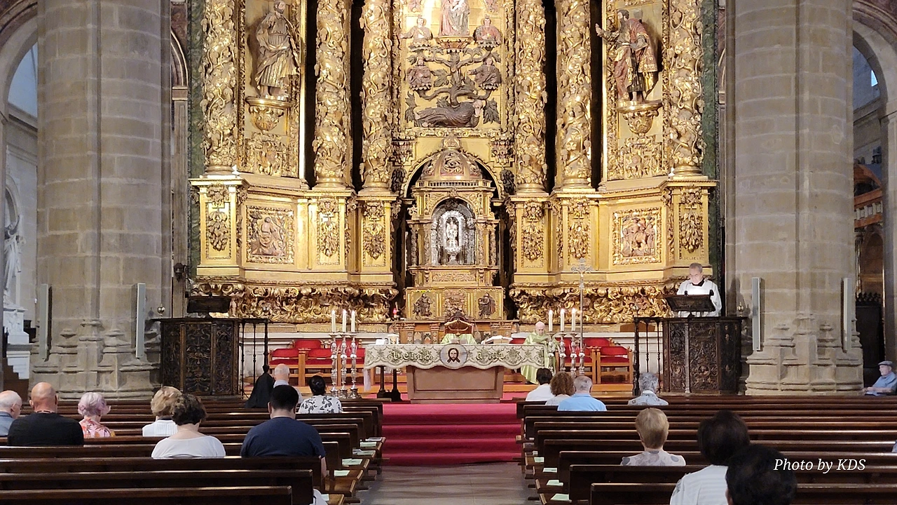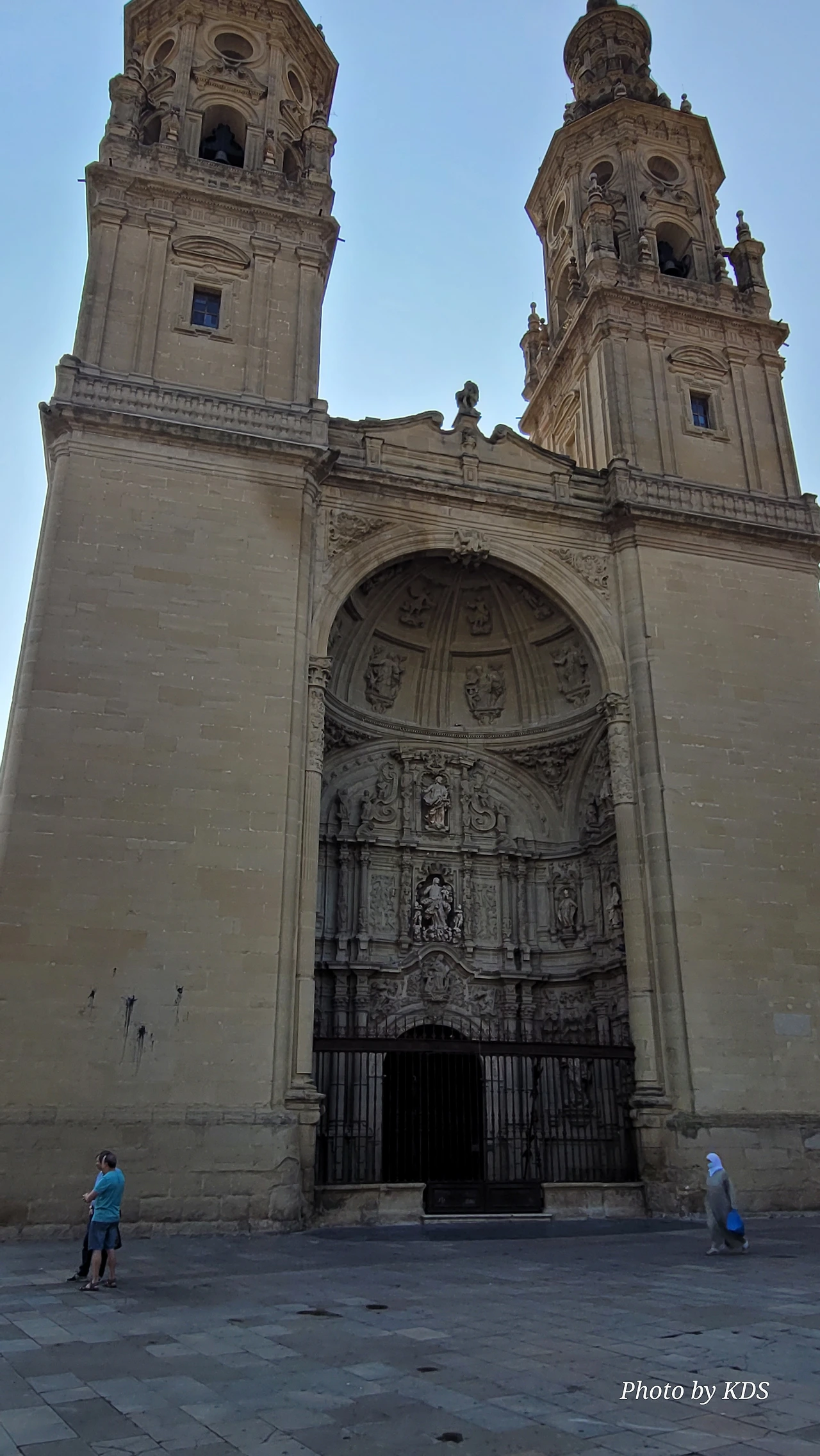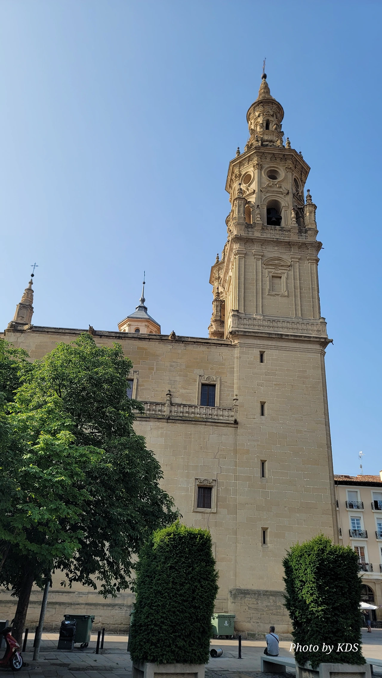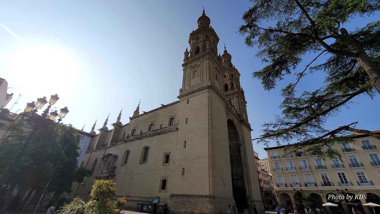 위치는 구시가지 중심의 아름다운 플라자 델 메르카도(Plaza del Mercardo)에 위치하며, 그 기원은 9세기의 원형 로마네스크 양식 교회로 거슬러 올라간단다. "쌍둥이 탑"이라는 통칭을 받는 당당한 바로크 양식의 탑이 눈에 가장 띈다. 내부로 들어가면 메인 제단화, 평화의 성모 예배당, 그리고 무엇보다도 미구엘 앙헬의 작품으로 알려진 "El Calvario De la Rioja"로 알려진 작은 유화를 볼 가치가 있다. 시간이 넉넉하더나 이 로그로뇨에서 하루를 묵게 된다면 산 바르똘로메 성당 (Iglesia de San Bartolome)도 구경하면 좋은데 조선 과객은 이곳이 숙박지가 아니고 지나가는 곳이어서 시간을 그리 많이 쏟을 여유가 없어서 아쉬울 따름이다. 오래된 성벽 위에 세워진 이 성당은 로그로뇨에서 가장 오래된 성당이란다. 석조 기단에 세 개의 신랑과 후진이 있으며, 제단부는 로마네스크 양식이고 신랑은 고딕 양식이다. 화려하게 장식된 첨두아치의 정문은 13세기 후반에 만들어졌는데 정말 이름답단다. 산티아고 순례길의 랜드마크 건물로서 9번째로 손꼽히는 건물이란다.
