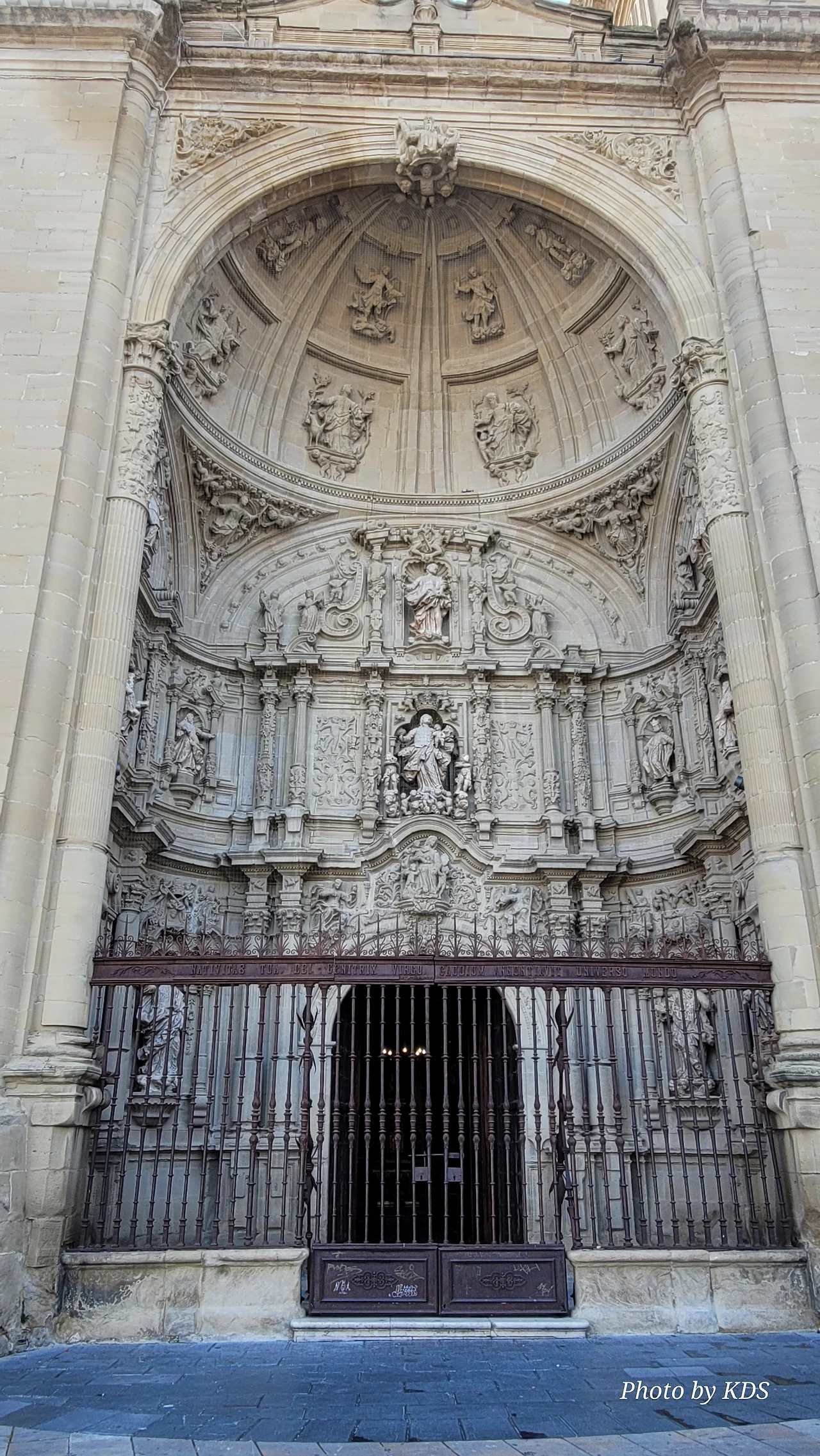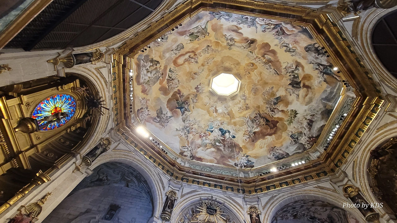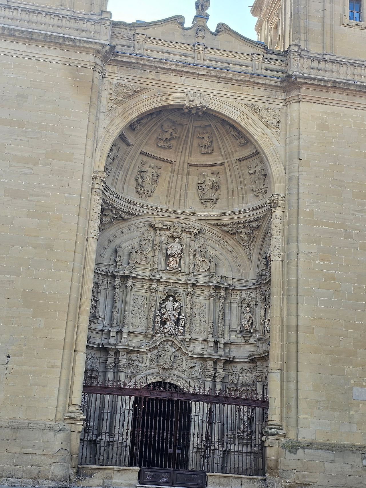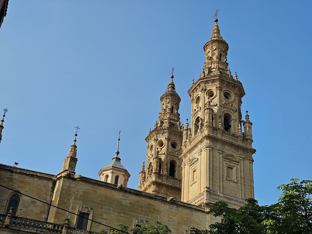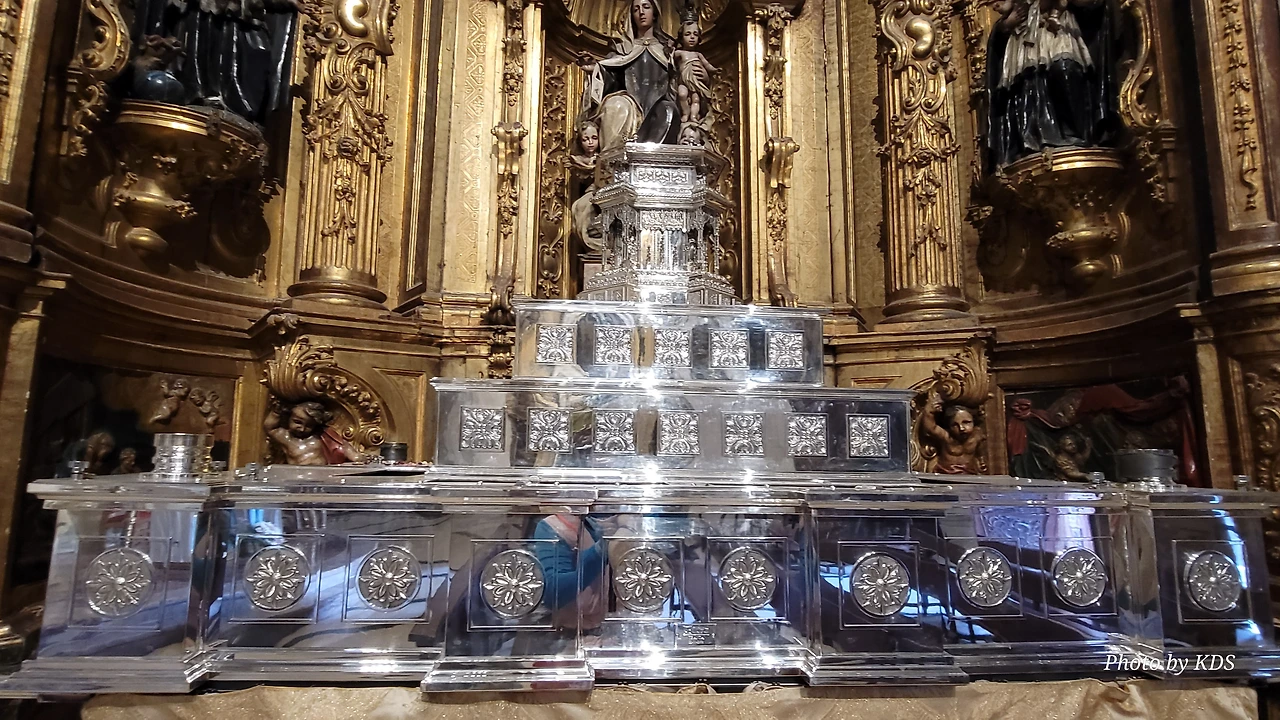 위치는 구시가지 중심의 아름다운 플라자 델 메르카도(Plaza del Mercardo)에 위치하며, 그 기원은 9세기의 원형 로마네스크 양식 교회로 거슬러 올라간단다. "쌍둥이 탑"이라는 통칭을 받는 당당한 바로크 양식의 탑이 눈에 가장 띈다. 내부로 들어가면 메인 제단화, 평화의 성모 예배당, 그리고 무엇보다도 미구엘 앙헬의 작품으로 알려진 "El Calvario De la Rioja"로 알려진 작은 유화를 볼 가치가 있다. 시간이 넉넉하더나 이 로그로뇨에서 하루를 묵게 된다면 산 바르똘로메 성당 (Iglesia de San Bartolome)도 구경하면 좋은데 조선 과객은 이곳이 숙박지가 아니고 지나가는 곳이어서 시간을 그리 많이 쏟을 여유가 없어서 아쉬울 따름이다. 오래된 성벽 위에 세워진 이 성당은 로그로뇨에서 가장 오래된 성당이란다. 석조 기단에 세 개의 신랑과 후진이 있으며, 제단부는 로마네스크 양식이고 신랑은 고딕 양식이다. 화려하게 장식된 첨두아치의 정문은 13세기 후반에 만들어졌는데 정말 이름답단다. 산티아고 순례길의 랜드마크 건물로서 9번째로 손꼽히는 건물이란다.