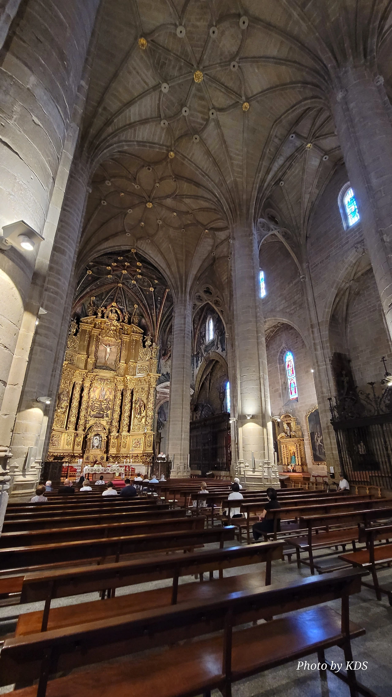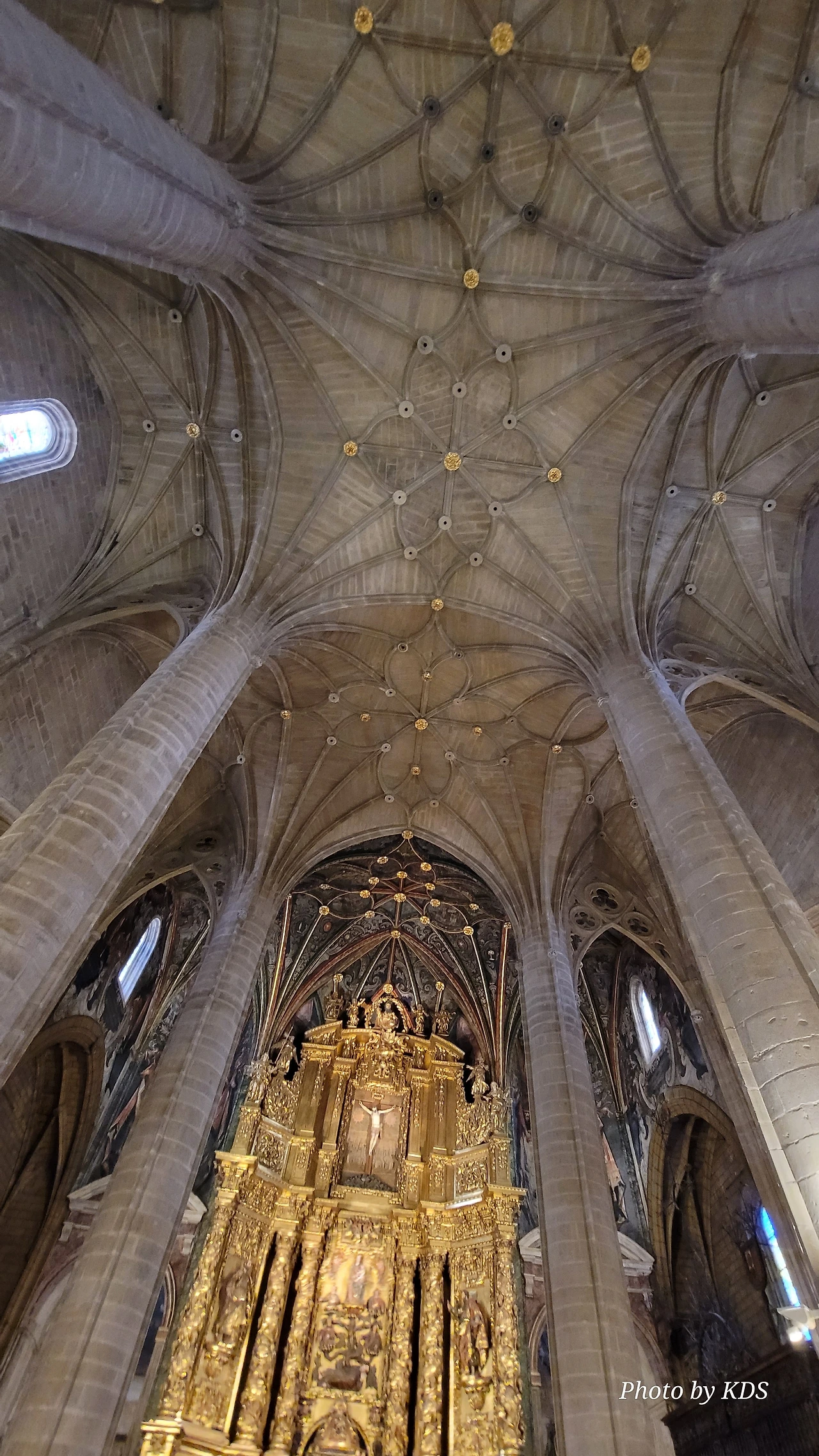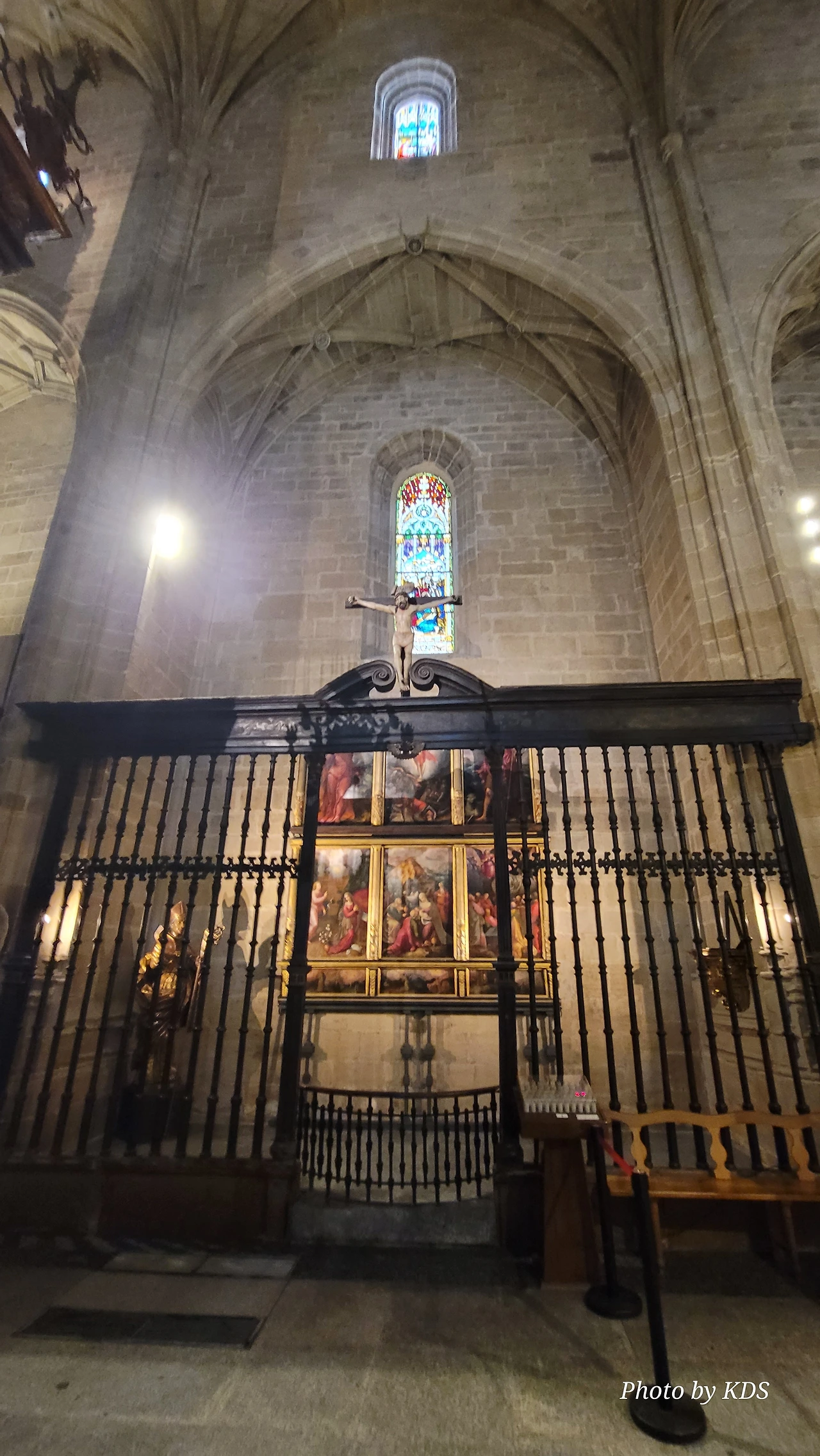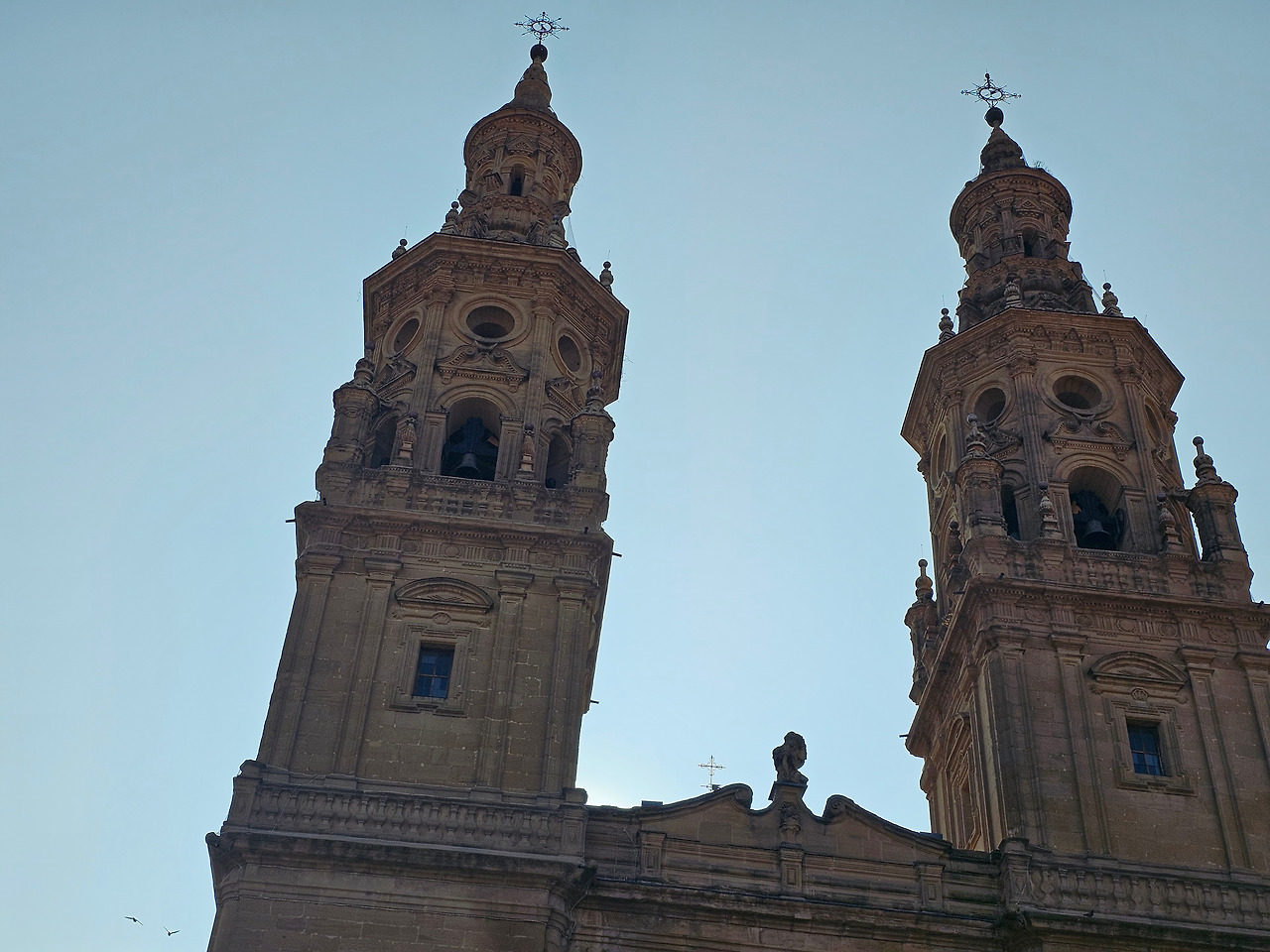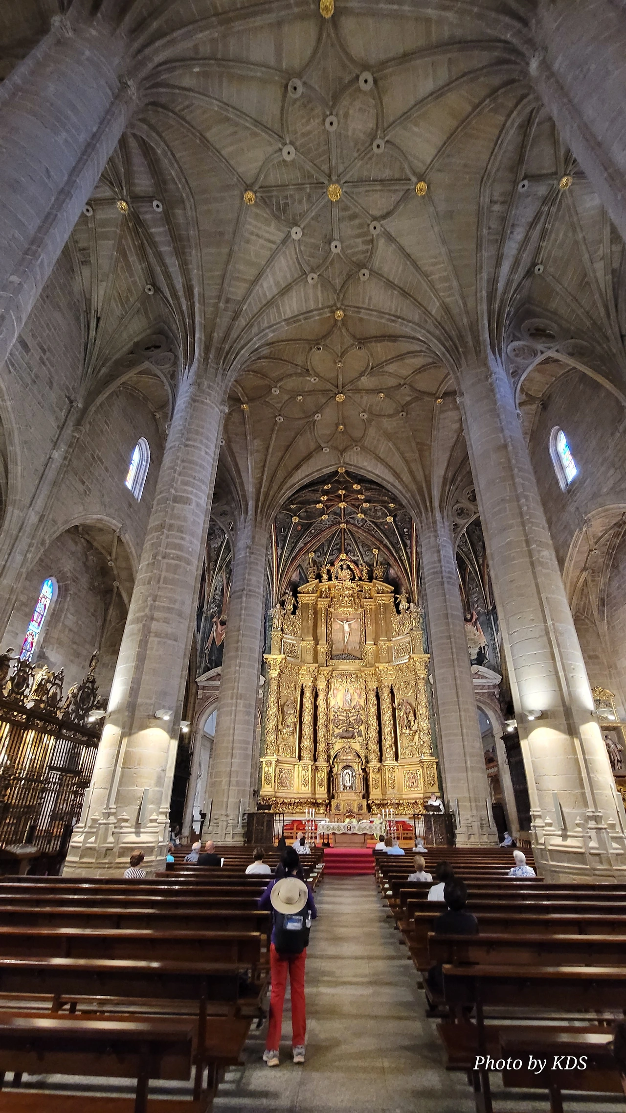 위치는 구시가지 중심의 아름다운 플라자 델 메르카도(Plaza del Mercardo)에 위치하며, 그 기원은 9세기의 원형 로마네스크 양식 교회로 거슬러 올라간단다. "쌍둥이 탑"이라는 통칭을 받는 당당한 바로크 양식의 탑이 눈에 가장 띈다. 내부로 들어가면 메인 제단화, 평화의 성모 예배당, 그리고 무엇보다도 미구엘 앙헬의 작품으로 알려진 "El Calvario De la Rioja"로 알려진 작은 유화를 볼 가치가 있다. 시간이 넉넉하더나 이 로그로뇨에서 하루를 묵게 된다면 산 바르똘로메 성당 (Iglesia de San Bartolome)도 구경하면 좋은데 조선 과객은 이곳이 숙박지가 아니고 지나가는 곳이어서 시간을 그리 많이 쏟을 여유가 없어서 아쉬울 따름이다. 오래된 성벽 위에 세워진 이 성당은 로그로뇨에서 가장 오래된 성당이란다. 석조 기단에 세 개의 신랑과 후진이 있으며, 제단부는 로마네스크 양식이고 신랑은 고딕 양식이다. 화려하게 장식된 첨두아치의 정문은 13세기 후반에 만들어졌는데 정말 이름답단다. 산티아고 순례길의 랜드마크 건물로서 9번째로 손꼽히는 건물이란다.