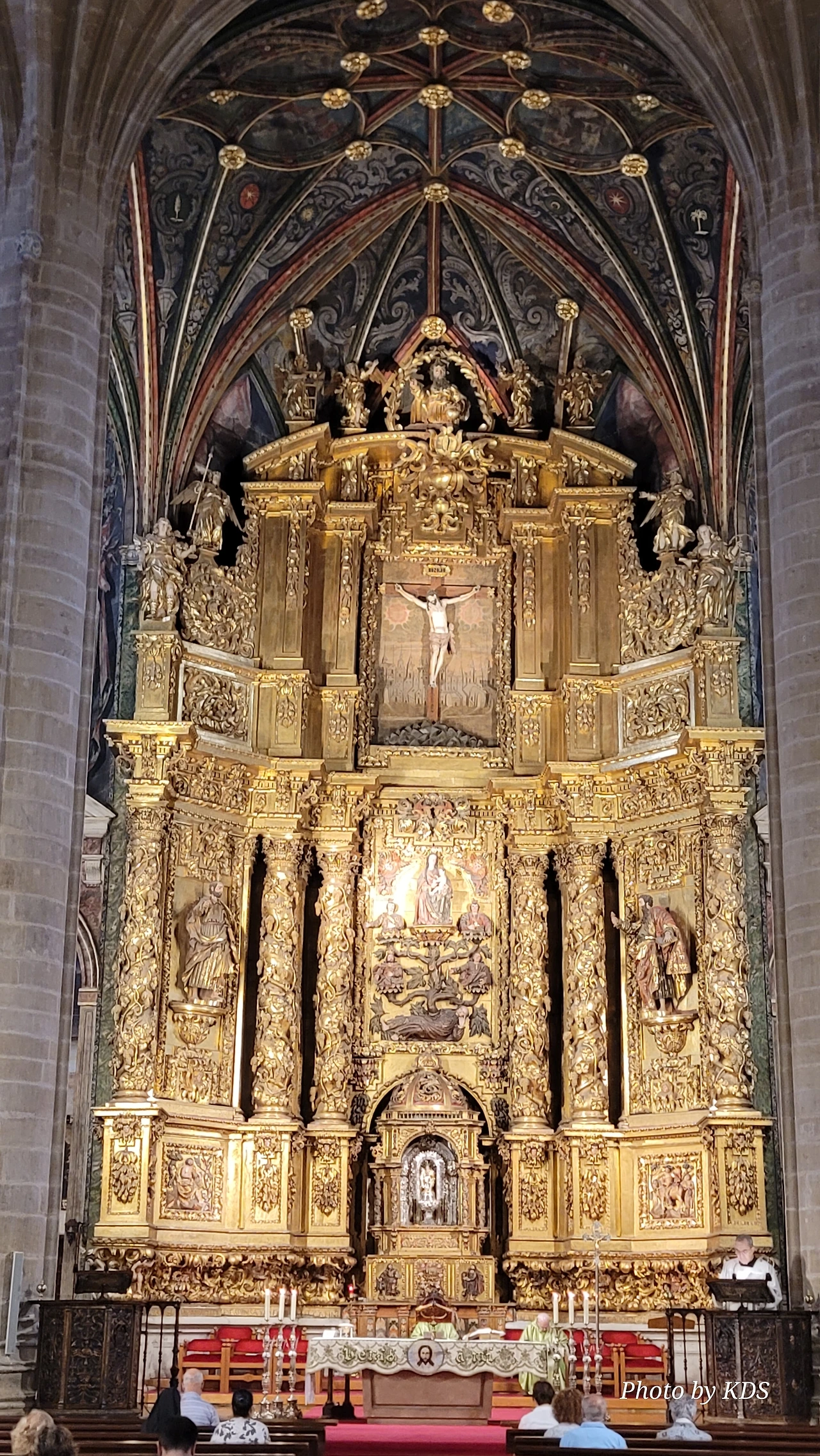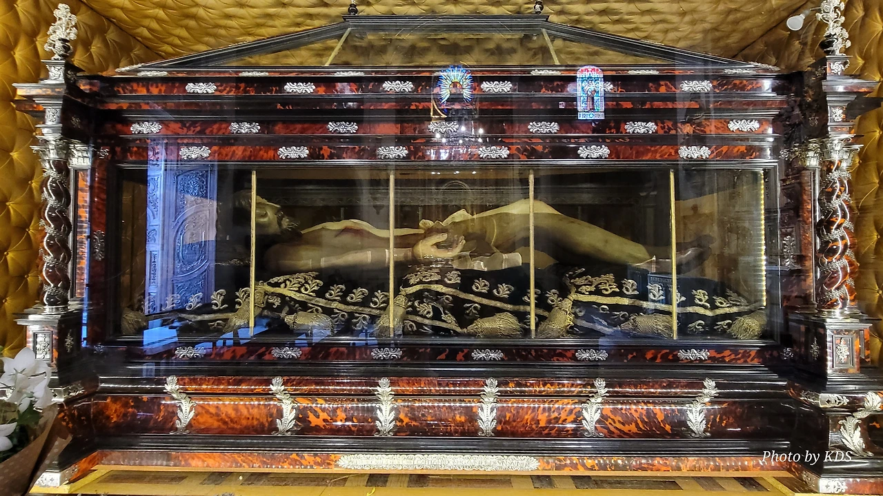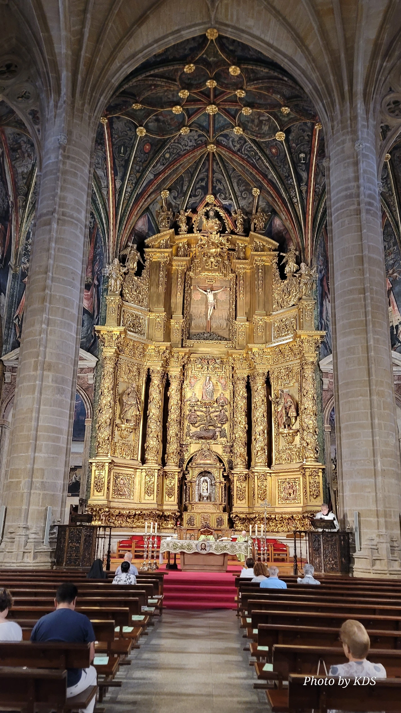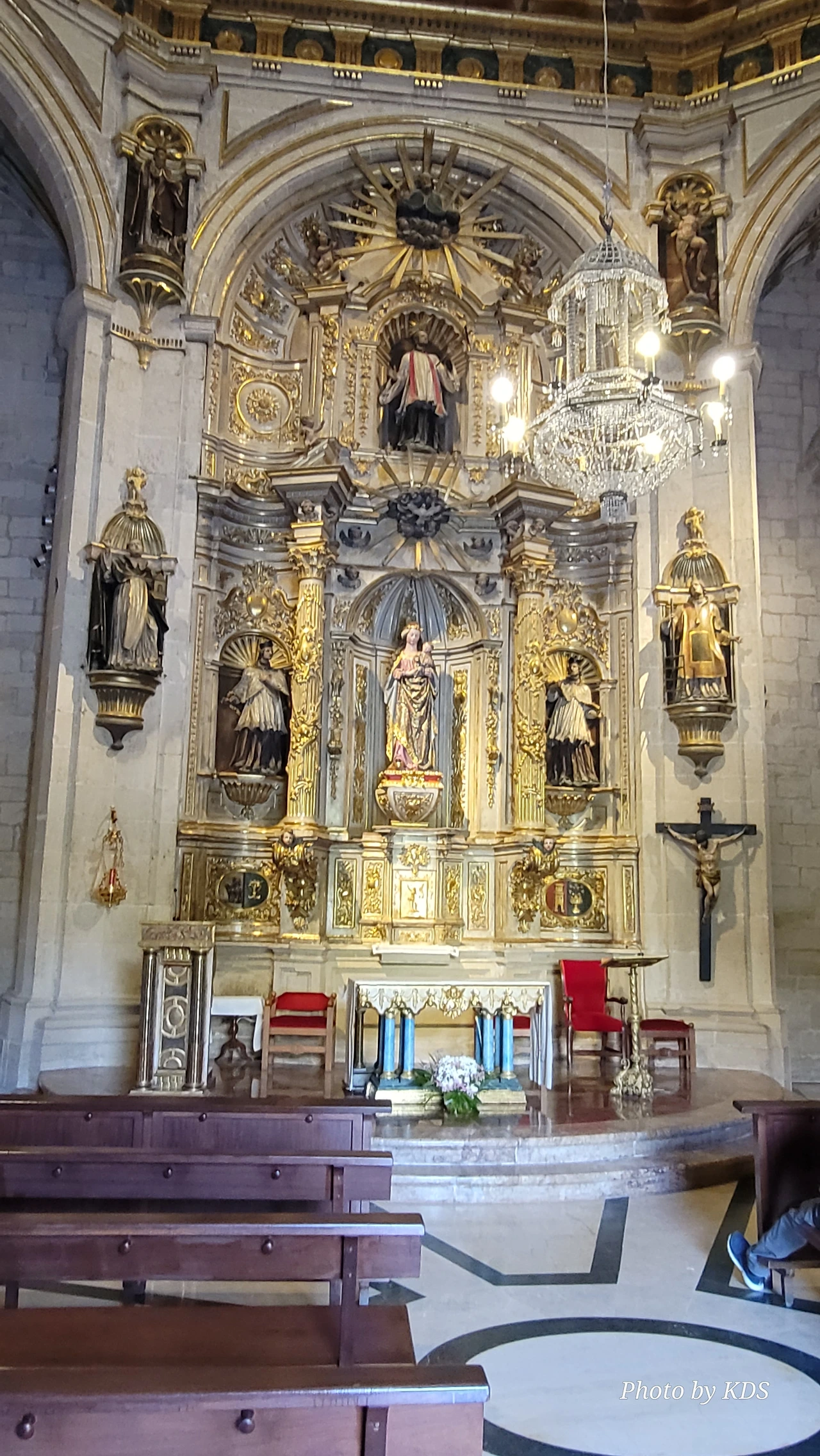 위치는 구시가지 중심의 아름다운 플라자 델 메르카도(Plaza del Mercardo)에 위치하며, 그 기원은 9세기의 원형 로마네스크 양식 교회로 거슬러 올라간단다. "쌍둥이 탑"이라는 통칭을 받는 당당한 바로크 양식의 탑이 눈에 가장 띈다. 내부로 들어가면 메인 제단화, 평화의 성모 예배당, 그리고 무엇보다도 미구엘 앙헬의 작품으로 알려진 "El Calvario De la Rioja"로 알려진 작은 유화를 볼 가치가 있다. 시간이 넉넉하더나 이 로그로뇨에서 하루를 묵게 된다면 산 바르똘로메 성당 (Iglesia de San Bartolome)도 구경하면 좋은데 조선 과객은 이곳이 숙박지가 아니고 지나가는 곳이어서 시간을 그리 많이 쏟을 여유가 없어서 아쉬울 따름이다. 오래된 성벽 위에 세워진 이 성당은 로그로뇨에서 가장 오래된 성당이란다. 석조 기단에 세 개의 신랑과 후진이 있으며, 제단부는 로마네스크 양식이고 신랑은 고딕 양식이다. 화려하게 장식된 첨두아치의 정문은 13세기 후반에 만들어졌는데 정말 이름답단다. 산티아고 순례길의 랜드마크 건물로서 9번째로 손꼽히는 건물이란다.