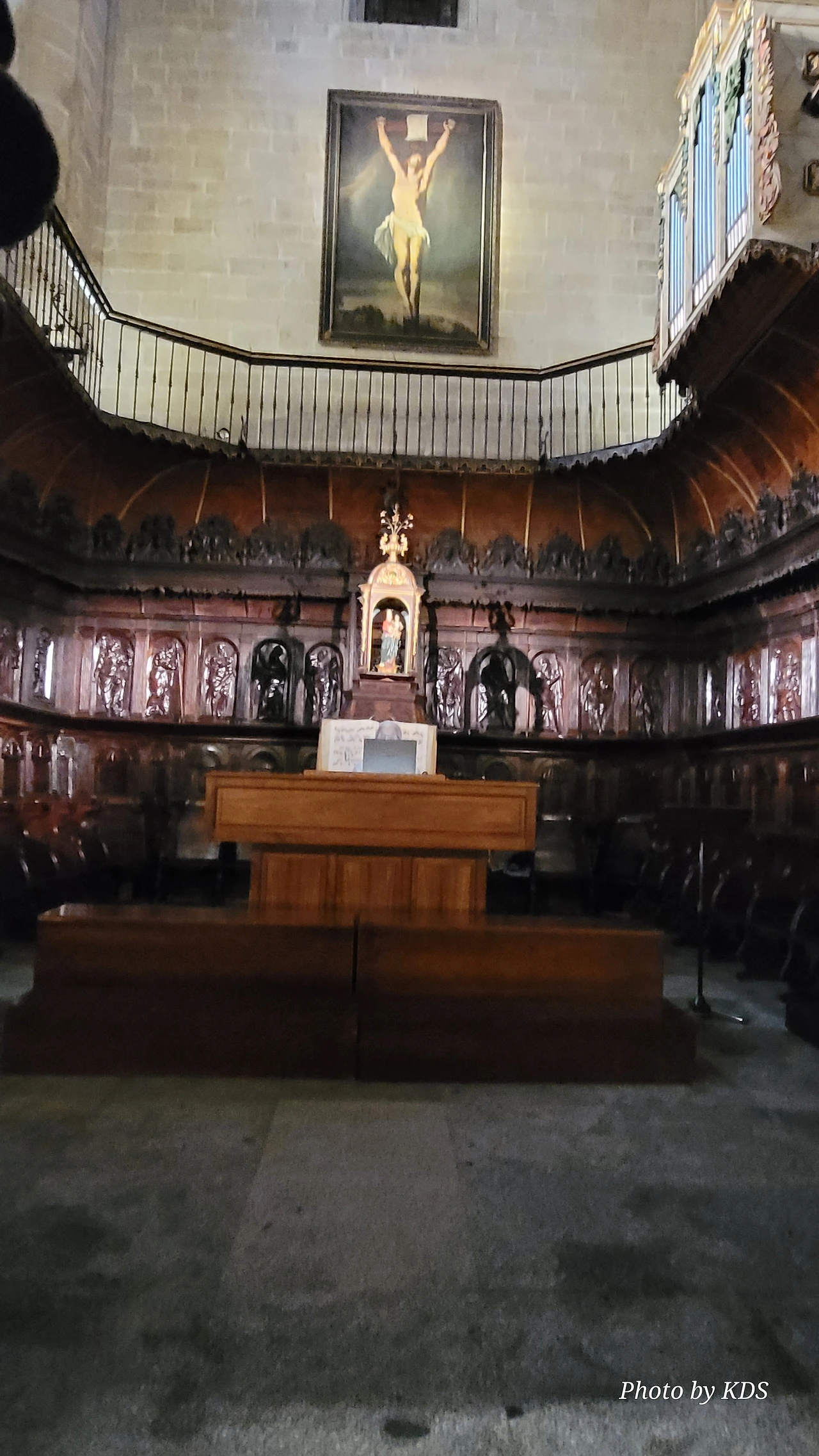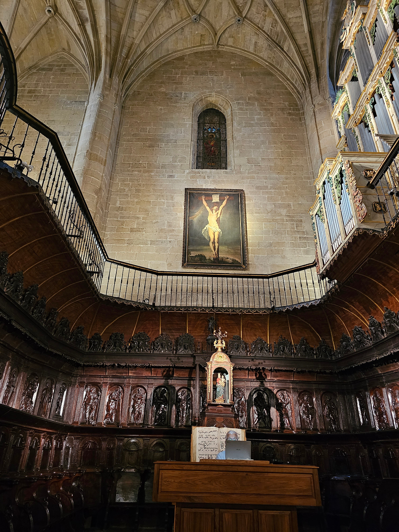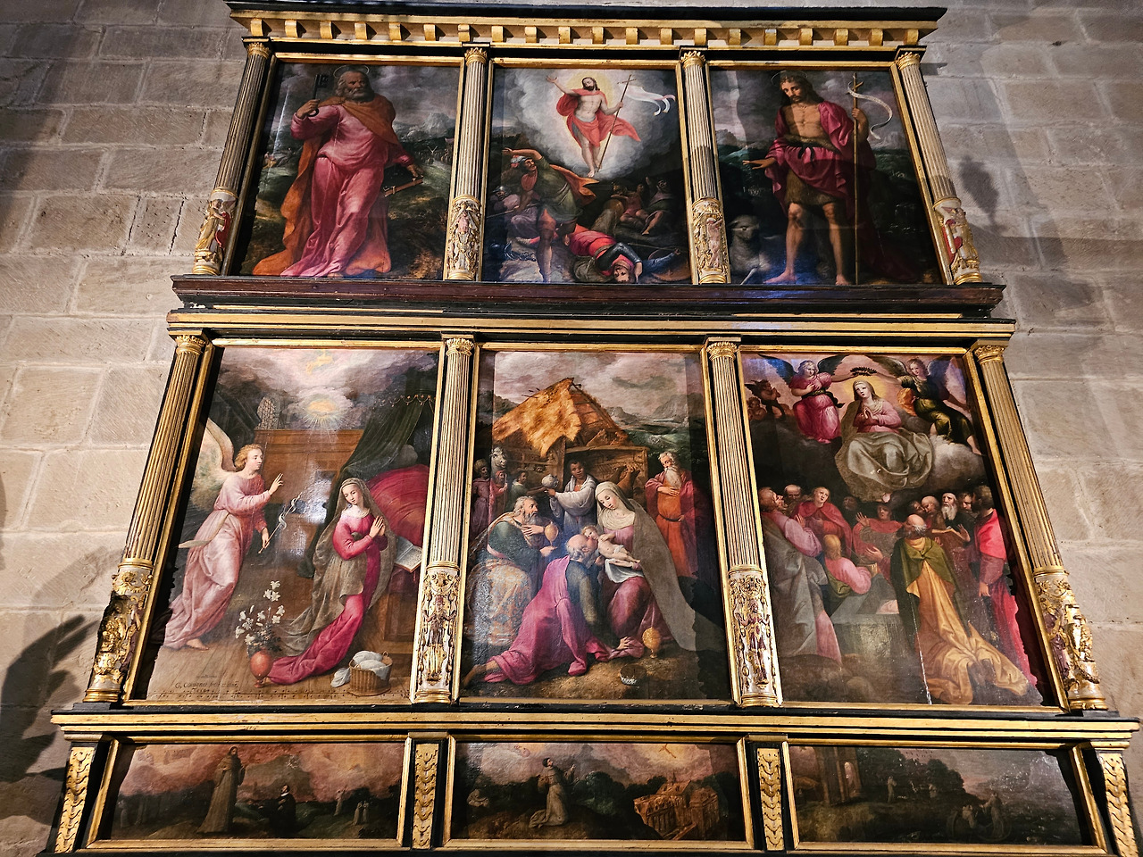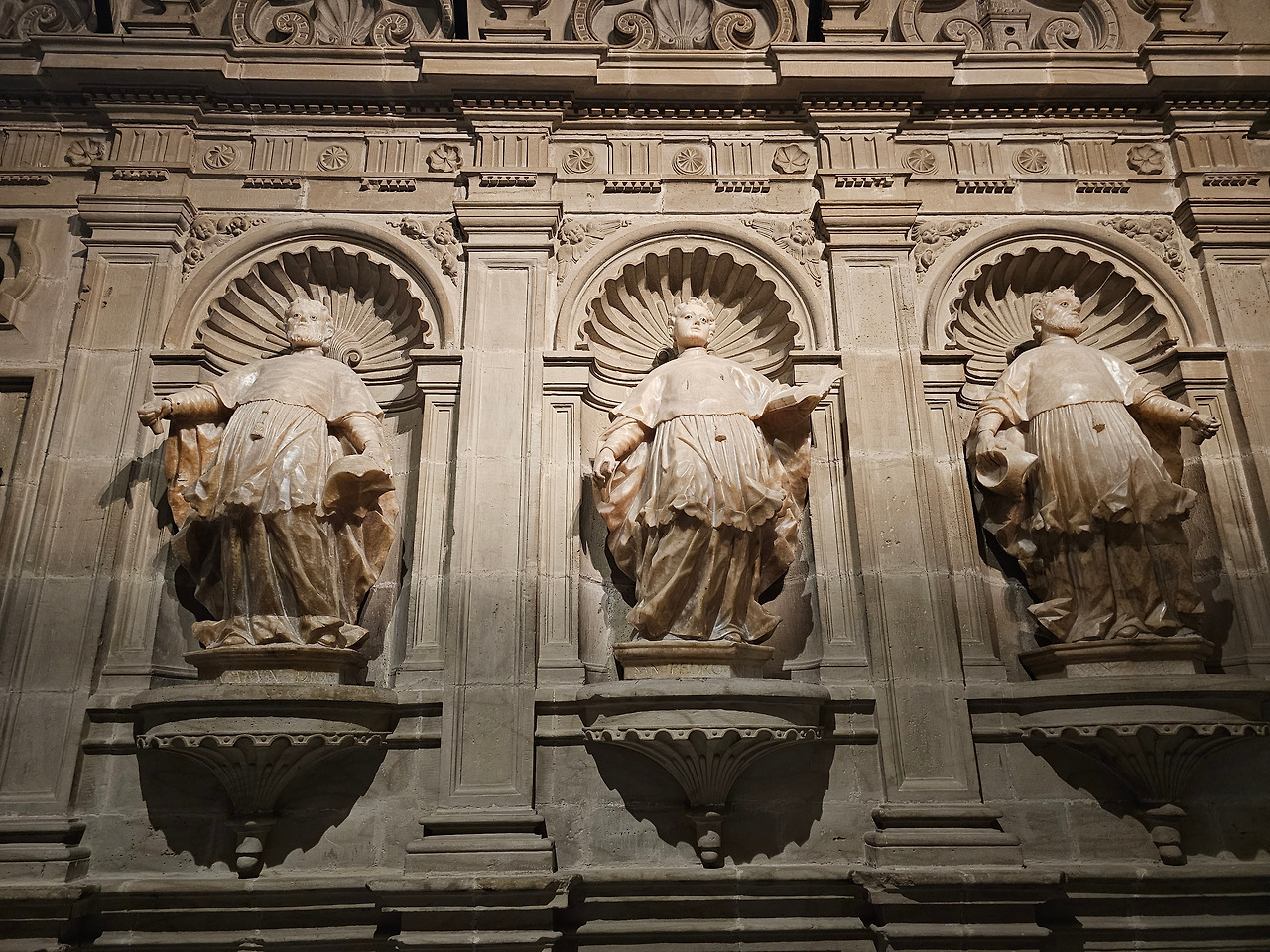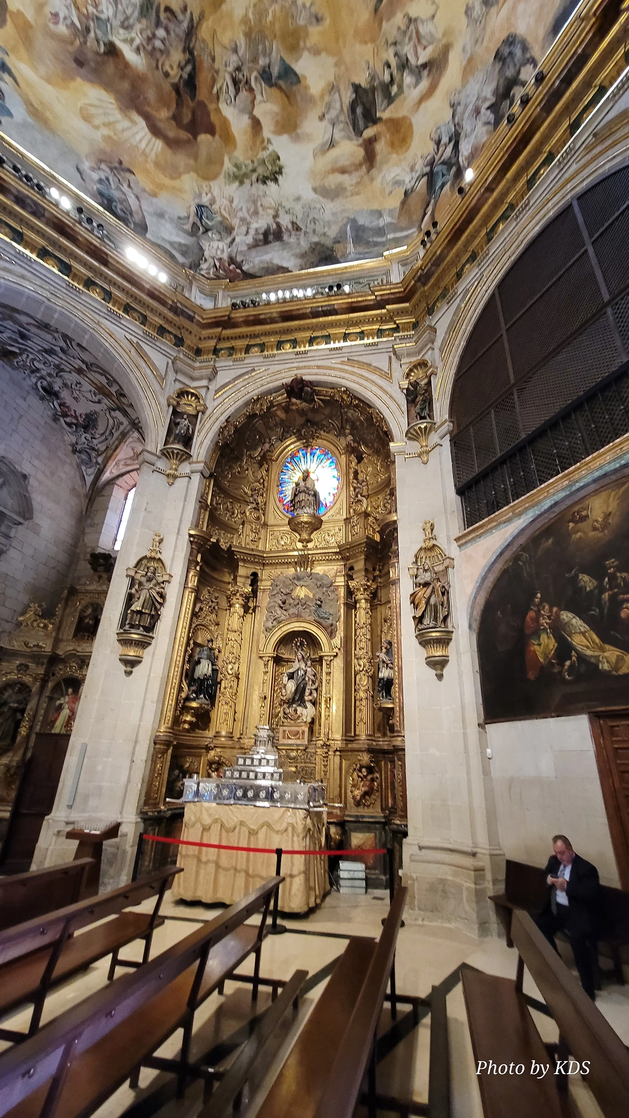 위치는 구시가지 중심의 아름다운 플라자 델 메르카도(Plaza del Mercardo)에 위치하며, 그 기원은 9세기의 원형 로마네스크 양식 교회로 거슬러 올라간단다. "쌍둥이 탑"이라는 통칭을 받는 당당한 바로크 양식의 탑이 눈에 가장 띈다. 내부로 들어가면 메인 제단화, 평화의 성모 예배당, 그리고 무엇보다도 미구엘 앙헬의 작품으로 알려진 "El Calvario De la Rioja"로 알려진 작은 유화를 볼 가치가 있다. 시간이 넉넉하더나 이 로그로뇨에서 하루를 묵게 된다면 산 바르똘로메 성당 (Iglesia de San Bartolome)도 구경하면 좋은데 조선 과객은 이곳이 숙박지가 아니고 지나가는 곳이어서 시간을 그리 많이 쏟을 여유가 없어서 아쉬울 따름이다. 오래된 성벽 위에 세워진 이 성당은 로그로뇨에서 가장 오래된 성당이란다. 석조 기단에 세 개의 신랑과 후진이 있으며, 제단부는 로마네스크 양식이고 신랑은 고딕 양식이다. 화려하게 장식된 첨두아치의 정문은 13세기 후반에 만들어졌는데 정말 이름답단다. 산티아고 순례길의 랜드마크 건물로서 9번째로 손꼽히는 건물이란다.