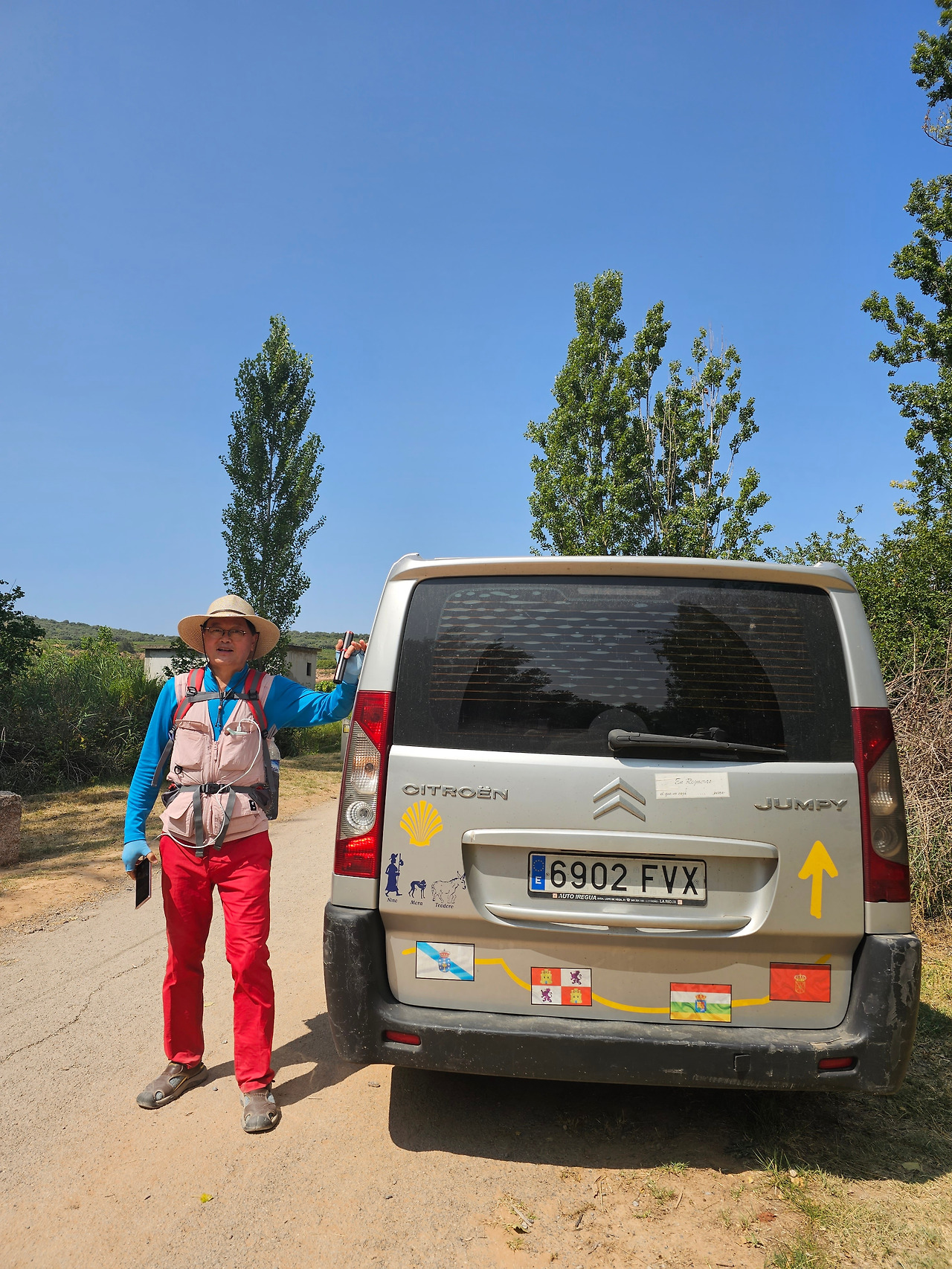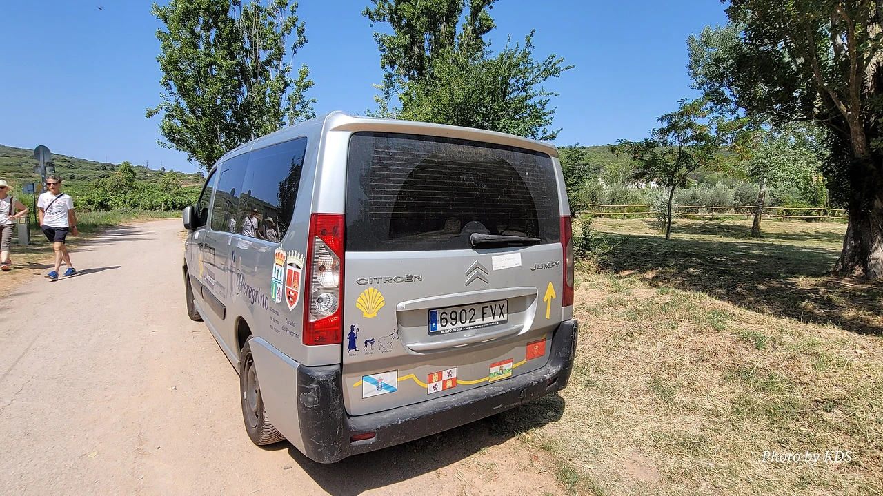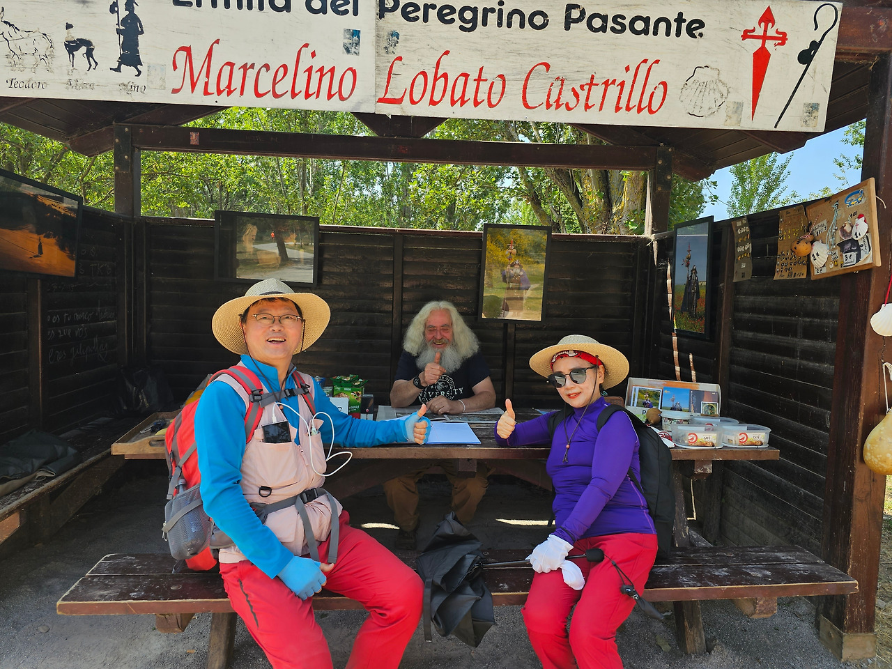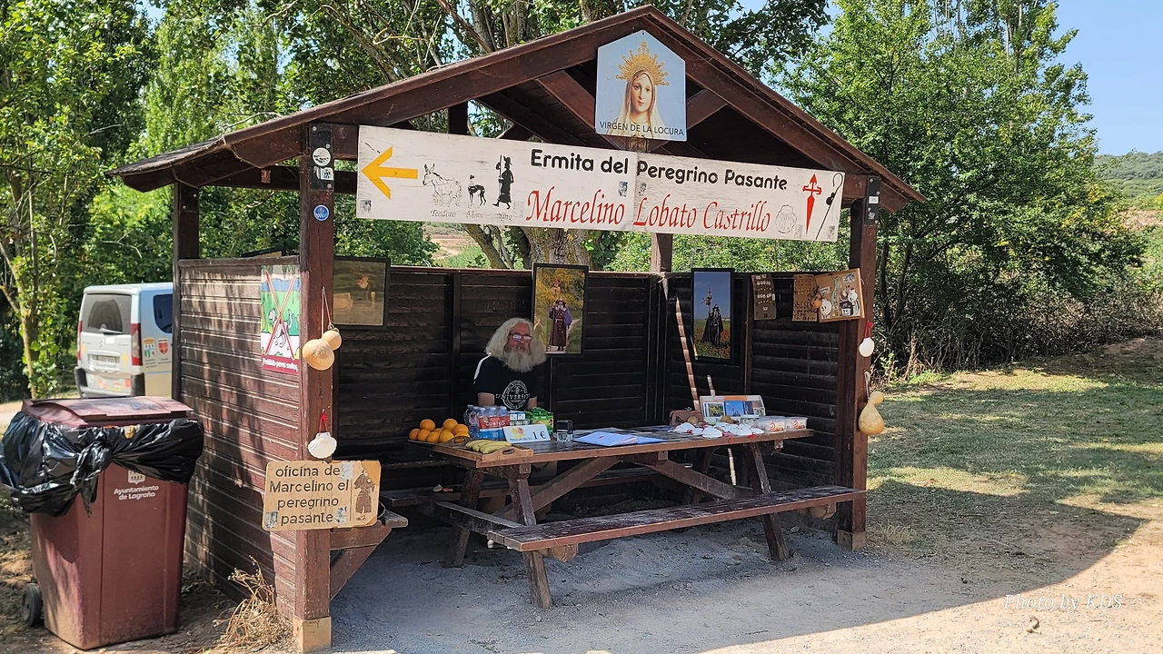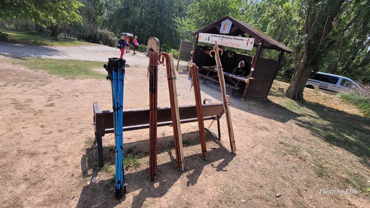 공원이 끝다는 지점에 머리와 수염이 하얀 순례길의 은둔자가 길을 지키고 있다. 간단한 오두막집을 짓고 그곳에 순례객들이 필요한 간식거리와 음료를 준비하고 있다. 한쪽에는 커다란 지팡이도 많이 준비해 놓았다. 조선 과객은 등산용 스틱도 귀찮은데 어떤 외국인들은 그야말로 자기 키보다 더 큰 지팡이를 짚고 다닌다. 옛날 순례자를 흉내 내는 것이다.