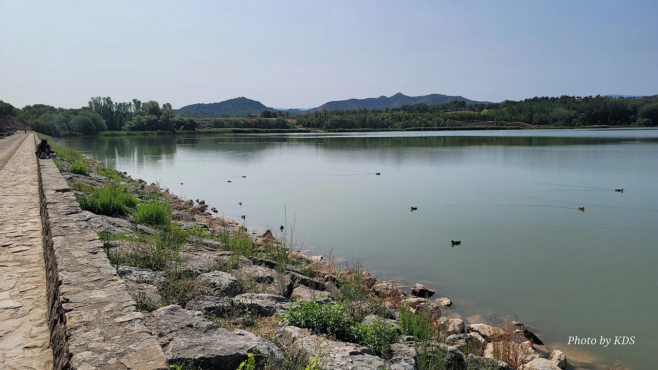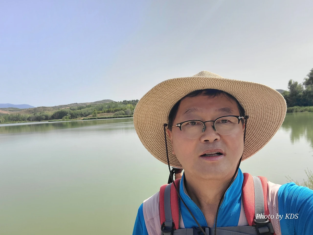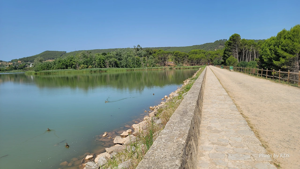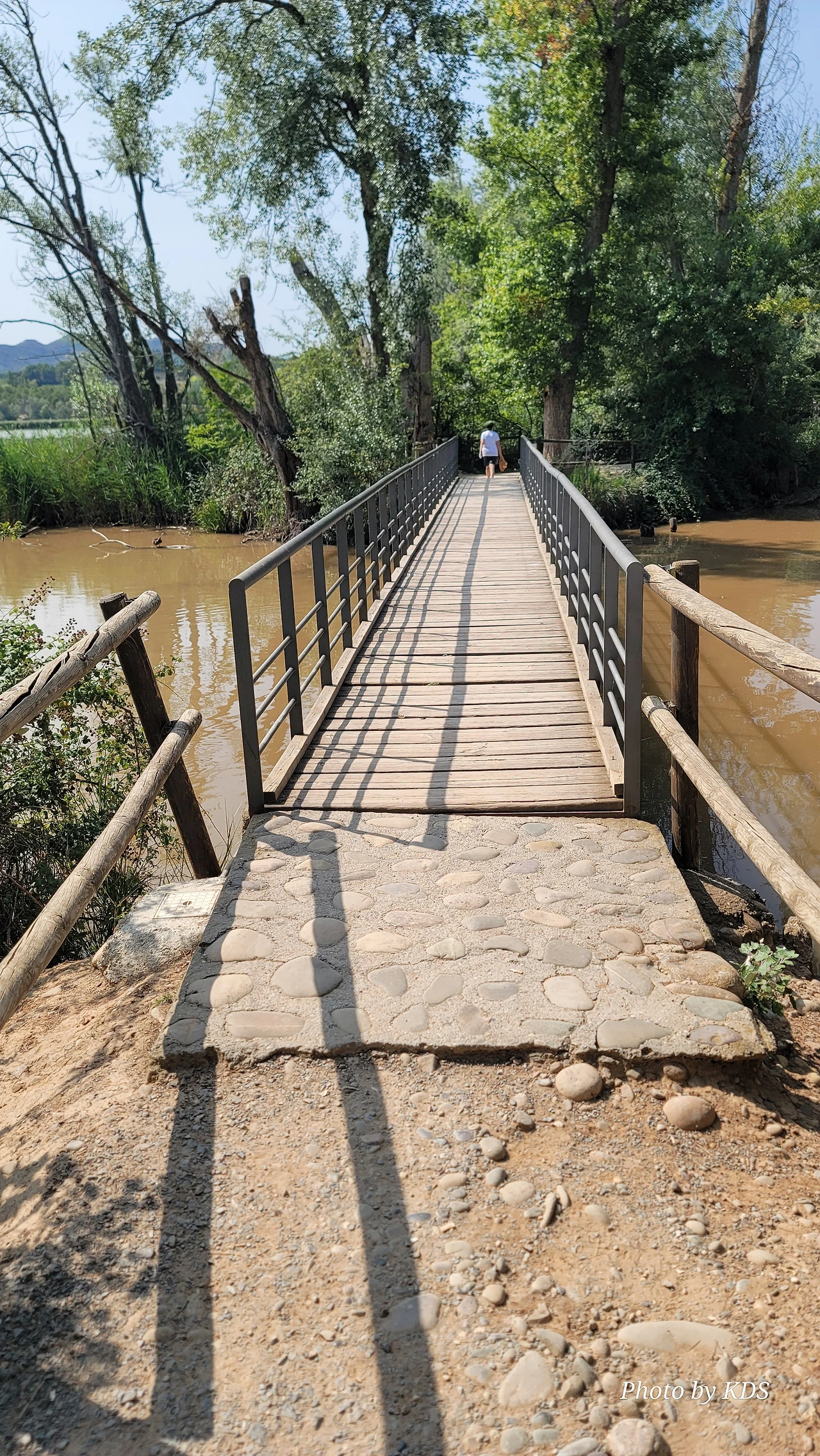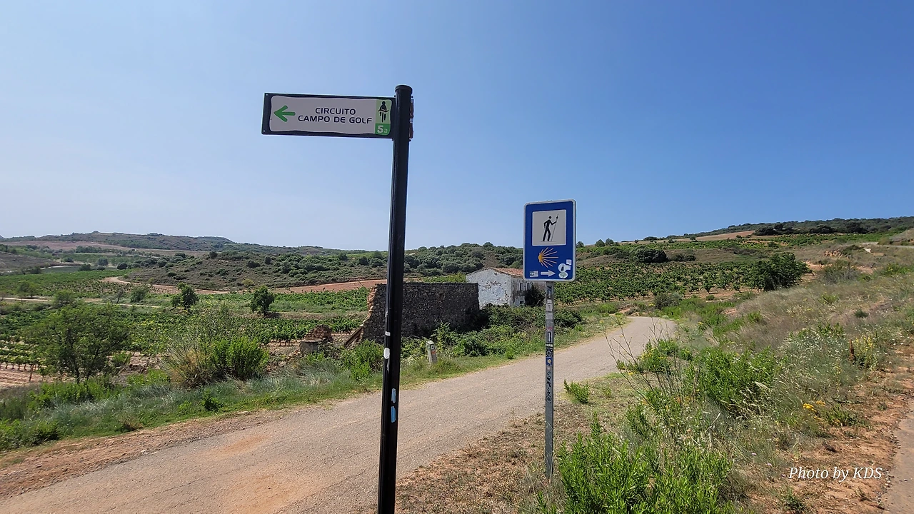 저수지가 끝나는 지점에는 조그마한 공원이 있고, 저수지 언저리를 건너게 해주는 나무다리가 설치되어 있다. 물 위에는 오리 떼들이 먹이를 찾느라 분주히 움직인다. 이곳에 음수대가 설치되어 있는데, 로그로뇨시에서 관리를 한다. 저수지가 끝나는 평지에는 높은 철탑이 보이는데 방송사 34년 경력의 조선 과객의 눈으로 보면 그것은 바로 방송 중계용 철탑이다. 그냥 철탑만 뾰족하게 서 있는 것은 보통 라디오 중계용 철탑이고, 철탑 옆에 여러 가지 기구가 붙어 있는 것은 TV 중계용 철탑이다.