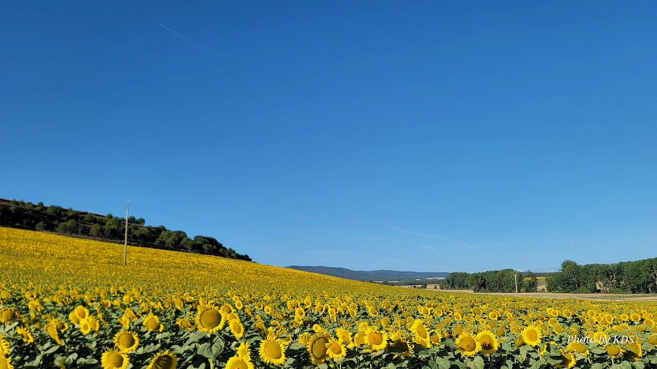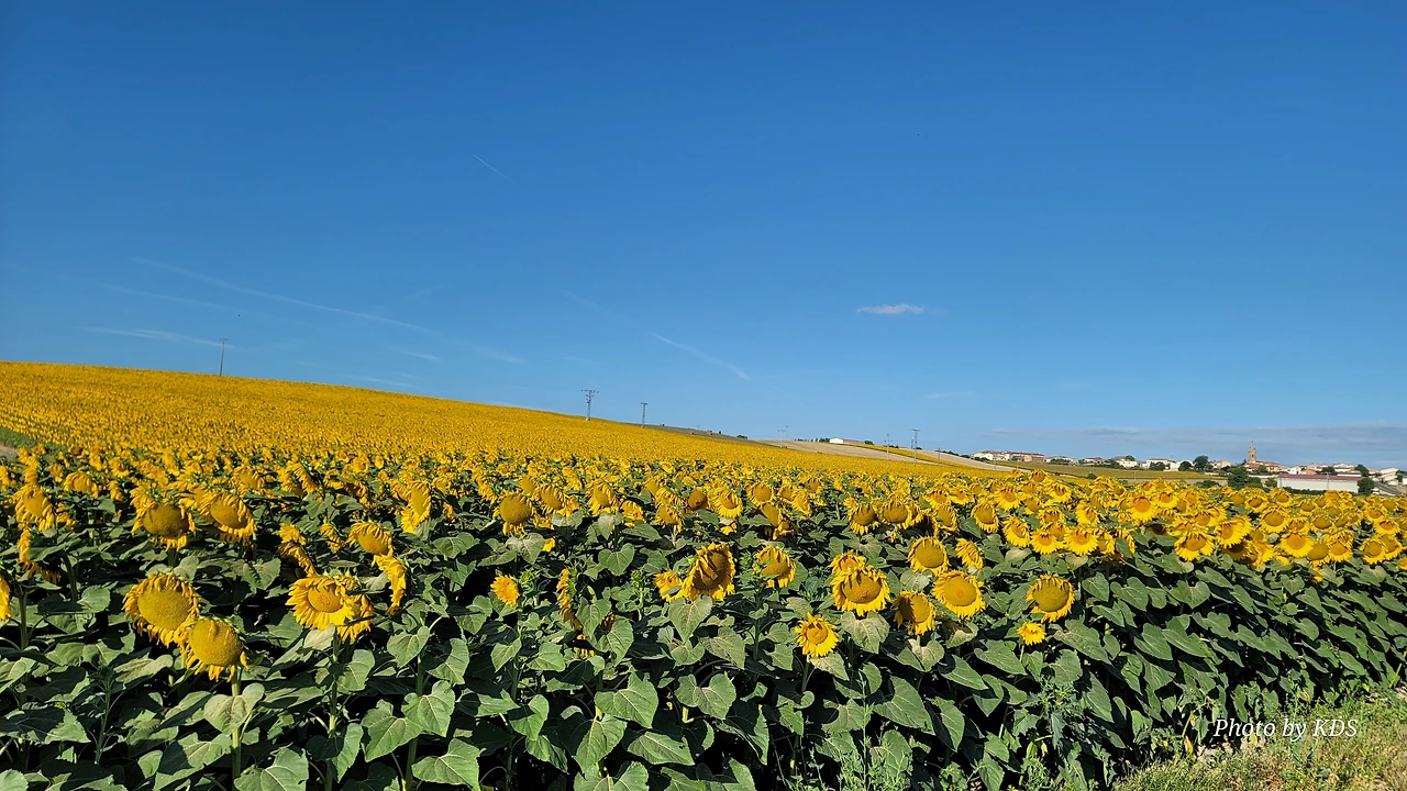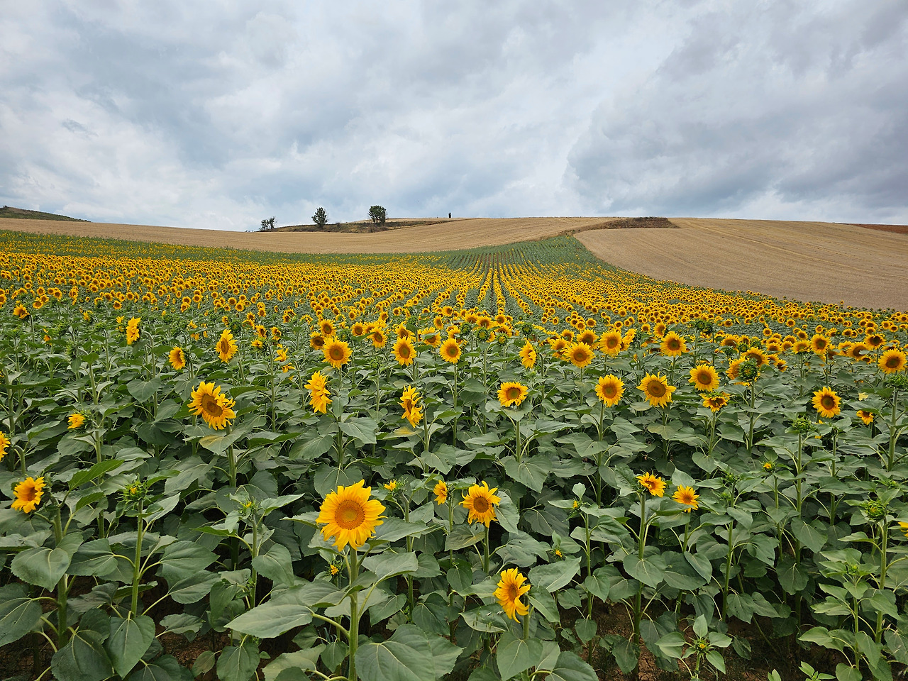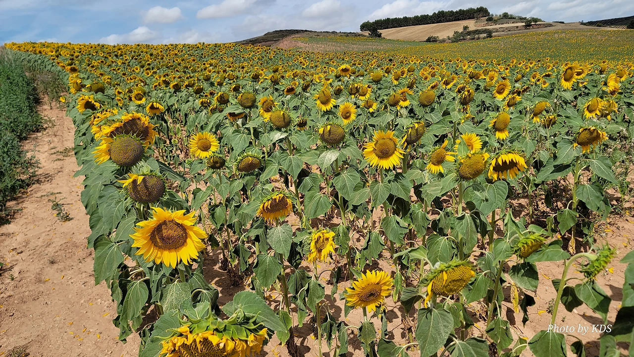 영화를 볼 때 조반나가 러시아로 남편을 찾아갔을 때 광활한 해바라기 밭이 나온다. 그 당시에는 해외여행이 아직 자유화되지 않아 외국의 풍경을 많이 접하지 못한 상황이라서, 끝없이 펼쳐진 해바라기 농장을 보고 정말 대단하다고 느꼈다. 영화의 내용에도 조반나를 안내하는 현지인이 전쟁 통에 죽은 신원을 알 수 없는 군인이나 민간인들의 시체를 넓은 벌판에 파묻게 되었고, 그곳이 해바라기 밭이 되어서 넓은 밭이 되었다고 설명해 준다. 그 말을 듣는 조반나의 심정은 어땠을까? 이곳 스페인에 와서 광활한 해바라기 밭을 보니 그때 그 영화 <해바라기>가 계속 기억의 저편에서 스멀스멀 기어 나오곤 했다. 전쟁의 폐해, 전쟁으로 망가진 삶에 대한 아픔도 묻어났다.