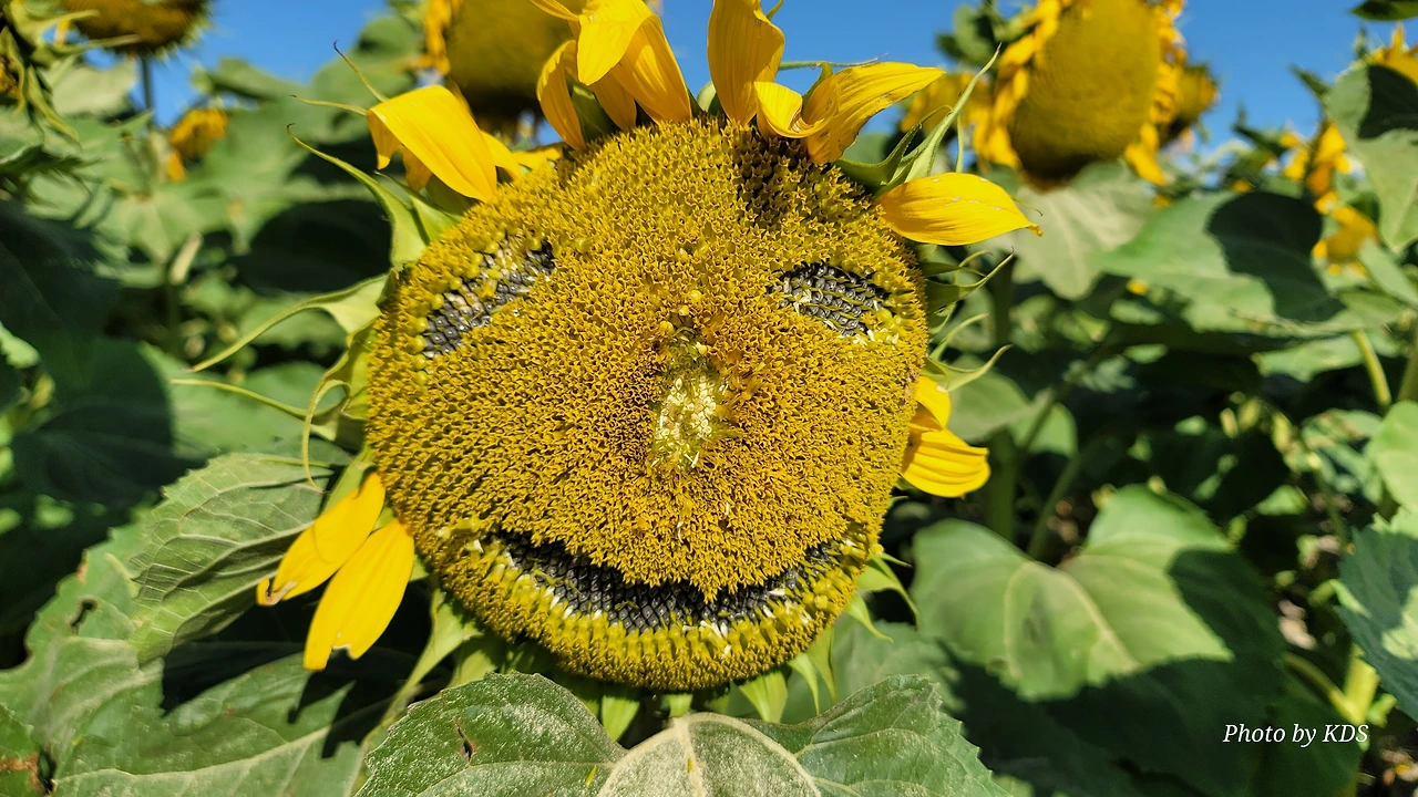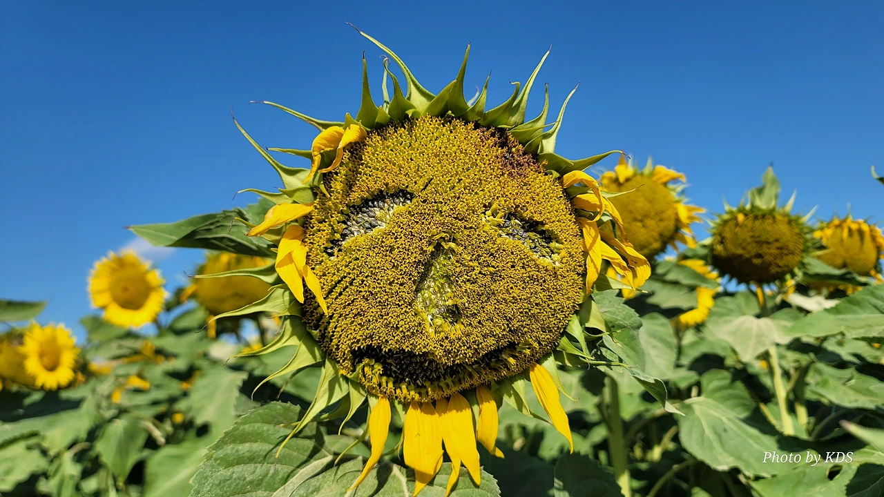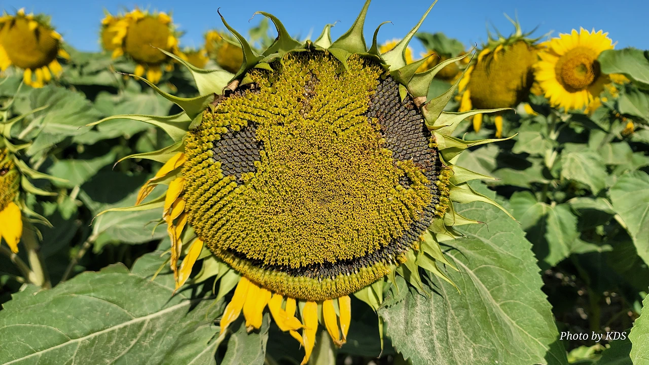 해바라기는 영어로는 Sunflower이고 한자로는 향일화(向日花)이다. 햇빛을 따라 동서로 움직이면서 자라다가 꽃이 피고 줄기가 굵어져서 몸이 굳어지면 해를 따라 움직이지 않는다. 이곳 해바라기 농장들을 보면 꽃이 핀 해바라기들은 모두 한 방향으로 일제히 피어있다. 꽃이 거의 남쪽 방향으로 고정되어 있다. 아마 태양이 동쪽에서 떠서 남쪽을 지나 서쪽으로 넘어가니까 가장 오랫동안 햇빛을 볼 수 있는 방향이 남쪽이라서 그런 모양이다. 해바라기는 원래 아메리카가 원산지이고 인디언들이 주로 재배했다. 스페인이 중남미를 지배할 때인 1506년에 해바라기 씨를 처음으로 도입하여 재배하였고, 이것이 유럽에 퍼져서 러시아까지 보급되었다. 이렇게 큰 해바라기는 러시아의 육종학 덕분에 개발하였고, 소련의 대숙청 작업이 있을 때 이를 피해 미국으로 탈출한 농부들의 손에 의해 개량된 해바라기가 아메리카로 귀향하게 되었다. 스페인을 한해에 해바라기를 95만 톤씩 생산을 한다니 해바라기 농장의 넓이를 짐작할 만하다.