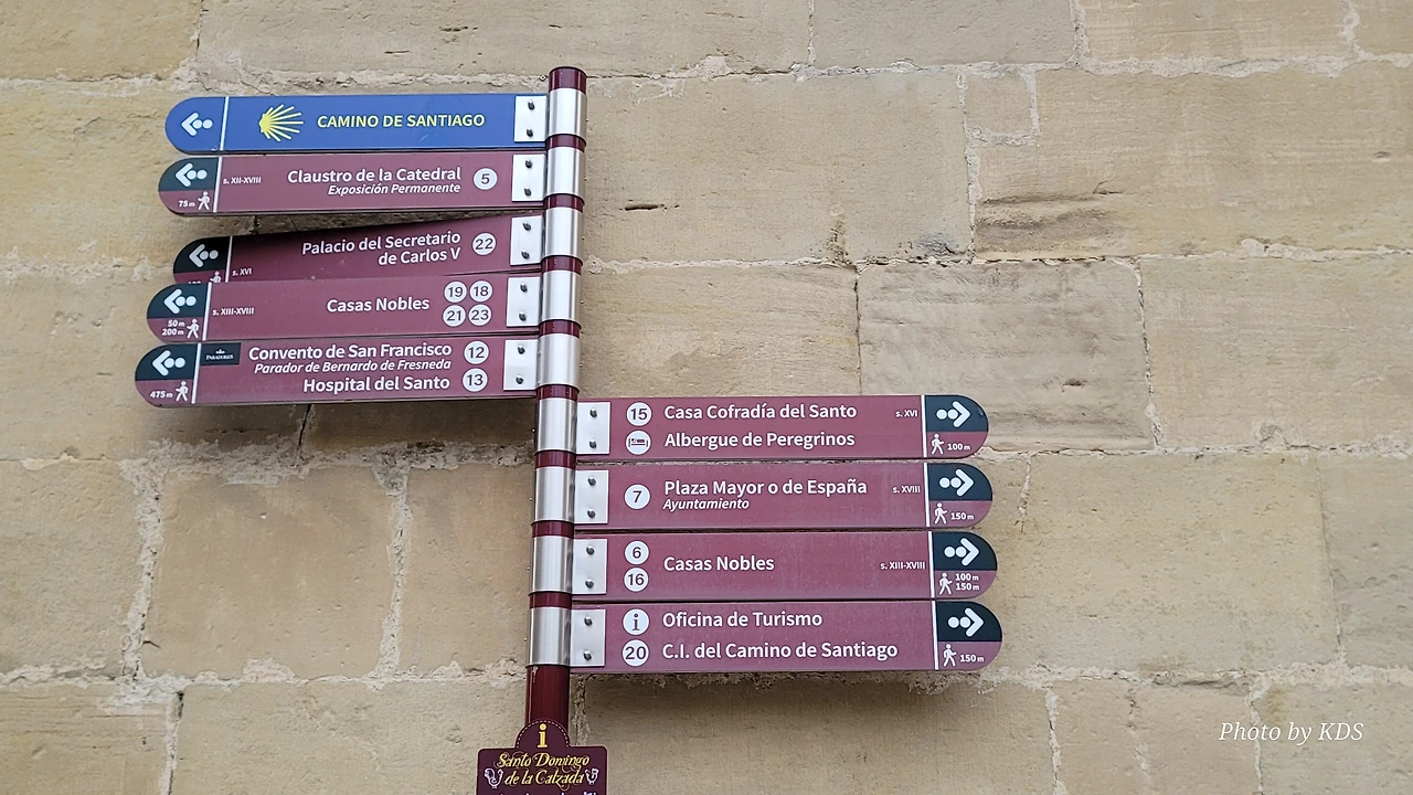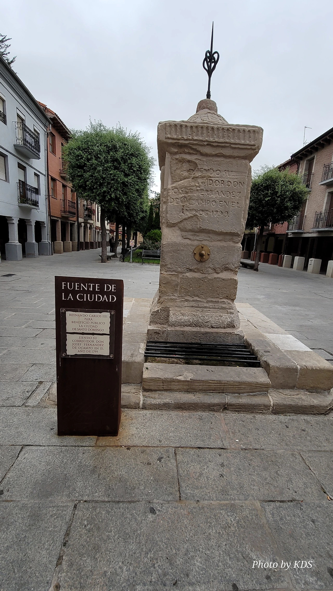 <도시의 음수대>이다. 레이난도 카를로스 3세가 "산토 도밍고 시의 공공의 이익을 의하여" 라고 쓰여 있다. 아마 1799년에 설치한 순례길의 음수대로 보인다. 정말 오래된 순례길의 음수대이다. 이 마을에는 대성당 이외에 수태고지 성모 수도원(Monasterio de Nuestra Senora de la Anunciacion)과 산 프란시스코 수도원(Convento de san Francisco), 재판용 원주(Rollo Juridiscional) 등이 있다.