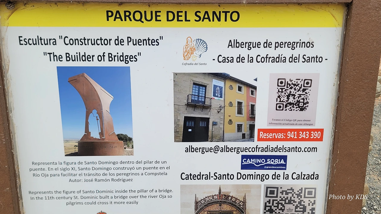 조각가 호세 라몬 로드리게스(Jose Ramon Rodriguez)의 조각 작품이다. 다리의 기둥 모양에 성인 산토 도밍고의 모습을 나타냈다. 11세기에 산토 도밍고는 순례자들의 이동을 편리하게 하기 위하여 오하강(Rio Oja)에 다리를 건설했다고 한다.