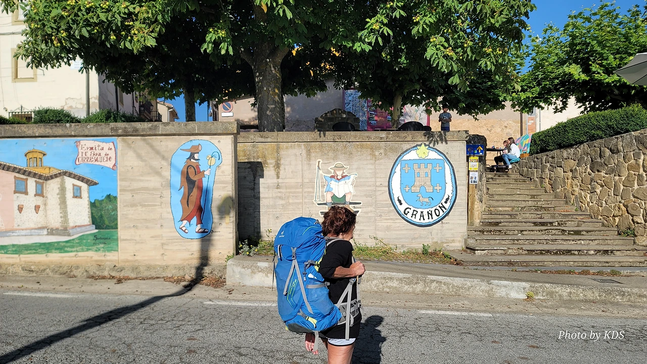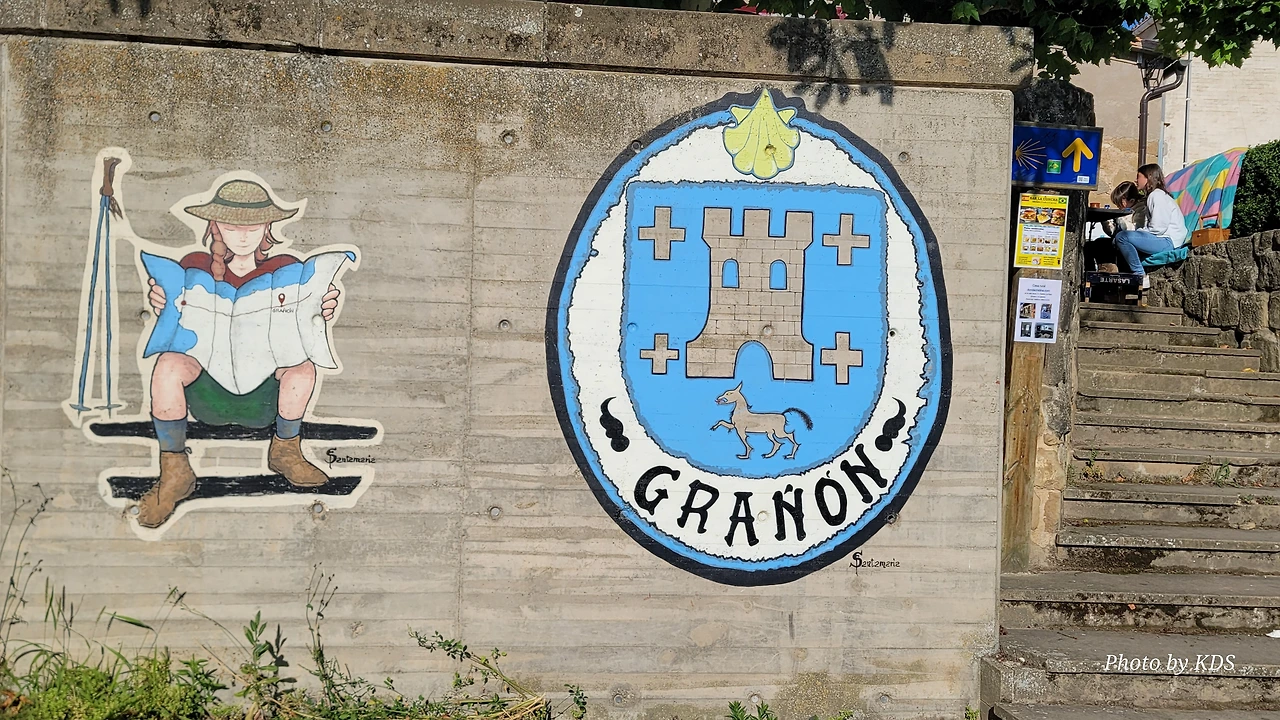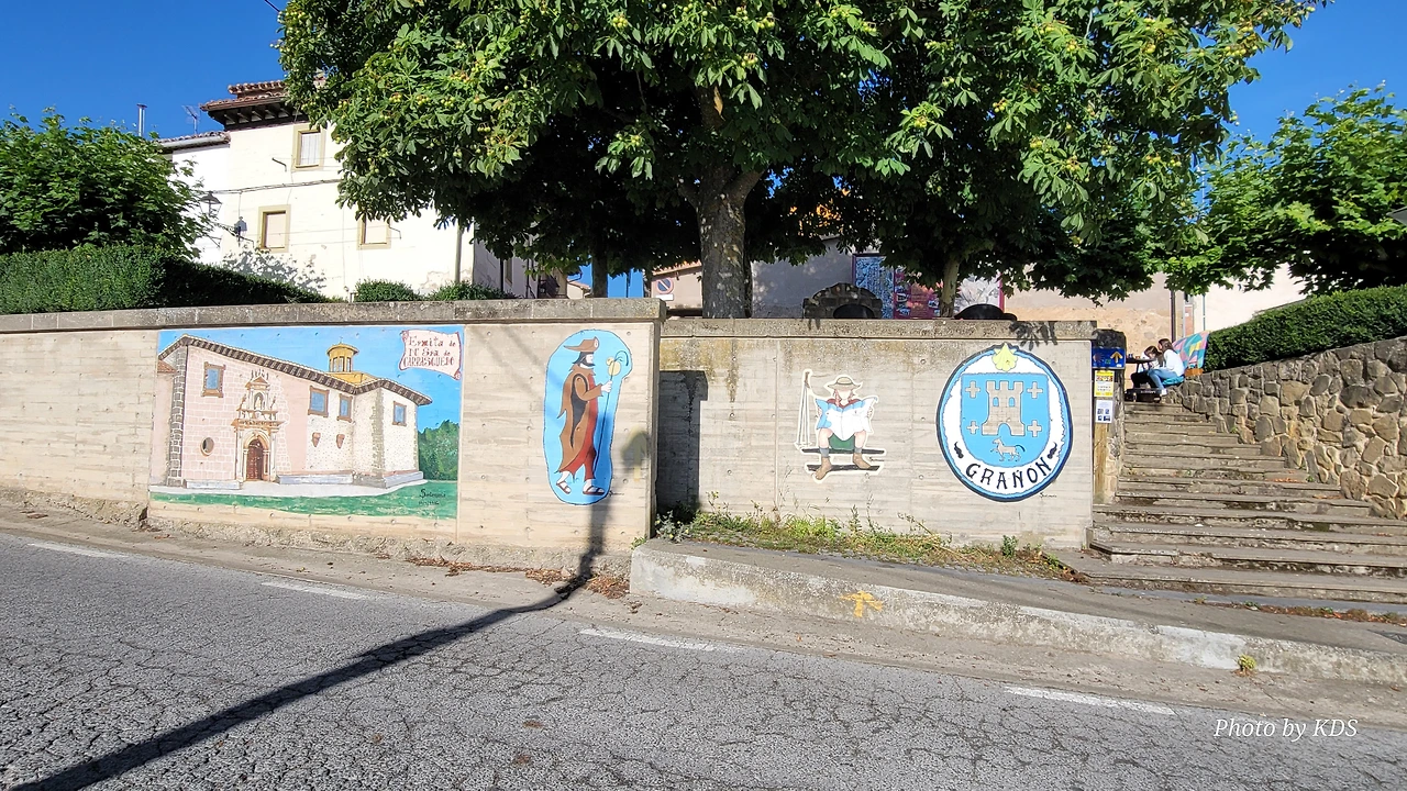 아침 늦게 출발하였지만 드디어 그라뇽 마을 입구에 도달했다. 산토 도밍고 데 라 깔사다 마을에서 6.5Km 정도 떨어져 있는 곳이다. 마을 입구를 들어가는데 프랑스에서 온 할머니 순례객을 만났다. 적지 않은 나이임에도 커다란 배낭을 메고 천천히 걷고 있었다. 힘들지 않으냐고 물었더니 전혀 힘들디 않고 즐거운 순례길이란다. 마을 계단을 올라가니 마을의 초등학교 여학생 두 명이 좌판을 펴고 조그만 조약돌에 그림을 그려서 순례객들에게 기념품으로 팔고 있었다. 어린 학생들이 아주 저렴한 원재료로 훌륭한 순례 기념품을 만들어서 순례객들의 마음을 끌고 있는 게 기특했다. 그라뇽은 리오하(Rioja) 주(州)의 마지막 마을이고, 다음 마을부터는 부르고스(Burgos) 주(州)이다. 이 마을은 마리벨 언덕에 알폰소 3세가 세운 성벽의 보호를 받으면서 중세부터 호황을 누렸던 마을이다. 마을에는 산 후안 바우띠스따 성당(Iglesia de San Juan Bautista)이 있다. 마을에서 조금 떨어져서 로스 후디오스 소성당(Ermita de los Judios)과 까라스께도 소성당(Ermita de Carrasquedo)도 있다.