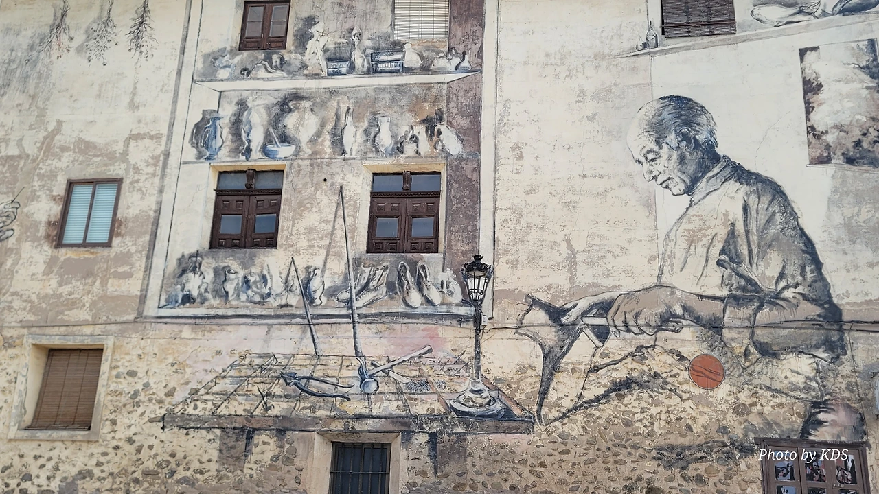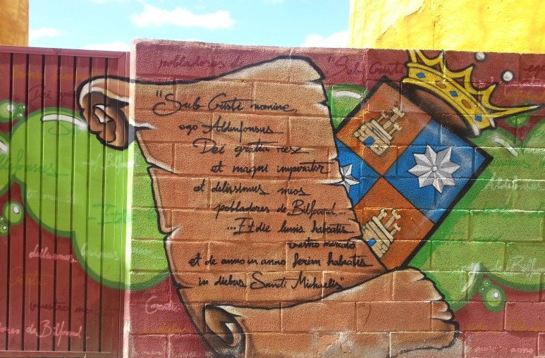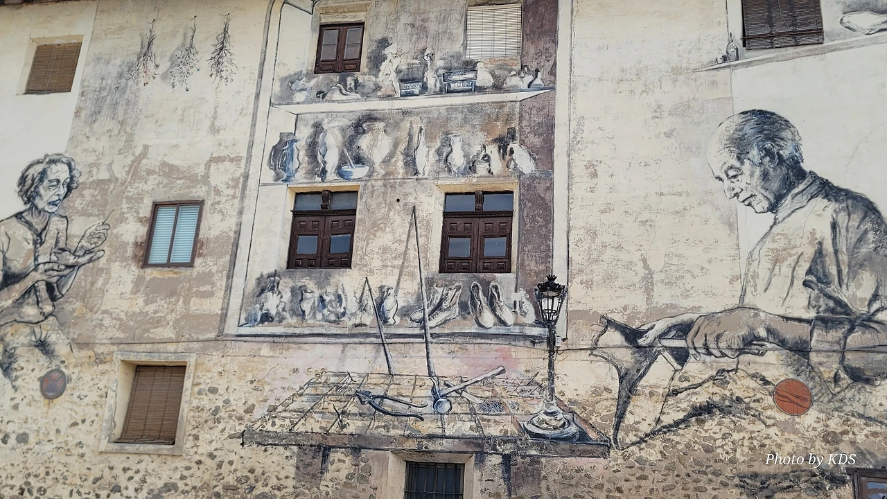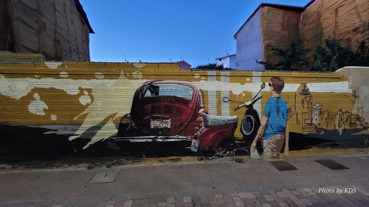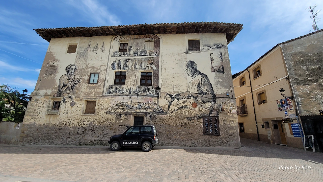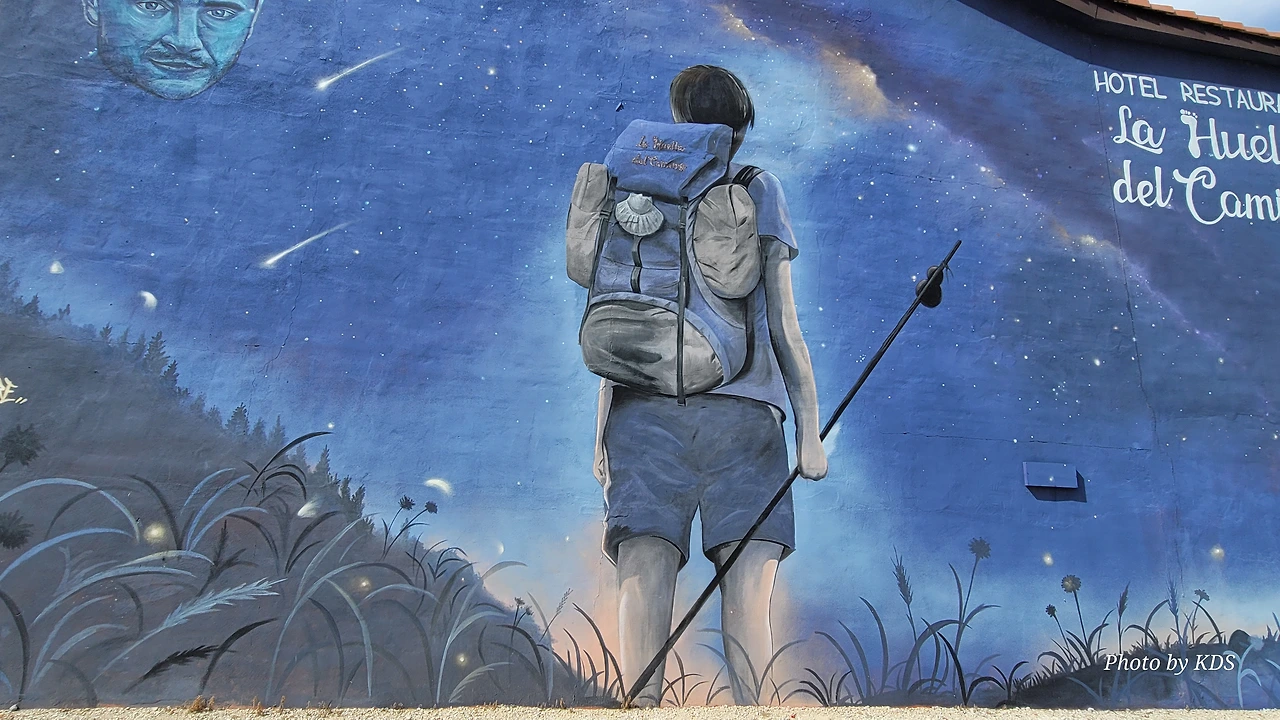 이곳 벨로라도에도 마을 건물의 벽이나 담장에 아주 규모가 큰 벽화를 장식해 놓아서 심신이 피곤한 순례객들의 눈을 즐겁게 해 주고 있었다. 조개껍질을 매 단 젊은 순례객의 모습도 있고, 건물의 창문 등을 활용한 노부부의 일상을 묘사한 그림도 보인다. 스페인 역사의 한 페이지가 될 수 있는 알폰소 7세가 무어인들을 정복하고 스페인의 영토를 탈환하는 전쟁을 승리한 모습도 보인다. 늙은 수도승이 순례길을 걷는 모습도 보인다. 다양한 벽화를 통해 그들의 생활상을 잠깐씩 엿볼 수 있다.