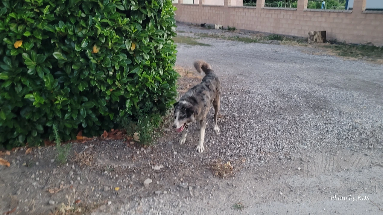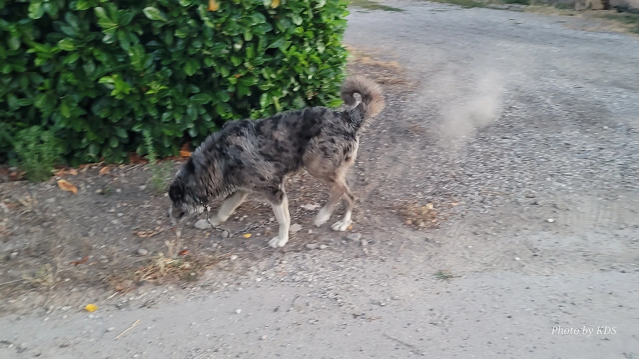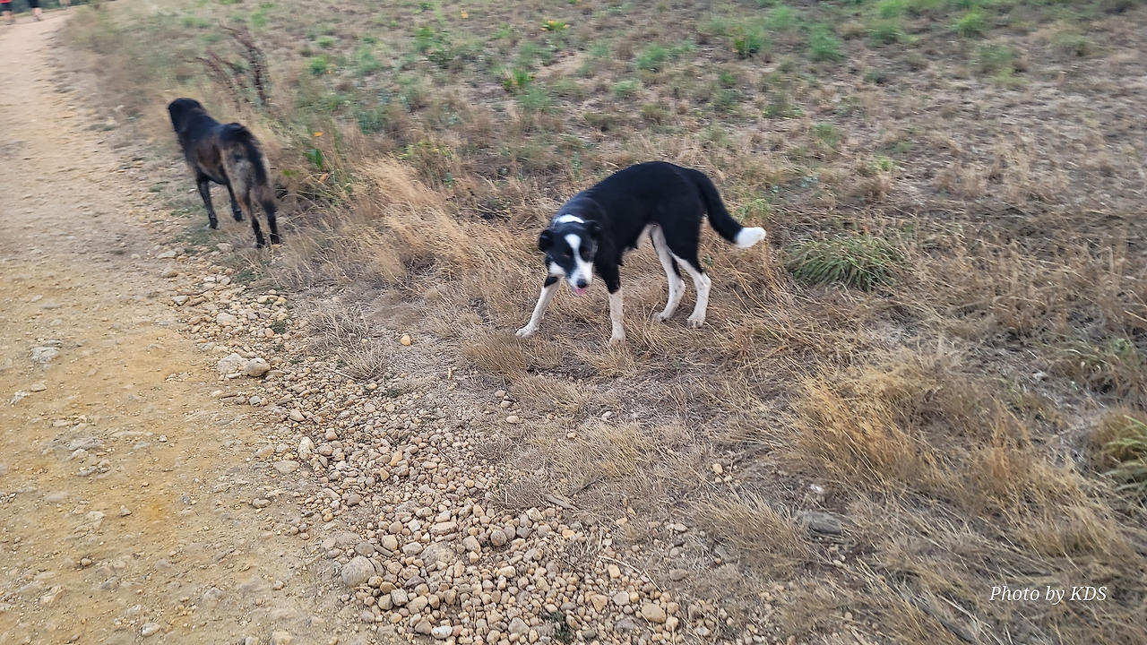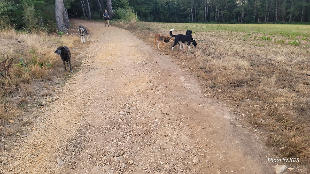 순례길을 걷다가 정말 간 떨어지게 놀란 경우가 세 번 있었는데, 모두가 이놈들 때문이다. 다름 아닌 야생 들개들의 공격이다. 어떤 순례객은 종아리를 물린 경우도 있다고 했다. 다행히 조선 과객 금삿갓은 식겁(食怯) 한 경우는 있어도 물리지는 않았다. 밝은 대낮에는 그래도 사주 경계를 하면서 걷기 때문에 들개를 먼저 발견해서 대비를 하는데, 새벽 일찍 어스름한 가운데 걸을 때가 제일 놀란다. 조선 과객 금삿갓은 원래 등산용 스틱을 사용하지 않기 때문에 호신용 무기가 될 만한 게 없었다. 그래서 낮에 햇볕을 가리기 위해 우산을 가지고 다녔는데 가끔 들개들의 공격에 아주 유용한 도구가 되었다. 이놈들이 굶주려서 그런지 위협을 해도 잘 도망가지 않고 도리어 노려보면서 공격할 기회를 노린다. 한 녀석은 마치 황소가 화가 났을 때처럼 뒷발로 땅을 긁어서 뒤쪽으로 흙이나 모래를 뿌리면서 노려보곤 했다. 아래 사진의 녀석은 누가 키우던 개인 모양인데 쇠사슬로 된 목줄까지 있었는데 어찌나 사나운지 쫓아 보내는데 한참이나 씨름을 했더. 이 녀석이 나무 울타리 뒤쪽에 숨어 있다가 갑자기 나타나서 맹렬히 짖으면서 덤벼 들어서 정말 간이 떨어지는 줄 알았다. 은근히 물리지 않을까 겁도 많이 들었다. 마치 늑대랑 싸우는 것 같았다.