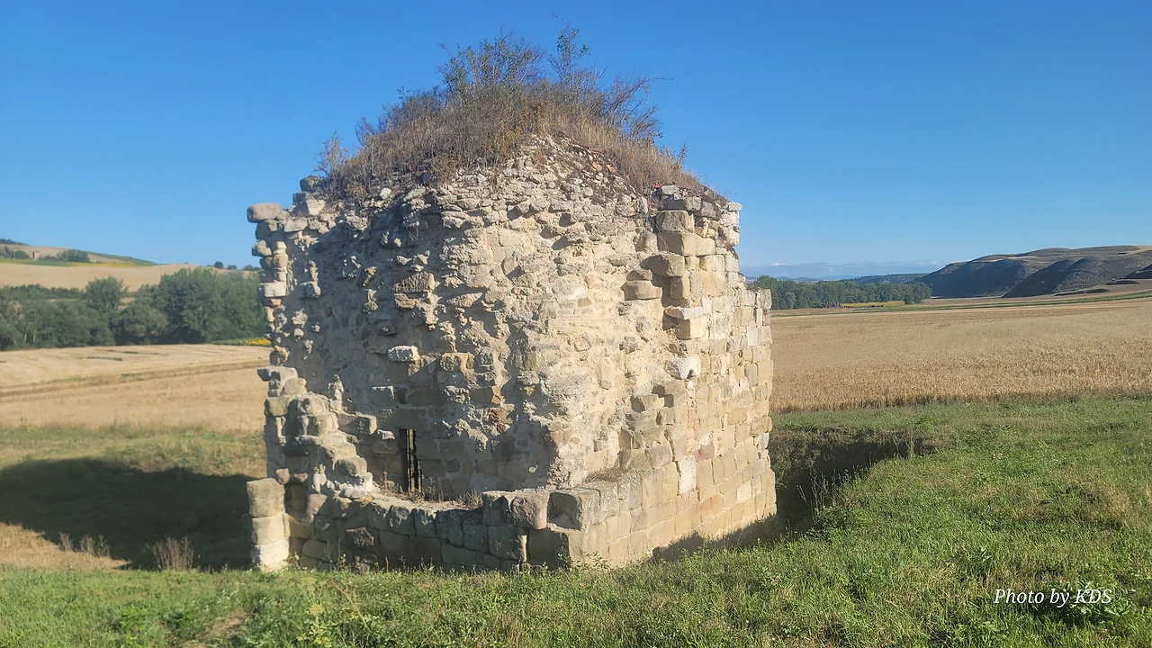 마을을 빠져나온 순례길은 계속되는 밀밭을 지나 이어진다. 548Km 남았다는 표지판을 뒤로하고 걷는데 밀을 수확하는 농부가 보인다. 커다란 농기계가 시커먼 연기를 내뿜으면서 열심히 밀을 수확하고 있었다. 까미노는 계속 밀밭 사이로 이어지고, 언덕에 올라서면 멀리 비야프랑까 몬떼스 데 오까(Villafranca Montes de Oca) 마을이 보인다. 거기서 내리막을 내려오면 부르고스(Burgos)를 만든 사람이라고 알려져 있는 디에고 로드리게스 뽀르셀로스(Diego Rodriguez Porcelos) 백작이 말년을 외롭게 보낸 산 펠리세스 수도원(Monasterio de San Felices)의 유적을 만나게 된다. 벽돌로 쌓아 만든 수도원이었는데, 다 허물어지고 아치형 문설주와 약간의 벽체만 남아서 옛날의 전설을 이야기해 주는 것 같다. 9세기경에 만들어진 이 수도원은 비야프랑까 몬떼스 데 오까를 1Km 정도 남겨둔 까미노위에 세워져있다. 모사라베 양식으로 만들어진 이 오래된 수도원에서 현재 남아있는 것은 서고트 양식을 따른 발굽 모양의 아치와 소성당의 잔해뿐이다. 이 수도원은 부르고스 시를 세운 돈 디에고 로드리게스 뽀르셀로스가 영원히 잠든 곳이라고 한다.