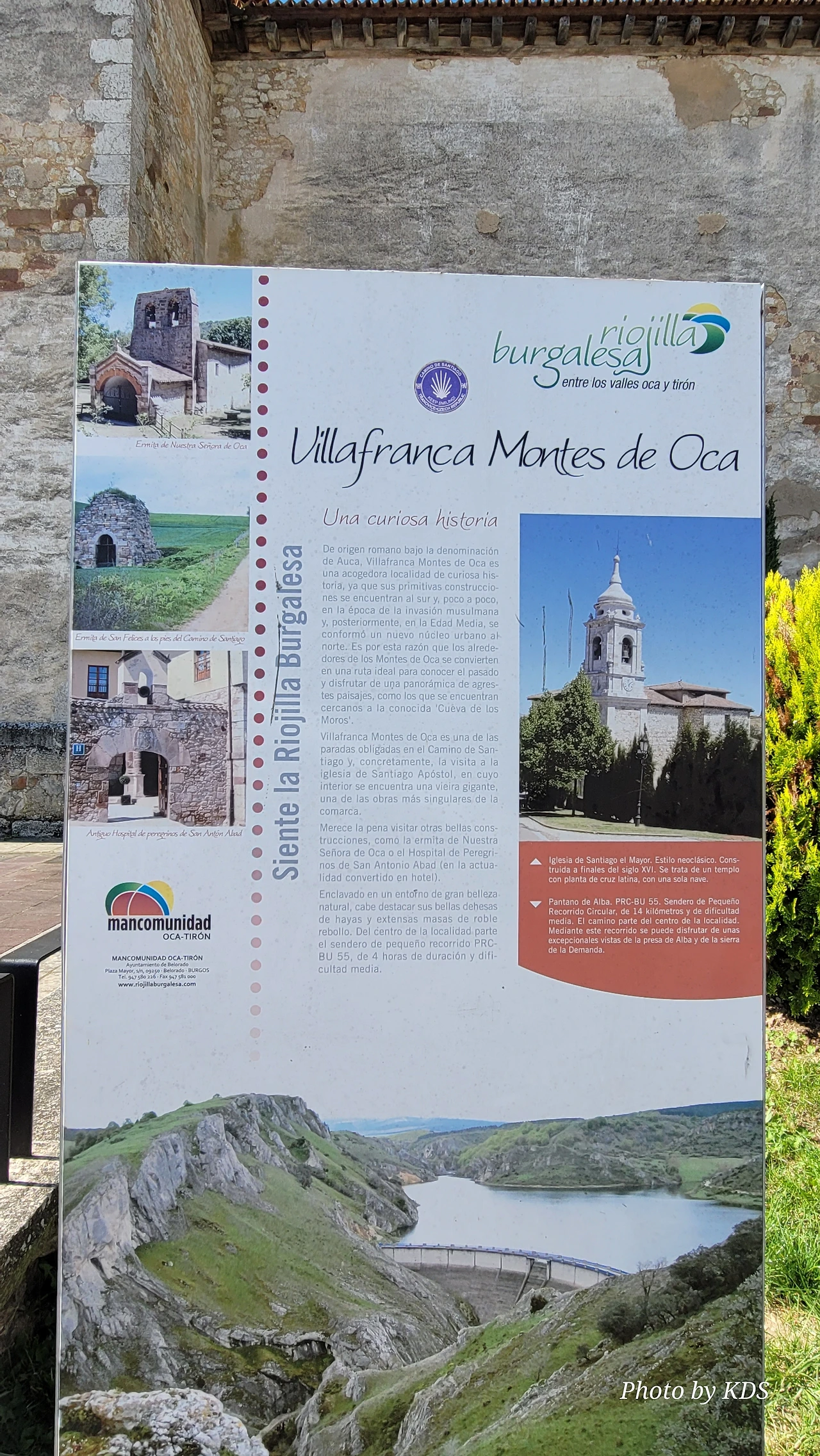마을에는 산티아고 교구 성당(Iglesia Parroquial de Santiago)이 있다. 18세기 후반 신고전주의 양식으로 지어진 성당으로, 필리핀에서 가져왔다고 전해지는 거대한 조개껍데기로 장식한 세례반이 있다고 하는데, 조선 과객 금삿갓은 시간 관계상 성당 안으로 들어가지 않아서 확인을 하지 못했다. 이 마을에서 부르고스 쪽으로 나오는 길에 아주 쇠락하고 오래된 라 오까의 성모 성당(Ermita de la Virgen de la Oca)을 볼 수 있다. 종탑이 없으면 성당이라고 알아볼 수도 없을 정도이다. 그런데 이곳의 샘에서 사도 야고보에게 서품 받은 아우까의 첫 번째 주교 성 안달레시오가 순교했다고 한다. 성인의 피가 떨어진 곳에서 샘이 솟았다고 하니 아주 성스런 장소이다.
