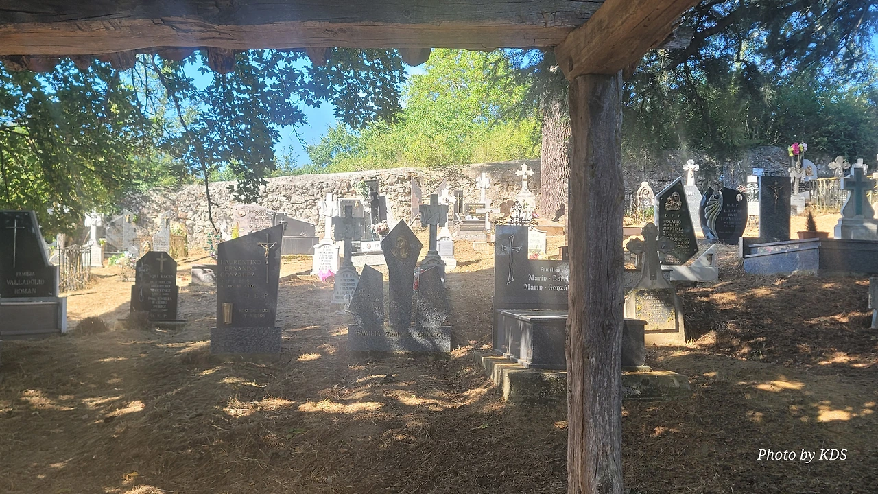 순례길을 걷노라면 마을을 당연히 지나게 되고, 그 마을의 어귀나 마을 근처에 가끔 공동묘지를 만나게 된다. 조선 과객 금삿갓도 나이가 나이인지라 그런 공동묘지를 보고 그냥 지나치지 못하게 된다. 묘지를 한번 둘러보고, 하다못해 성호(聖號)라도 한번 긋고 사진을 찍고 지나곤 했다. 그리고 순례길섶에는 가끔 가다가 외롭게 서있는 십자가를 만나게 된다. 이런 십자가는 대체로 순례길을 걷다가 영원히 안식의 순례길에 든 사람들을 기리는 무덤이다. 정확하게 이름이 기록된 것도 있지만, 오래되어 이름도 표식도 없는 것도 있다. 아픈 몸을 이끌고 순례길에 나섰다가 삶을 마감한 사람도 있겠지만, 과거에는 도둑이나 강도들의 손에 당한 사람도 있을 것이고, 현대에는 교통사고나 기타 사고로 목숨을 잃은 경우도 있다. 비야프랑카 몬테스 데 오카(Villafranca Motes de Oca) 마을도 지나오는데 마을 공동묘지 옆에 커다란 나무가 울창하게 자라서 묘지를 거의 덮고 있는 것처럼 보였다. 아담한 묘지의 2/3가 그늘이 되고 있었다. 우리나라 기준으로 보자면 저렇게 음지를 만드는 것이 좋지 않다고 생각할 텐데 여긴 다른가 보다.
