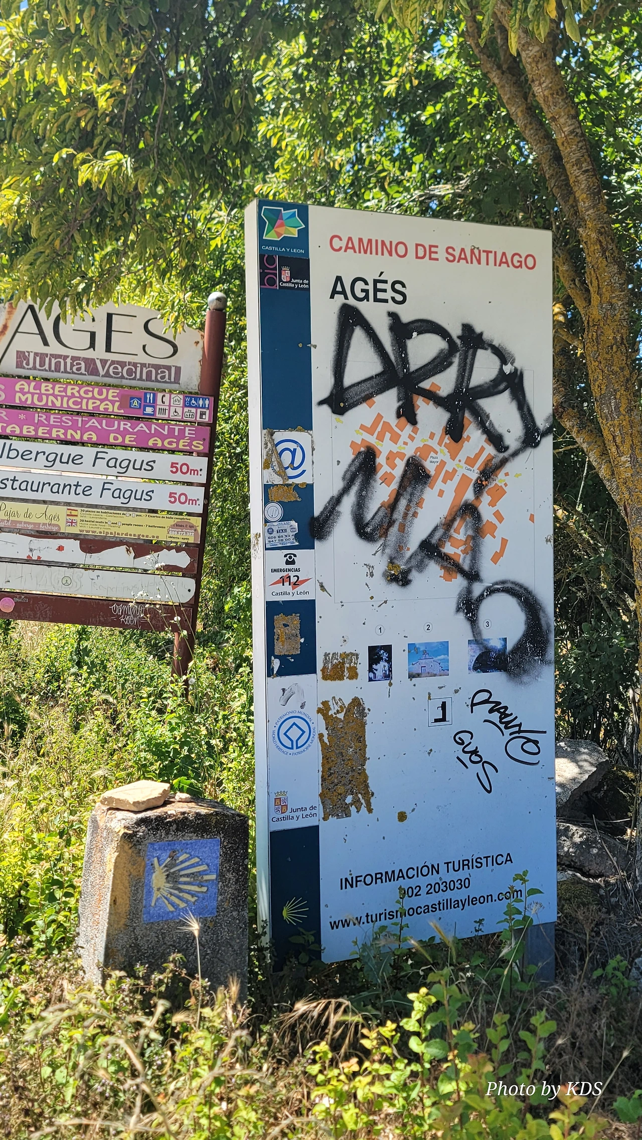 오늘 벨로라도(Belorado)에서 27.5Km를 걸어서 아헤스(Ages) 마을에 도착했다. 아주 오래된 마을이지만 정말 조용하고 작은 마을이다. 작은 마을인데도 불구하고 순례자들의 숙소인 알베르게는 3개나 있었다. 마을의 중간에 있는 엘 파하르(El Pajar) 알베르게를 잡았다. 오랜만에 합숙을 하지 않고 투 베드 룸(Two Bed Room)을 거금 45유로를 주고 잡은 것이다. 하지만 이 마을에는 슈퍼마켓도 없고 작은 바(Bar)를 겸한 구멍가게 수준의 상점이 전부였다. 바의 메뉴도 그렇고 진열된 상점의 물건 또한 볼품이 없었다. 그래도 선택의 여지가 없으니 이를 이용하지 않을 수 없었다. 간단한 저녁거리를 사서 숙소에 가져다 놓고 마을을 한 바퀴 산보 겸 돌아보았다.