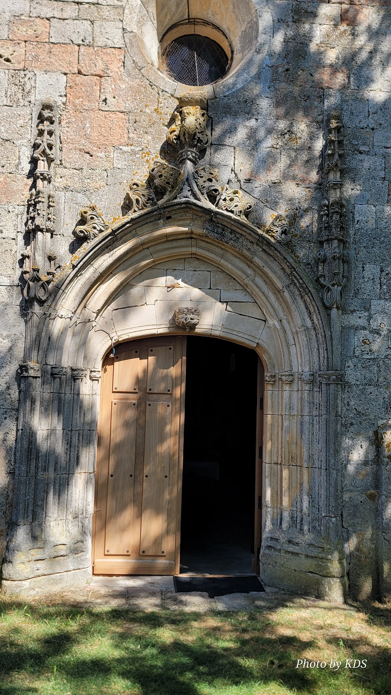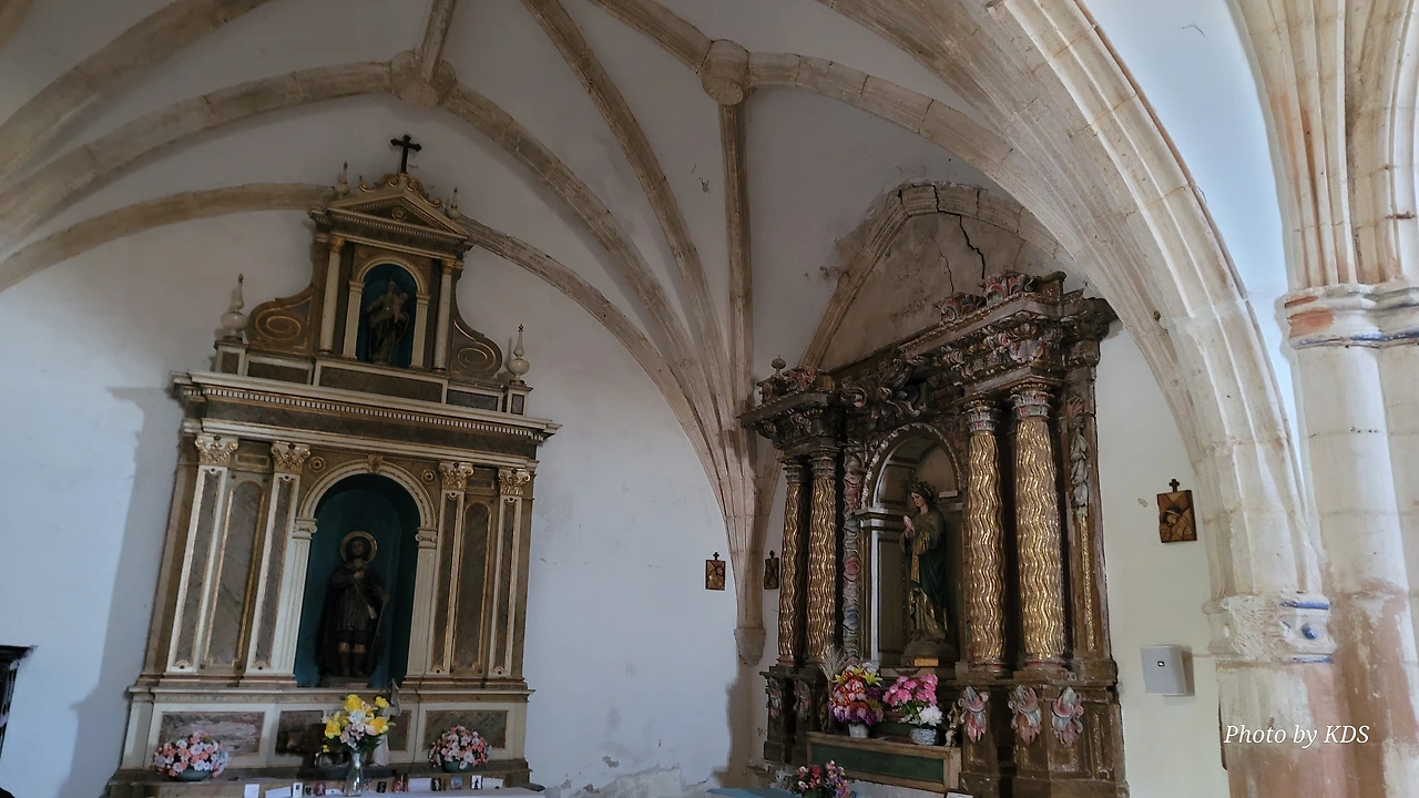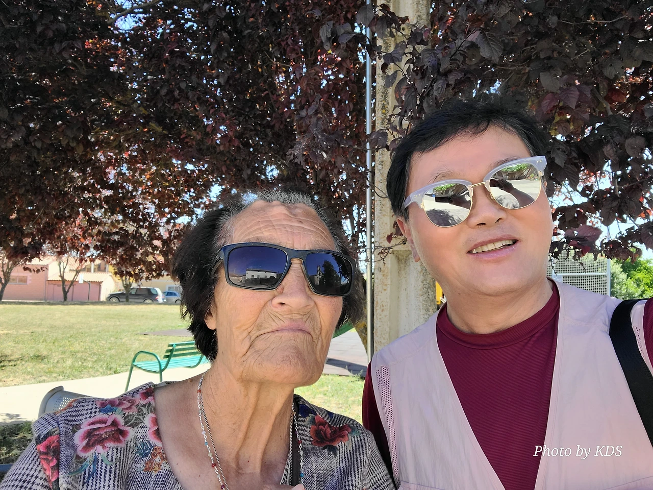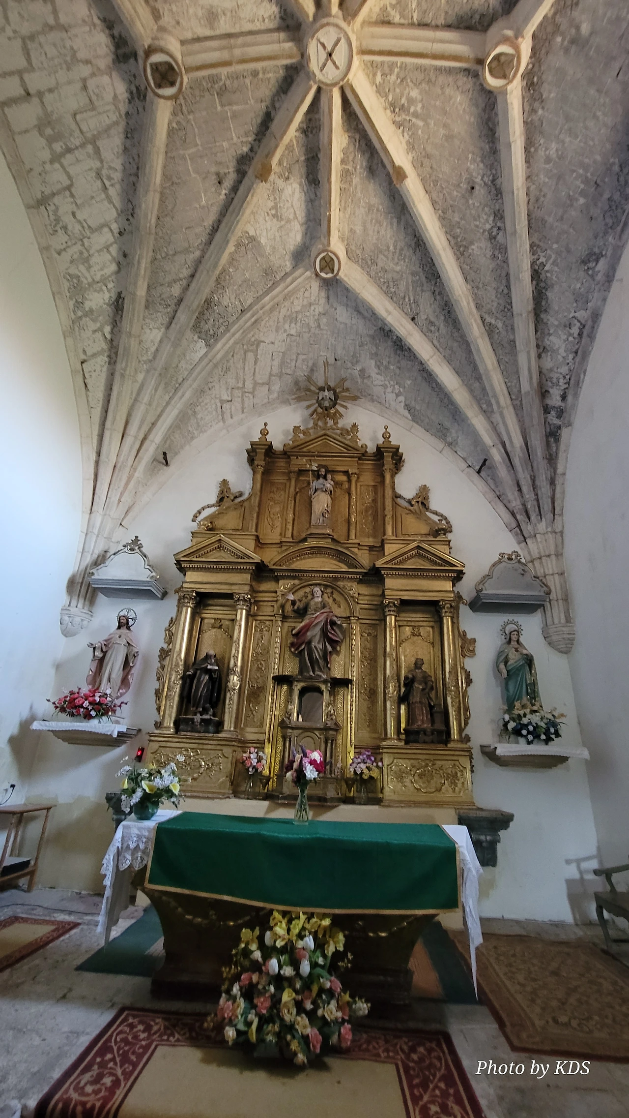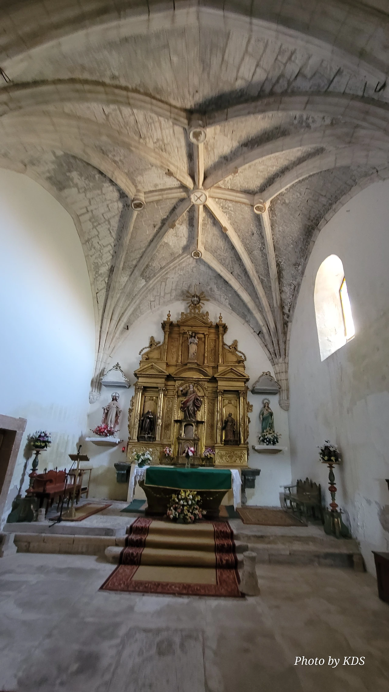 이 성당에 갔더니 이 마을의 할머니 한 분이 성당을 지키고 계셨다. 할머니는 영어를 못하고, 조선 과객 금삿갓은 스페인어를 모르니 의사소통이 제대로 될 리가 없다. 할머니는 할머니 대로 열심히 설명하는데 한 귀로 듣고 흘릴 수밖에 없어서 약간 미안했다. 하지만 기부금 모금 바구니를 들고는 기부금을 좀 내라는 대목은 둘 다 명확히 알 수 있었다. 약간의 기부금을 내고, 성당 내부의 사진도 찍고 할머니랑 같이 앉아서 사진을 찍었다. 성당의 종탑 위에는 새들이 보금자리를 만들어 놓은 게 보였다. 순례길의 높은 건축물에는 저렇게 새집을 지어 놓은 곳이 많았다.