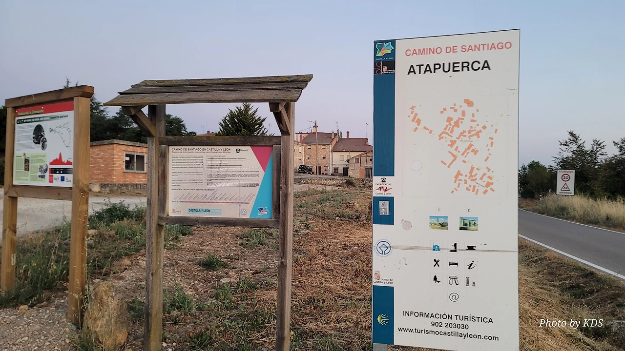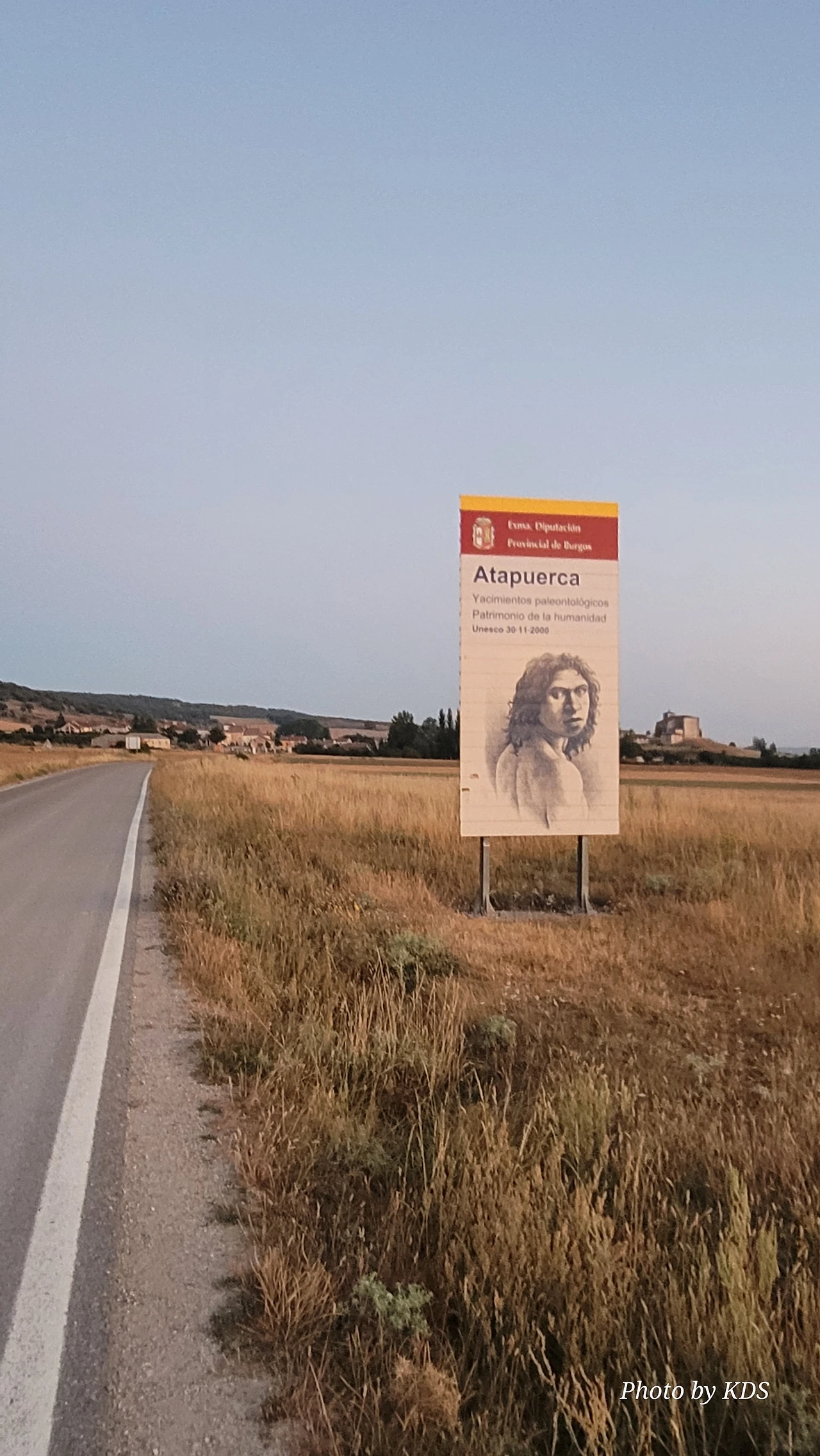 아헤스(Ages)에서 아침 6:20분에 숙소를 출발했다. 아직 날이 밝지 않았고 오늘 브르고스(Bergos)까지 걸어야 한다. 중간에 해발 1,078m의 마따그란데(Matagrande) 언덕을 제외하고 평지이거나 내리막이라서 길은 평이할 것이다. 브르고스 까지는 5~6개의 마을을 지나가거나 스쳐가야 한다. 첫 번째 마을이 아따뿌에르까(Atapuerca) 마을이다. 아헤스에서 약 2,5Km 정도 떨어져 있는데 중간은 대부분 평원이다. 이 평원에서 그 옛날 치열한 전투가 벌어졌고, 그 사실을 기념하는 기념물이 있다. 1054년경 병환에 시달리던 팜플로나 왕국의 가르시아 3세는 자기가 죽으면 동생인 레온 왕국의 페르난도가 자신의 아들들을 몰아내고 팜플로나 왕국을 삼키려 들 거라 예상하고 있었다. 그래서 병문안을 하러 온 페르난도를 체포해 카에 성에 가두었다. 하지만 페르난도는 간수를 매수해 극적으로 탈출한 뒤 레온 왕국으로 돌아갔다. 사후가 걱정인 가르시아 3세가 무슬림들과 연합하여 카스티야 즉 레온왕국을 침공하자, 페르난도는 아라곤 백작 라미로 사노이츠와 함께 동맹을 맺고 대항했다. 양군은 아헤스 마을과 아따뿌에르카 마을 사이의 계곡에서 맞붙었는데, 전투 도중에 가르시아 3세가 전사했다. 팜플로나군은 해질 무렵까지 전투 대열을 유지했고, 왕의 시신을 수습한 뒤 일부는 아헤스 마을이 성당에 묻어두고, 나머지는 팜플로나로 이송하여 안장했단다. 그리고 이 평원에 나바라(팜플로나)의 왕 가르시아 엘 데 나헤라(가르시아 3세)의 죽음을 기리며 커다란 돌을 세워 경계석으로 삼았다. 죽은 왕의 경계석 (Mojon Fin de Rey) 또는 죽은 왕의 선돌(Menhir Fin de Rey)라고 불린다.