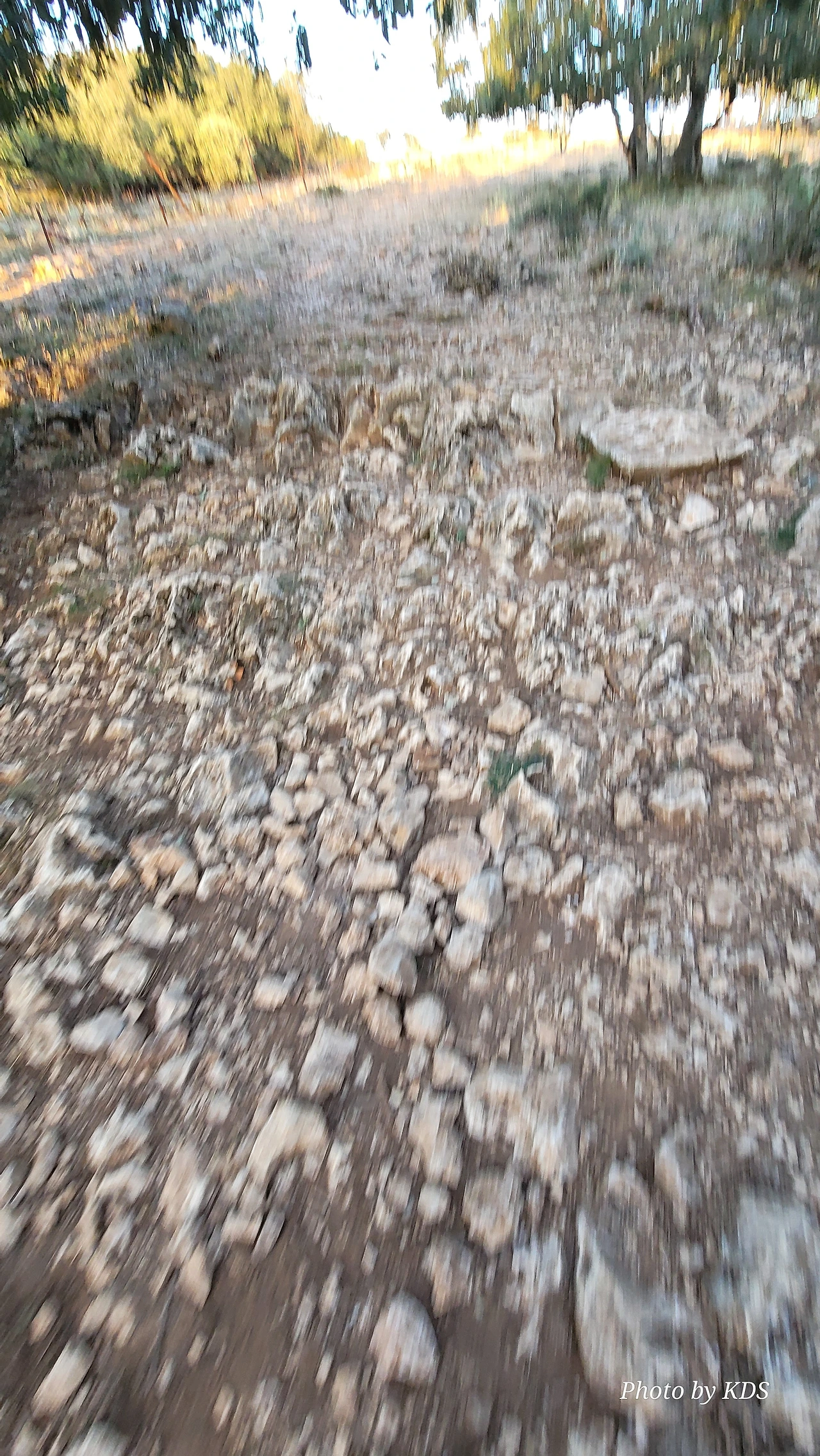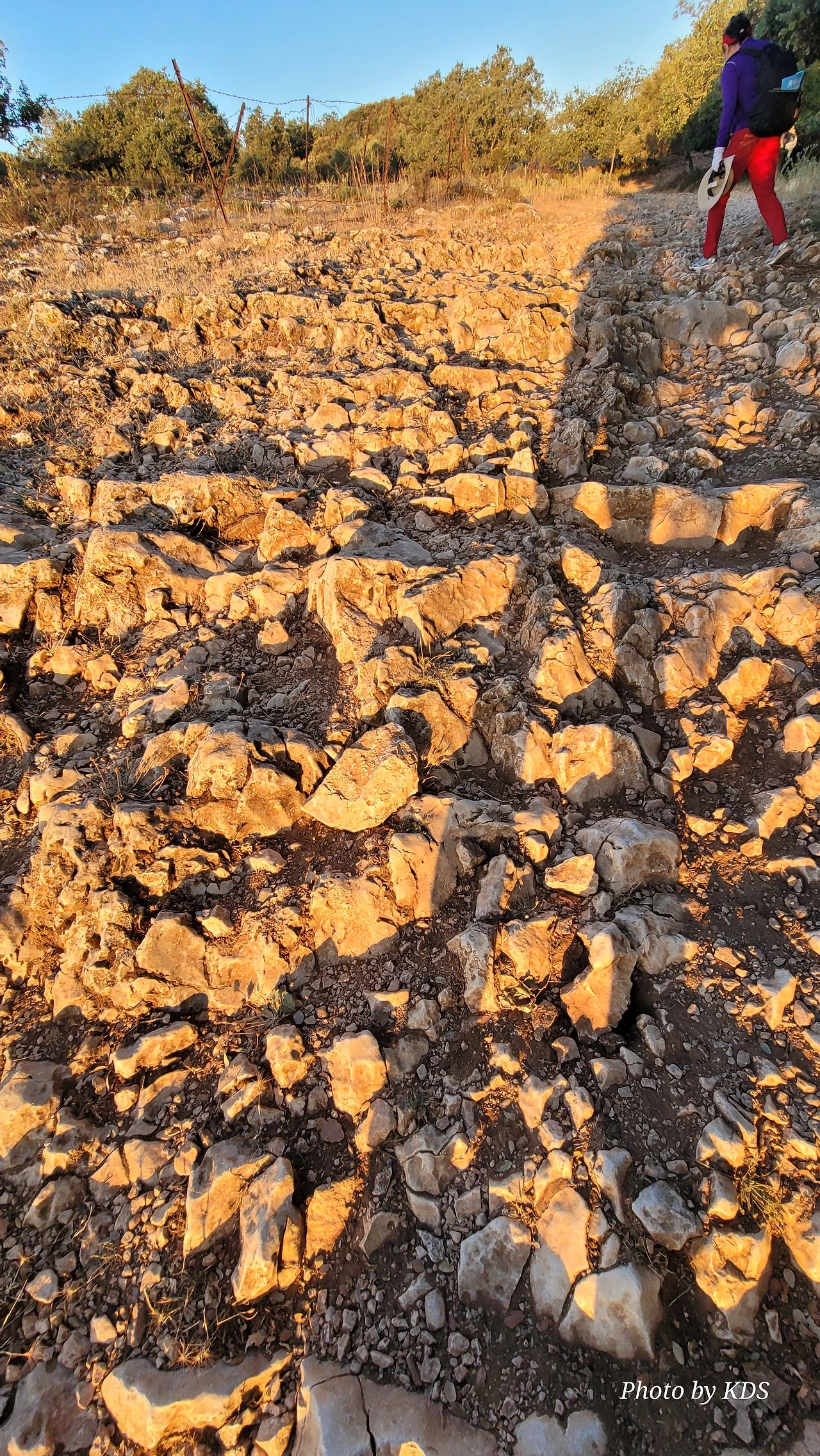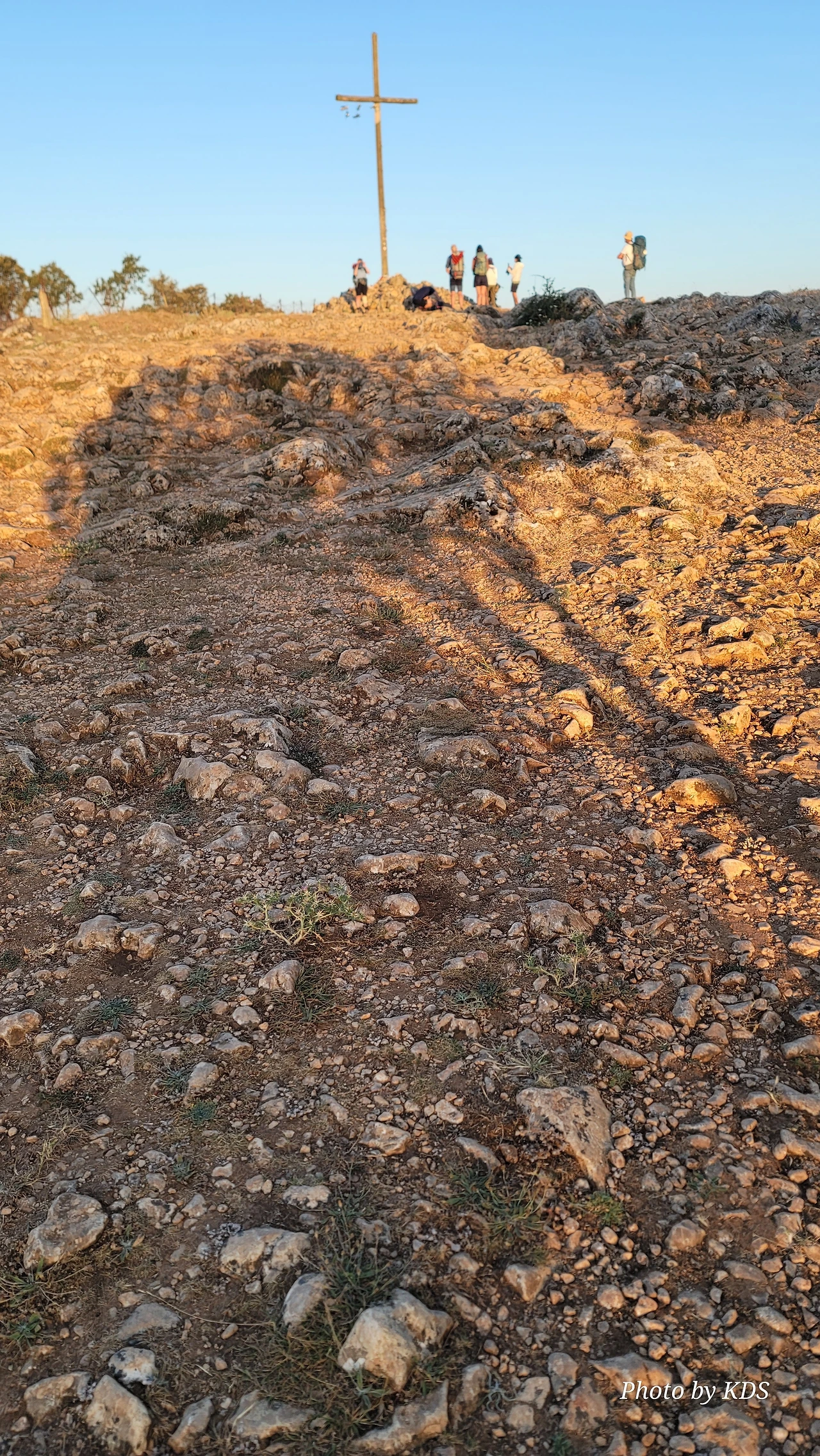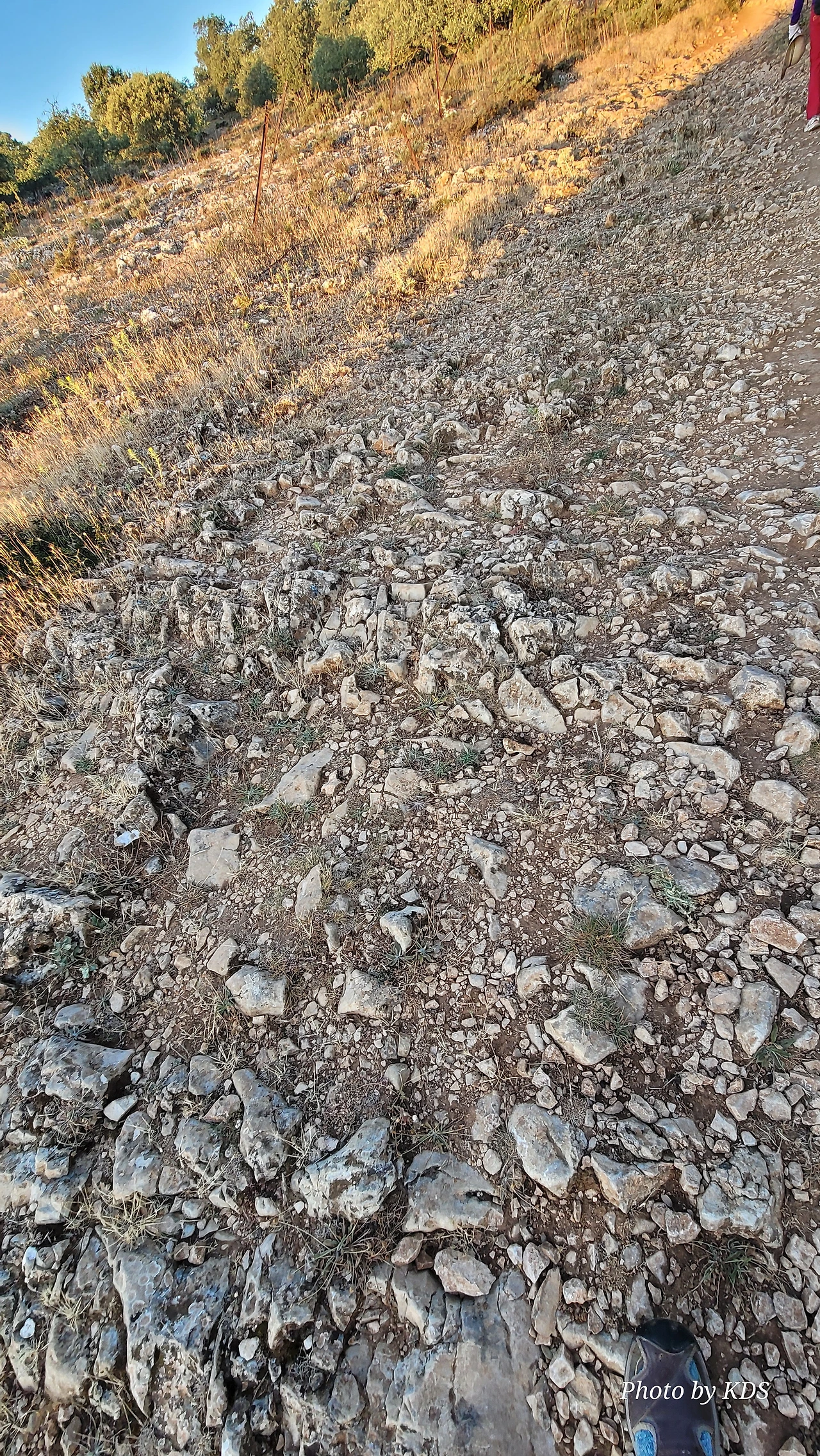언덕의 정상 부근으로 올라가는 길은 정말 최악의 상태이다. 아래의 사진처럼 온통 뾰족뾰족한 돌들로 이루어져 있어서 순례객들의 신발 성능을 시험한다. 혹시 미끄러져 넘어지는 날에는 무릎이나 엉덩이는 무사하지 못할 것이다. 동반자가 이와 비슷한 지형에서 넘어져서 무릎을 크게 다칠 뻔했다. 다행히 두꺼운 무릎보호대를 하고 장갑을 끼고 있어서 바지와 장갑에 구멍이 크게 났지만 그렇게 심하게 다치지는 않았다. 그 당시 사진 찍느라 꺼내 들고 있던 스마트 폰의 액정은 왕창 깨 먹고 말았다. 어떤 경우든 순례길을 걸으려고 오는 순례객들은 출발하기 전에 필수적으로 해외여행자 보험을 가입할 것을 권고한다. 이역만리에서 그것도 대도시가 아닌 시골의 벽지에서 사고를 당하거나 병이라고 나면 정말 대략 난감한 것이다. 비용도 비용이지만 엄청 고생을 하게 마련이다.