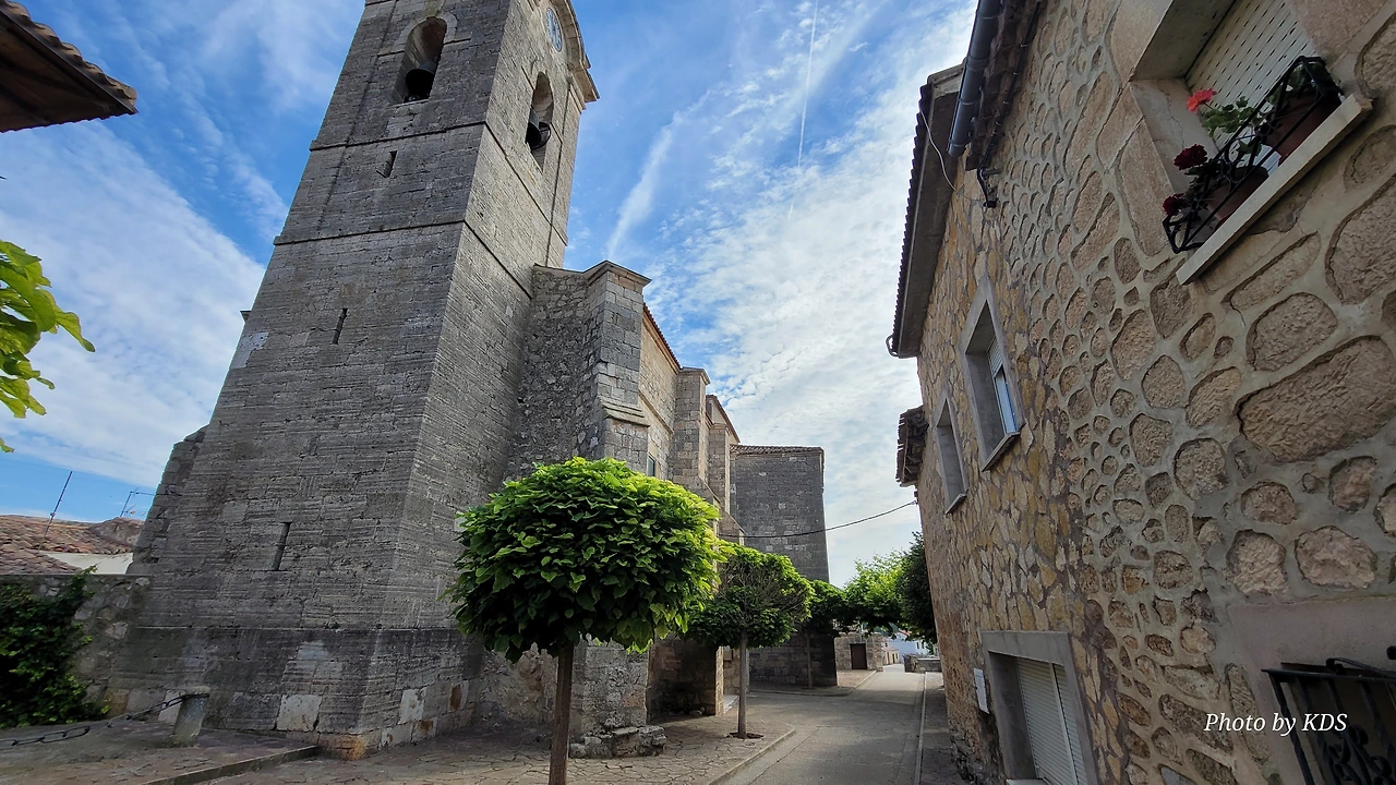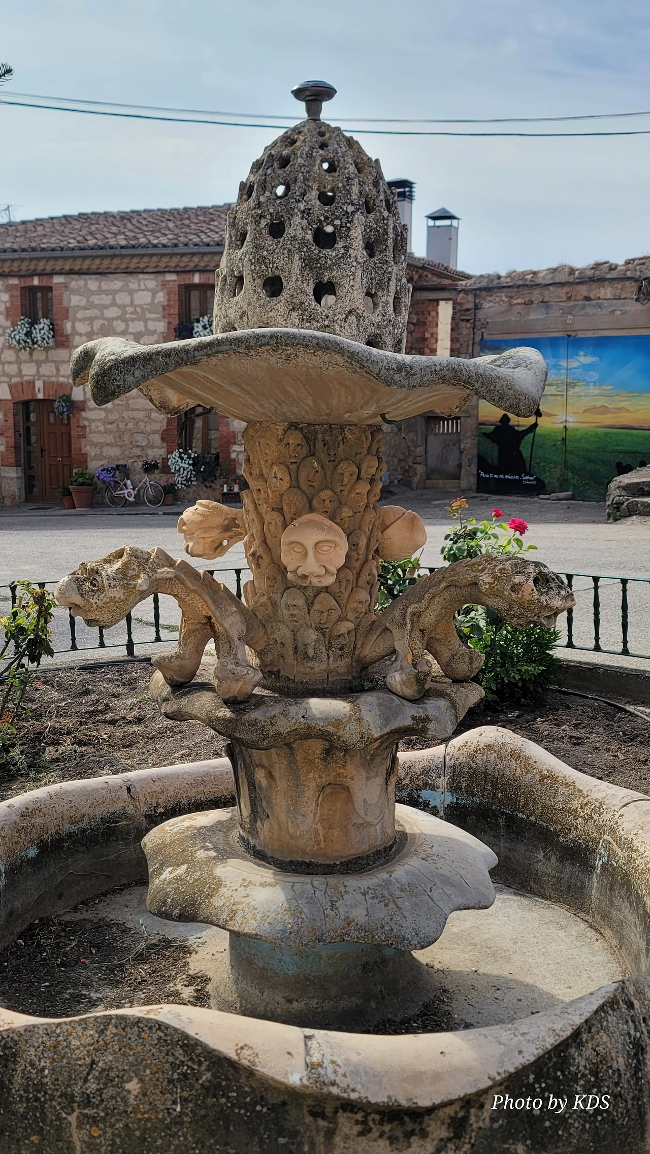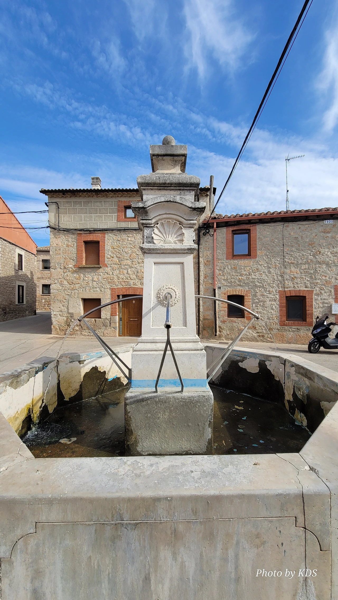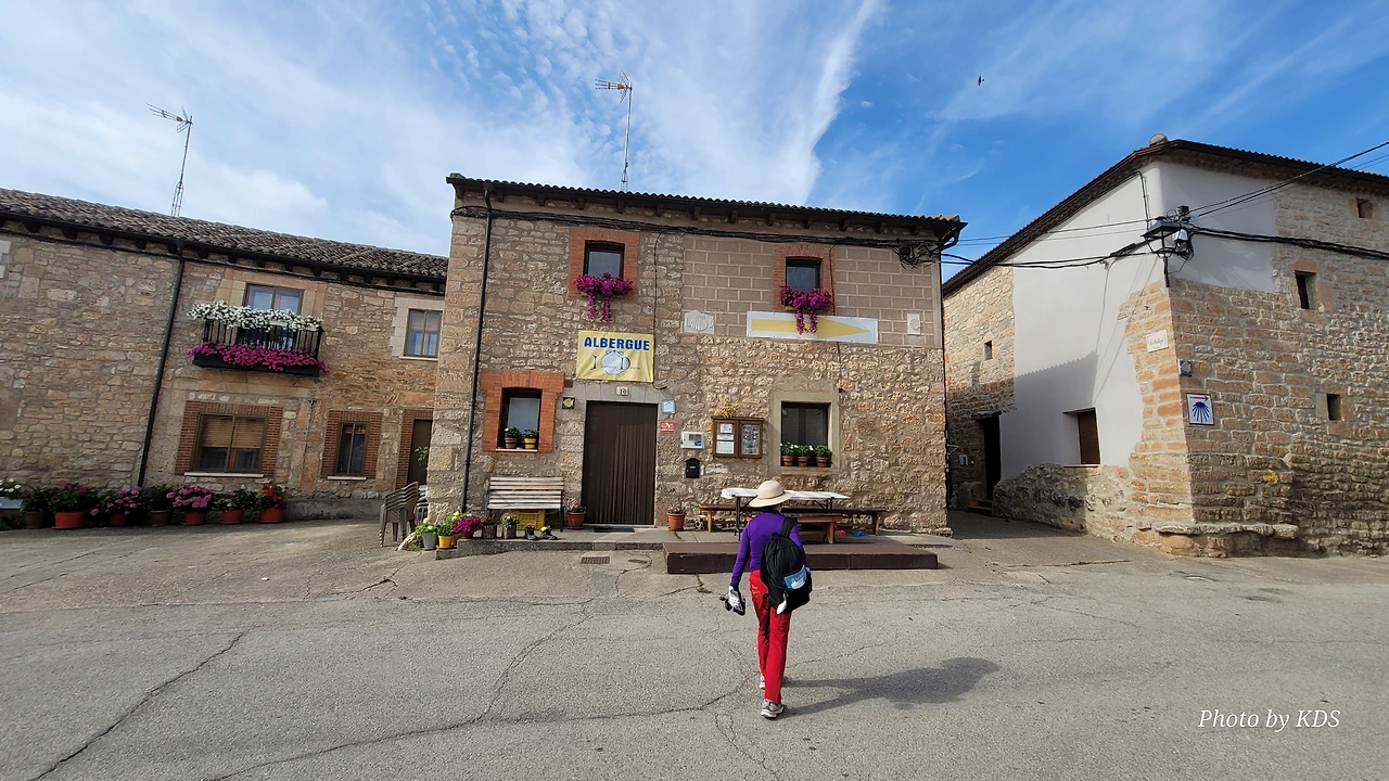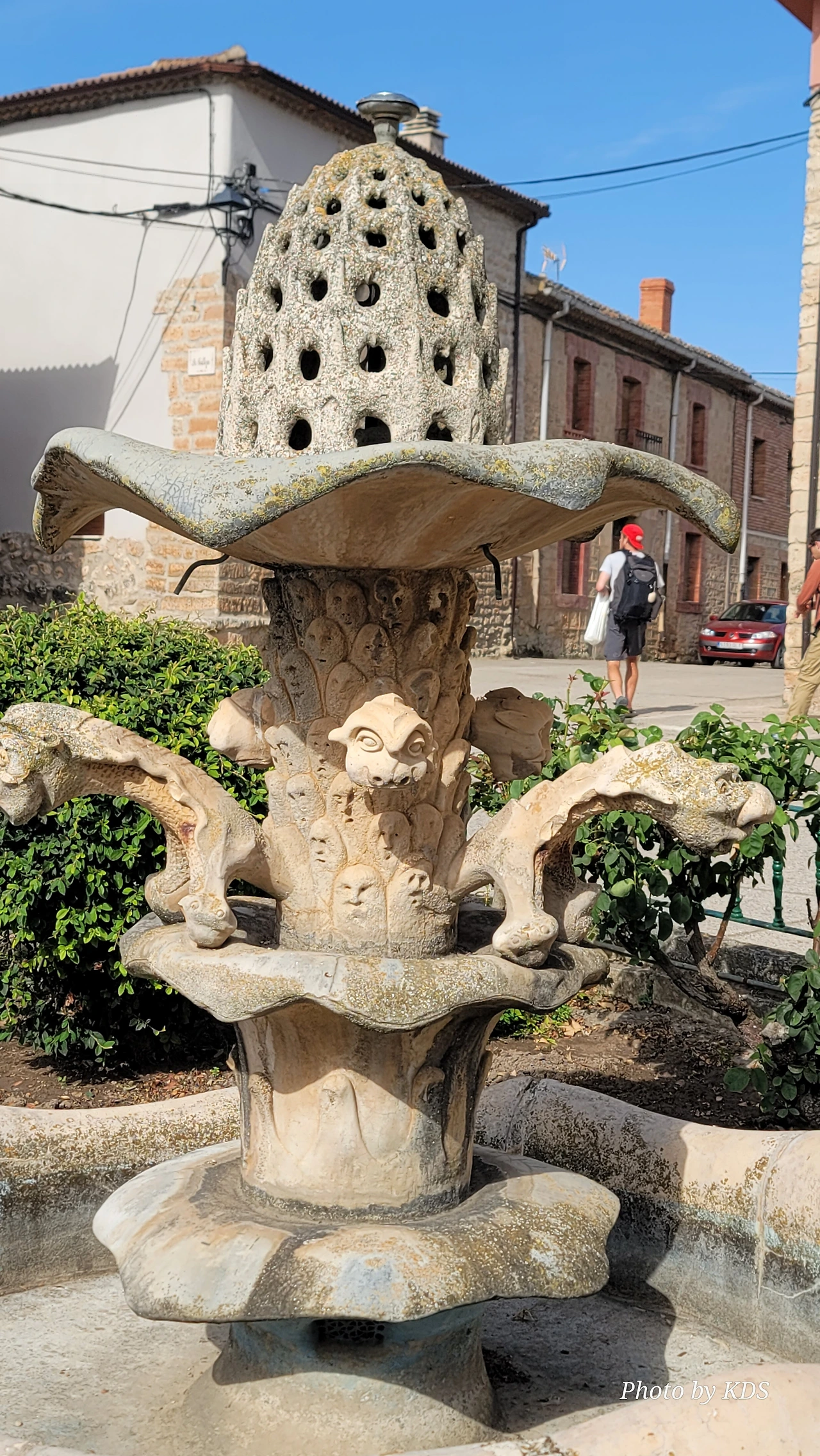 들녘에는 밀을 추수하고 남은 건초 더미가 밭에 놓여있다. 길 옆에는 순례길을 걷다가 먼저 간 이름 모를 사람을 추모하는 초라한 십자가도 있었다. 마을의 각종 순례객을 위한 조형물은 대부분 철판으로 만들어진 것이다. 마을 지도도 철판으로 만들어 놓았다. 조그만 마을에 성당이 두 개나 있었다. 마을의 중앙에 있는 것은 산따 마리나 교구 성당(Iglesia Parroquia de Santa Marina)이다. 이 성당은 13세기에 만들어져서 여러 번 개축되었고, 아직까지 고딕 양식 현관 등이 남아있다. 마을을 빠져나가는 방향에 작고 오래된 성당이 하나 더 있다. 모나스떼리오 성모 성당(Ermita de Nuestra Senora Monasterio)이다. 이 성당에 모나스떼리오 성모상을 보존하고 있다. 마을 중앙 광장에 괴물 모양의 형상을 많이 조각한 석탑이 하나 서 있어서 지나가는 순례객들의 눈길을 사로잡는다.