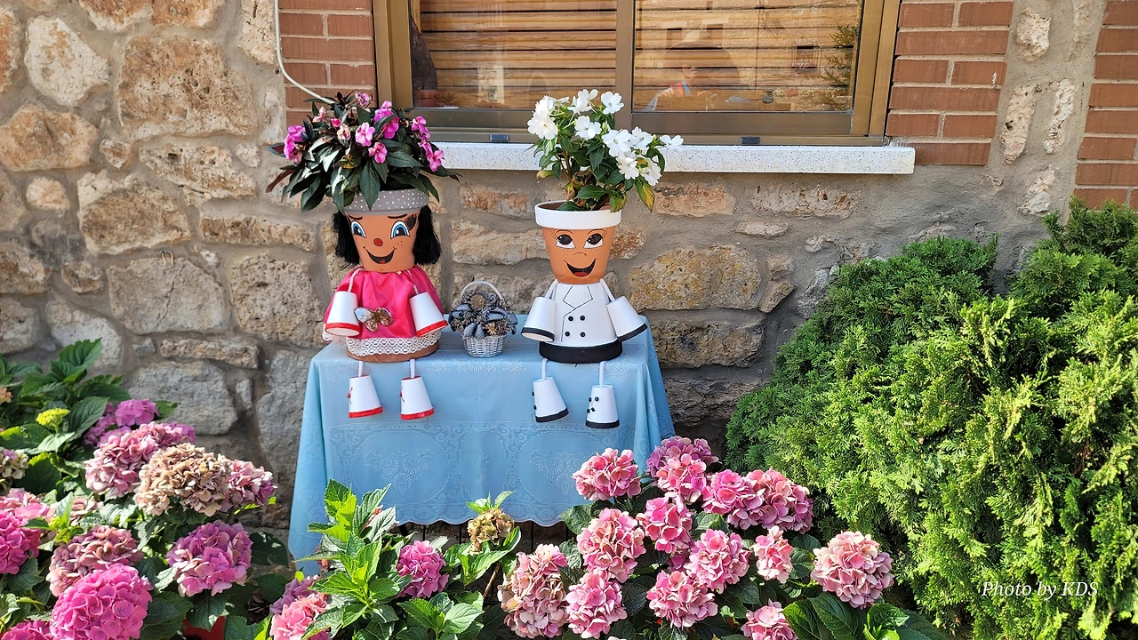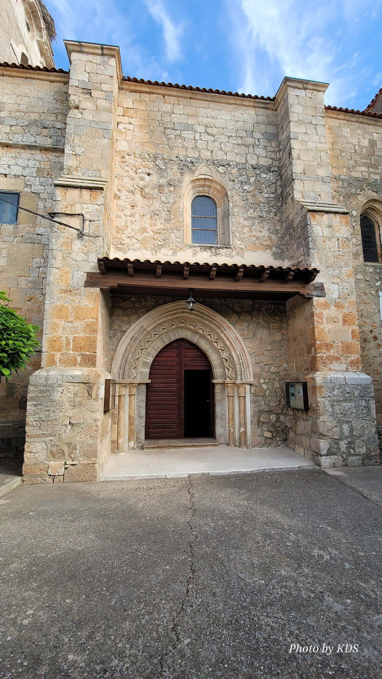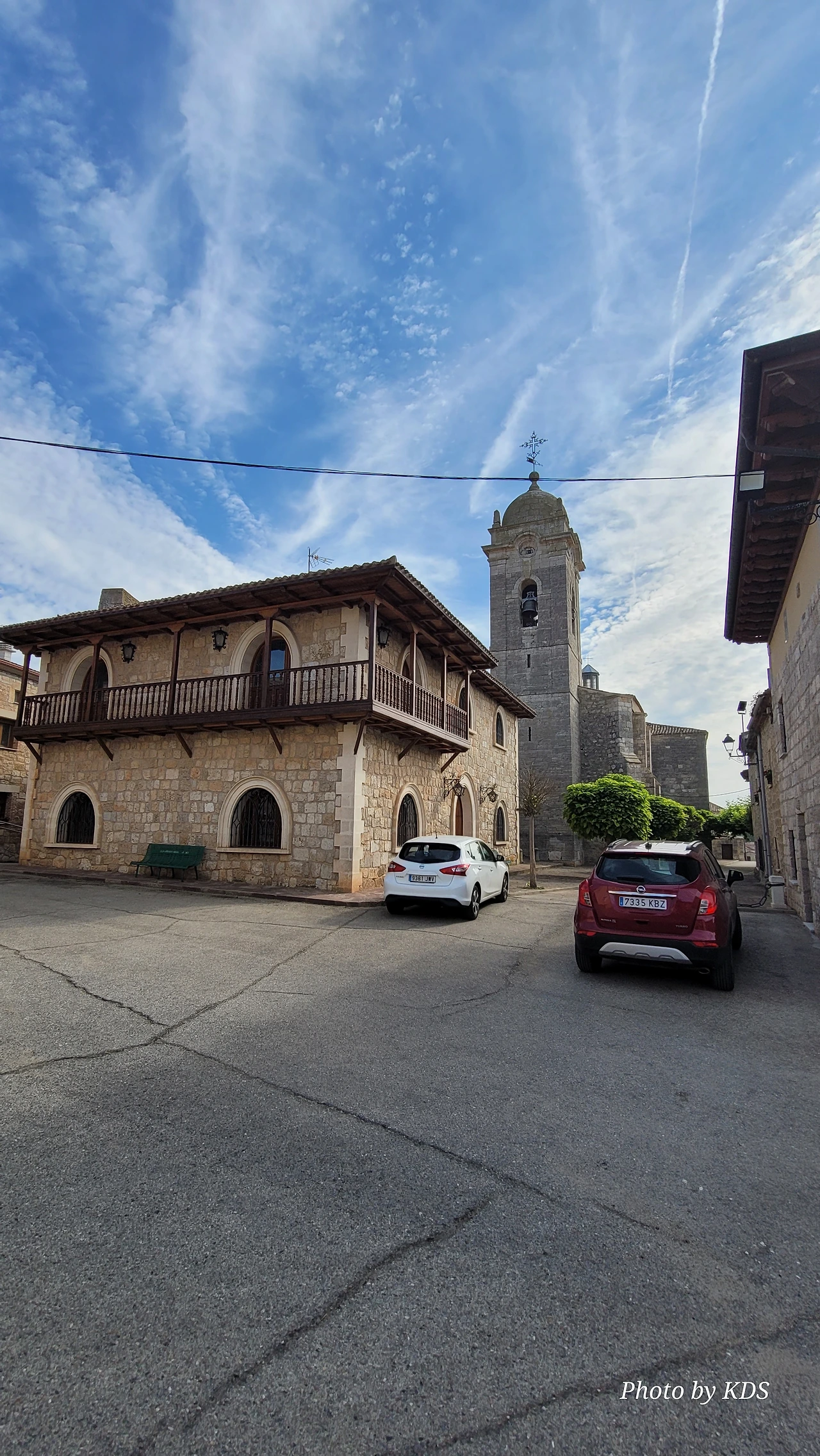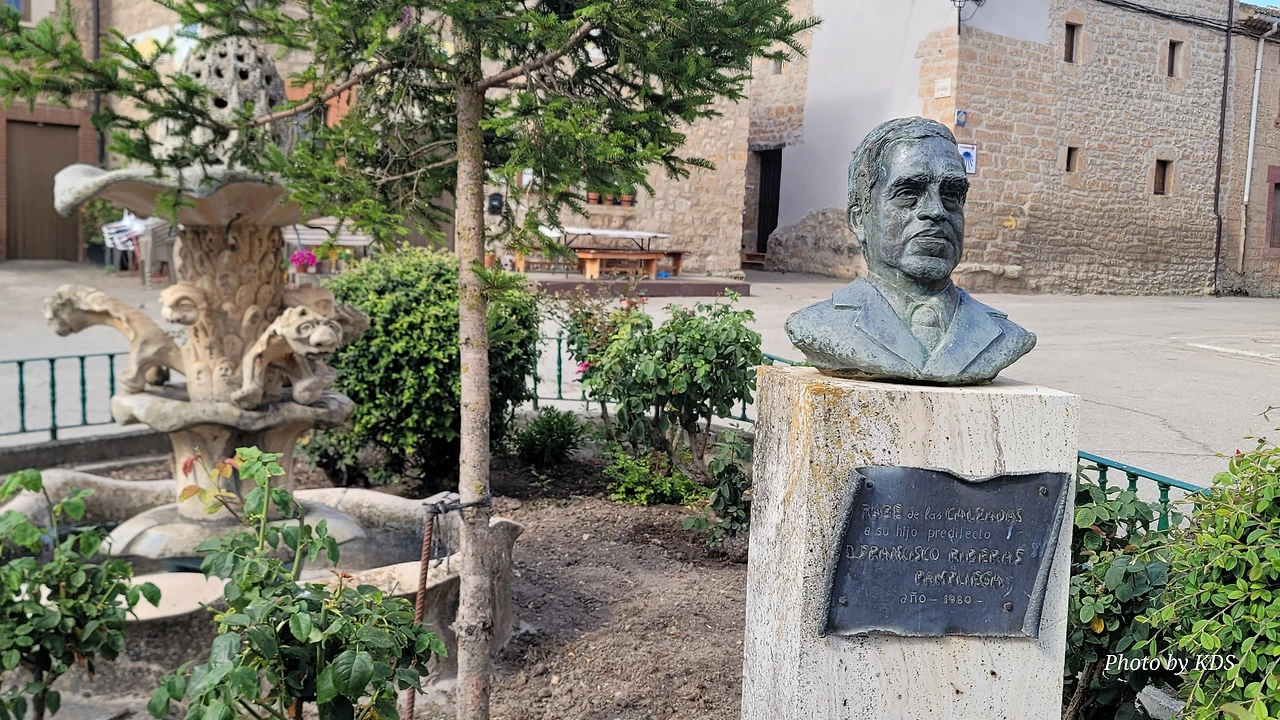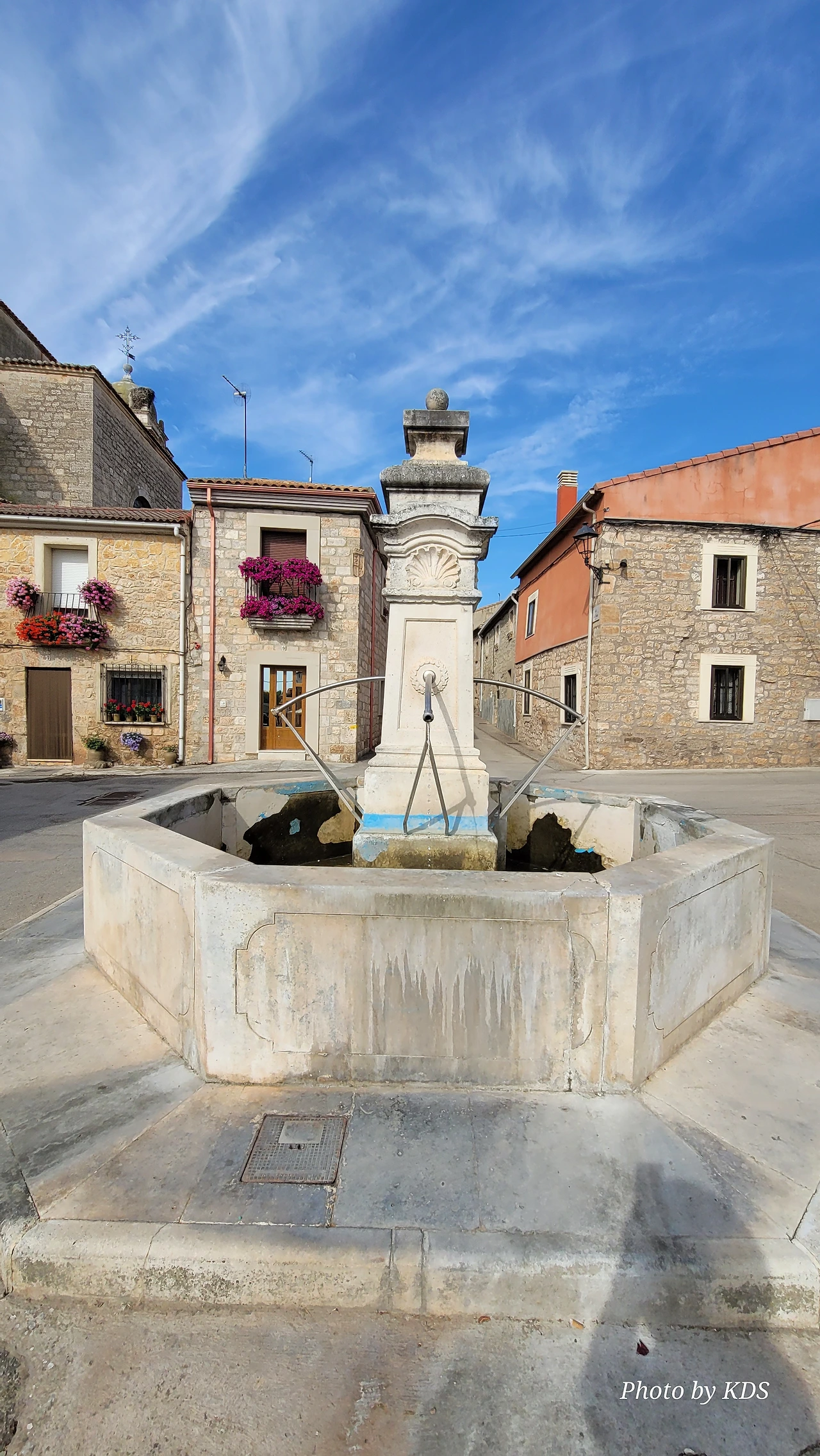 들녘에는 밀을 추수하고 남은 건초 더미가 밭에 놓여있다. 길 옆에는 순례길을 걷다가 먼저 간 이름 모를 사람을 추모하는 초라한 십자가도 있었다. 마을의 각종 순례객을 위한 조형물은 대부분 철판으로 만들어진 것이다. 마을 지도도 철판으로 만들어 놓았다. 조그만 마을에 성당이 두 개나 있었다. 마을의 중앙에 있는 것은 산따 마리나 교구 성당(Iglesia Parroquia de Santa Marina)이다. 이 성당은 13세기에 만들어져서 여러 번 개축되었고, 아직까지 고딕 양식 현관 등이 남아있다. 마을을 빠져나가는 방향에 작고 오래된 성당이 하나 더 있다. 모나스떼리오 성모 성당(Ermita de Nuestra Senora Monasterio)이다. 이 성당에 모나스떼리오 성모상을 보존하고 있다. 마을 중앙 광장에 괴물 모양의 형상을 많이 조각한 석탑이 하나 서 있어서 지나가는 순례객들의 눈길을 사로잡는다.