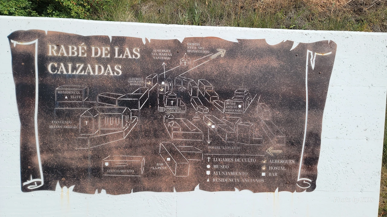 부르고스(Burgos)에서 평원을 12Km가량 걸어서 도달한 마을이 라베 데 라스 깔사다스(Rabe de Las Calzadas)이다. 이 마을은 아를란손 강(Arlanzon Rio)을 끼고 넓은 평원을 가지고 있는 곡창지대에 있다. 마을은 중세 분위기가 확 풍기고, 성당도 상당히 오래되었고, 주변의 나무들도 아주 조경을 잘해 놓았다. 이 마을이 언제부터 생성되었는지는 정확하게 알려지지 않았지만, 마을 이름에 라베(Rabe)라는 단어가 들어 있는 것으로 보아 유대인들이 주로 살았던 곳으로 추정된다. 랍비(Rabi)는 유대교의 스승을 나타내는 단어로 스페인에서 유태인들이 집단 추방 당하기 전에 이곳에 유태인들이 어울려 살았기 때문일 것이다.