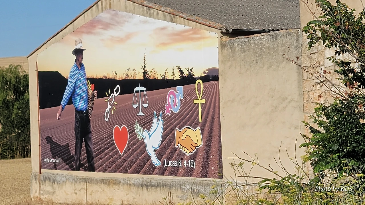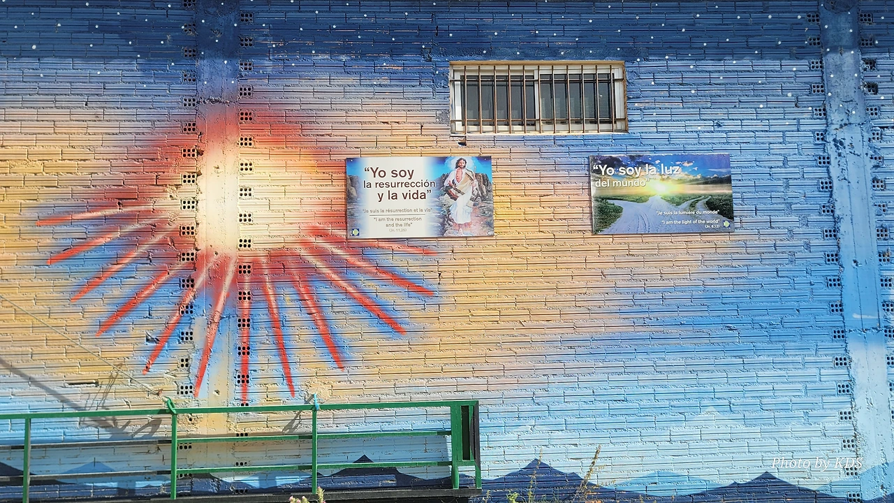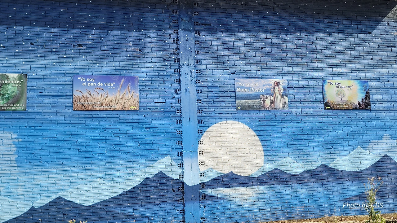 작은 액자들이 나란히 걸려 있다. 밀밭 그림이 있는 액자에는 <나는 삶의 빵이다>라고 쓰여 있다. 다음은 <나는 좋은 목자(牧者)이다>, 그다음은 <나는 나 자신이다>라고 쓰여 있다. 이 마을의 벽화는 상당히 철학적이고 종교적인 것 같다는 느낌이 들었다.