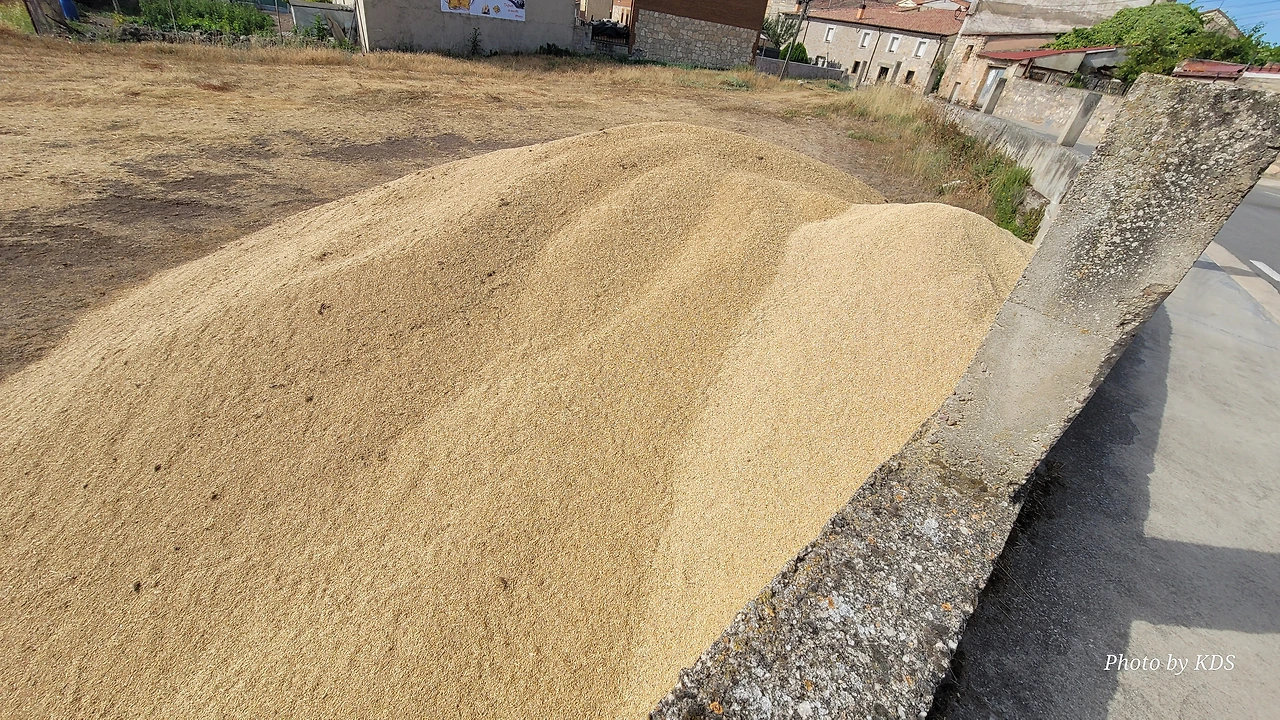 순례길을 걷다가 정말 오랜만에 밀을 수확하는 것을 보았다. 10일을 넘게 걸어도 추수하는 모습을 못 보았는데, 이곳 메세타(Meseta) 구간에 들어서니 길가에 탈곡한 밀과 보리들이 수북하게 쌓인 더미가 많았다. 우리나라 같으면 마당에 멍석을 펼치고 구 위에 쌓아서 말리겠지만 여기는 그냥 밭옆이나 길옆의 공터에 산더미처럼 쌓아 놓았다. 역시 대규모 농업을 영위하니까 농사의 절차도 우리와는 많이 다르다. 그 드넓은 밭에는 농기계 한 대가 열심히 밀을 베고 탈곡을 할 뿐 농부의 모습은 보이지 않는다. 어릴 때 구슬땀을 흘리며 낫을 들고 보리나 밀을 베면서 가스레기에 온몸이 스멀거리는 기억이 아직도 잊히지 않는다. 농사도 이런 정도면 할 만할 것 같았다.