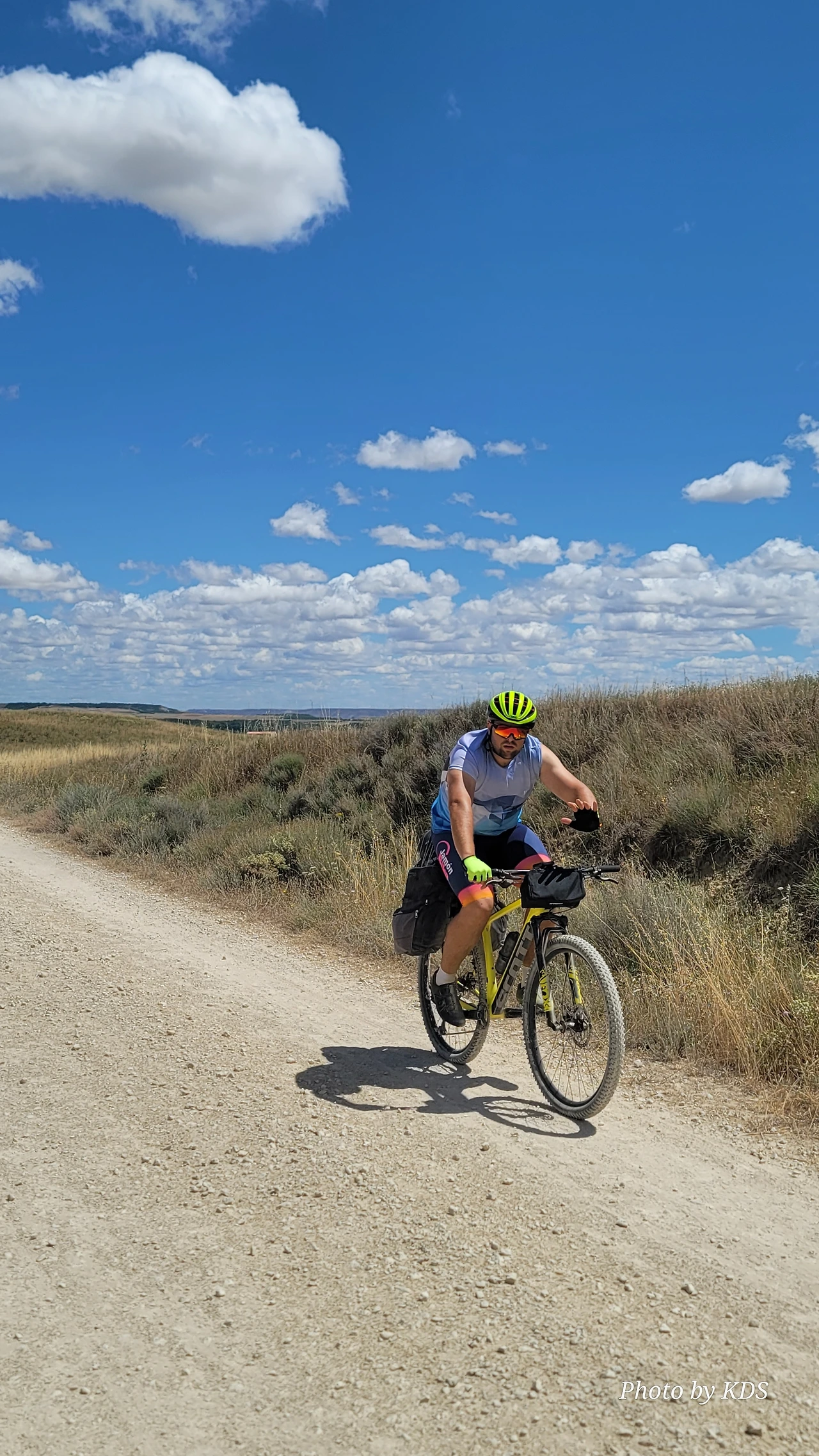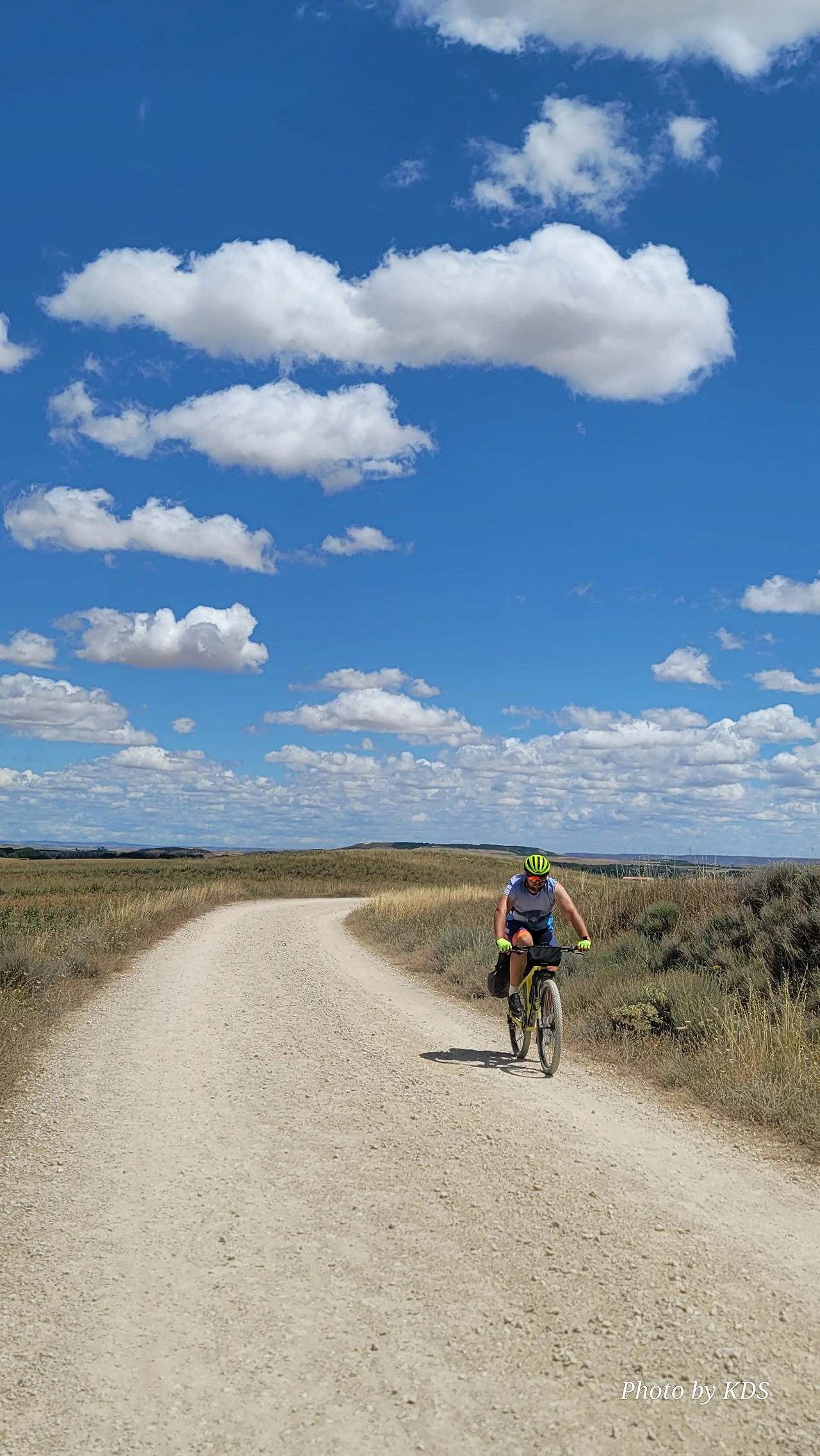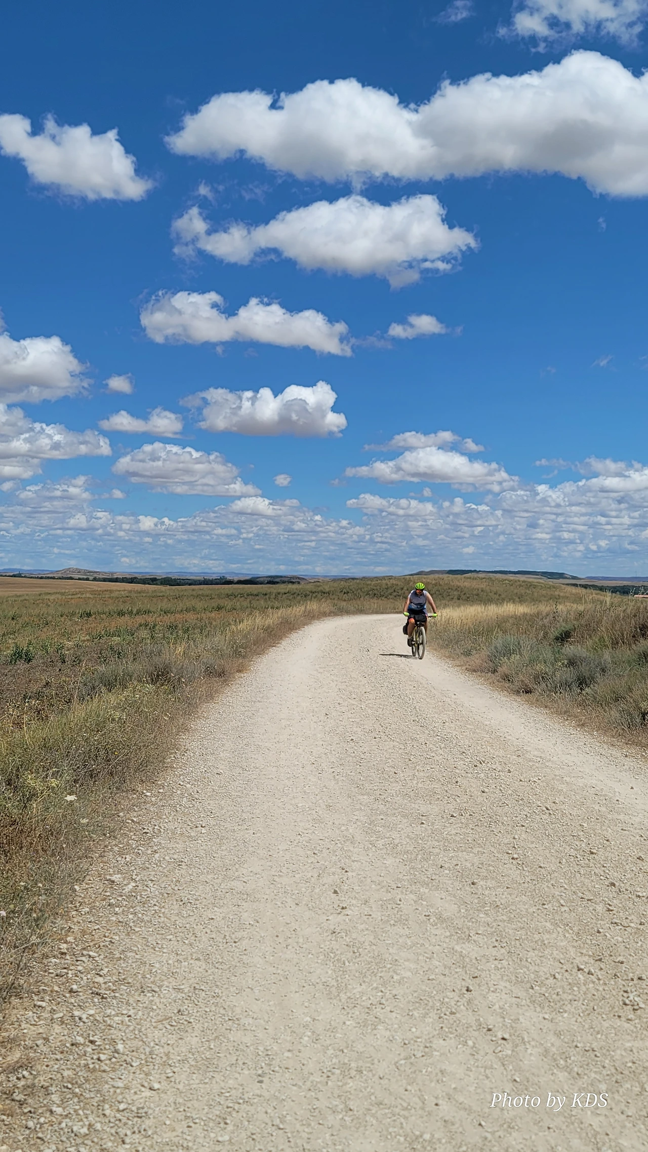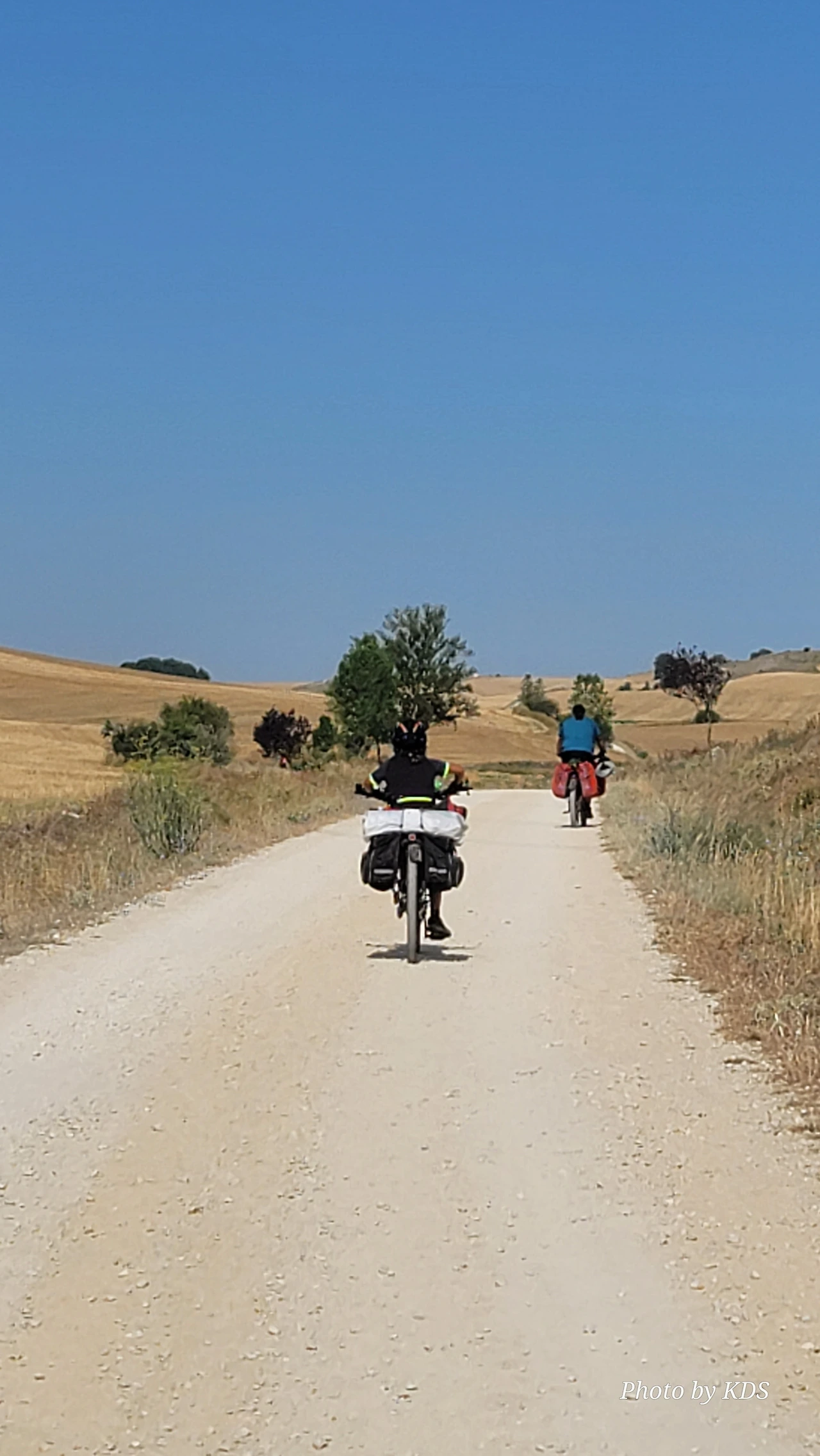 대부분의 순례객들은 무거운 배낭을 메고 두 발로 걷는다. 그런데 좁은 순례길이나 언덕의 내리막길에서 소리 없이 뒤쫓아와서 휙 하고 지나가는 자전거 순례객들로 인하여 깜짝깜짝 놀랄 때가 많다. 특히 산악지대의 좁은 내리막길에선 정말 위험하다. 자전거 순례객들은 모든 짐을 자전거에 실은 산악용 자전거(MTB : Mountain Terrain Bike)로 내달린다. 무거운 무게로 인하여 가속도가 붙으니 아찔한 속력으로 마구 질주한다. 한 명이 아니고 여럿이 일렬로 마구 달리면 건조한 순례길에 흙먼지도 많이 일으킨다. 도보 순례객에는 눈살을 찢푸리게 하는 장면이다. 그래도 터벅터벅 걷는 사람의 입장에서 보면 날쌔게 달려가는 그들이 조금 부럽다. 가끔 자전거의 체인이 끊어져서 쭈그리고 앉아서 그걸 수리하는 것을 볼 때면 오히려 처량한 모습으로도 보인다. 타이어가 펑크가 나도 마찬가지다.