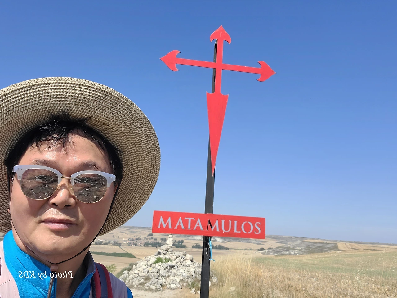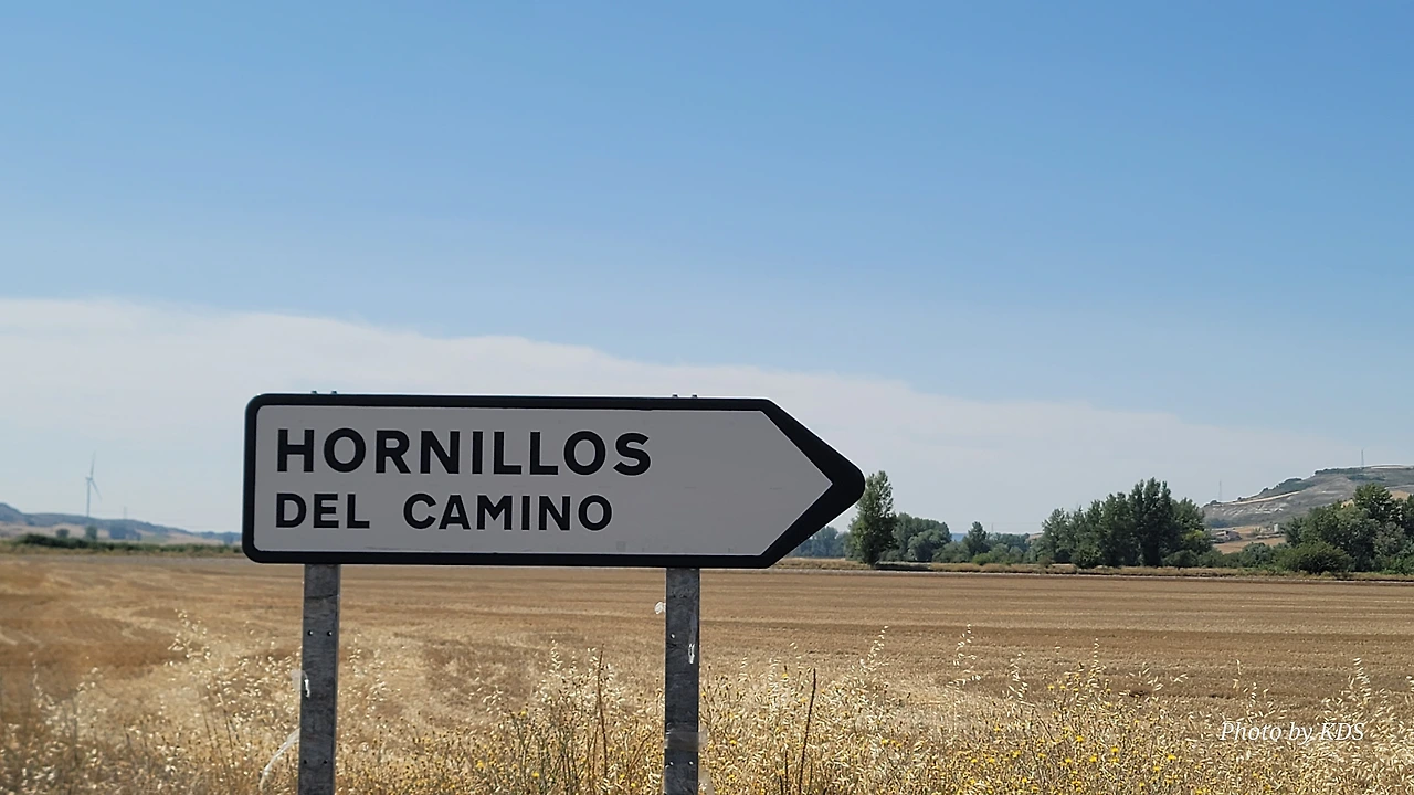 라베 데 라스 깔사다스(Rabe de Las Calzadas) 마을에서 나와서는 약간의 오르막 언덕을 넘어서 8Km 이상을 걸으면 평원에 있는 오르니요스 델 까미노(Hornillos del Camino) 마을에 당도하게 된다. 부르고스(Burgos)에서는 20km 되는 거리이다. 언덕의 정상 부근에 도달하면 마타무로스(Matamulos) 붉은 십자가가 길옆에 서있고, 돌무더기로 만든 돌탑도 있다. 언덕 저 멀리 넓은 평원에 조그만 마을이 아스라이 보인다. 오르니요스 델 까미노 마을은 오래된 전설에 따르면 샤를마뉴 대제가 이곳 강변에서 우연히 오르노(Horno : 화덕)를 발견하고 군대가 먹을 빵을 구우라고 명령했다고 한다. 그래서 마을의 이름에 화덕이라는 스페인어 즉 오르노(Horno)를 붙이게 되었다고 한다. 9세기 이 마을에는 카스티야 지방을 방어하기 위한 요새형 망루를 건축했다고 하며, 당시 이 마을은 포르니에요스(Forniellos)로 불렸다. 이것은 작은 가마라는 뜻으로 타일을 굽는 곳이라는 뜻이다. 그런 화덕이 남아 있다가 샤를마뉴에게 발견되어서 마을 이름이 변경되었을 것이다.