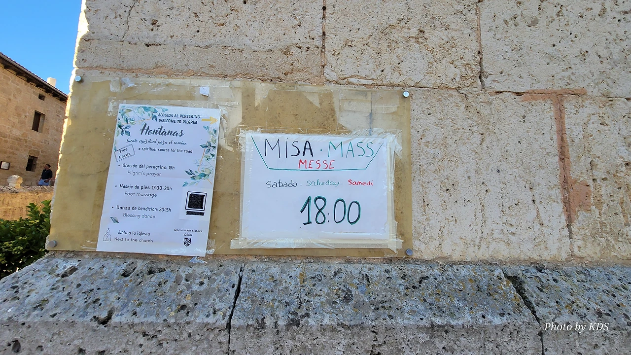 이 마을에는 꼰셉시온 성모 성당(Iglesia de Nuestra Senora Concepcion)이 있다. 신고전주의 양식으로 만들어졌으며 바로크 양식 봉헌화가 아름답다. 두부모 자르듯이 매끈한 벽돌로 짜임새 있게 지어졌다. 순례자들을 위한 미사가 토요일 저녁 6시에 열린다. 발 마사지도 해주고, 춤을 추는 시간도 있다고 한다. 미사가 끝나면 커피와 쿠키도 제공한다고 했다, 봉헌화가 있는 벽면에는 마틴 루터, 달리 라마, 테레사 수녀, 성 프란시스 등 다양한 세계 영적 지도자들의 사진이나 그림이 눈에 띄게 걸려 있었다. 그리고 다양한 나라 언어로 된 성경책이 비치되어 있어서 세계 각국에서 온 순례객들이 자기 나라의 언어로 된 성경을 거지고 미사에 참여할 수 있도록 배려해 두었다. 순례길 어디에서도 볼 수 없던 광경이었다.