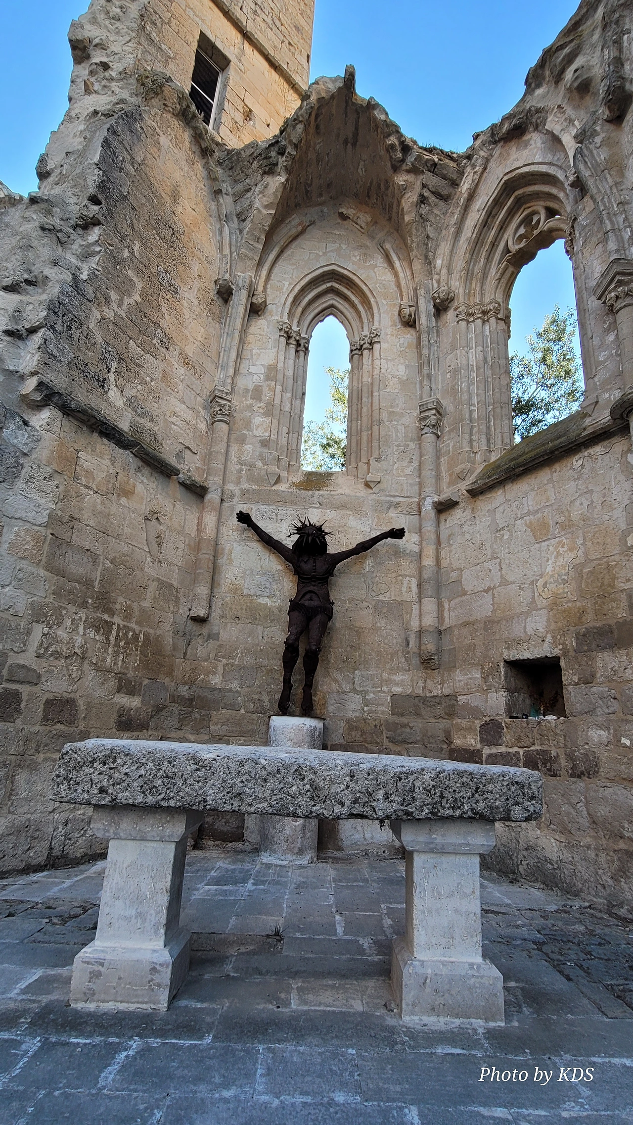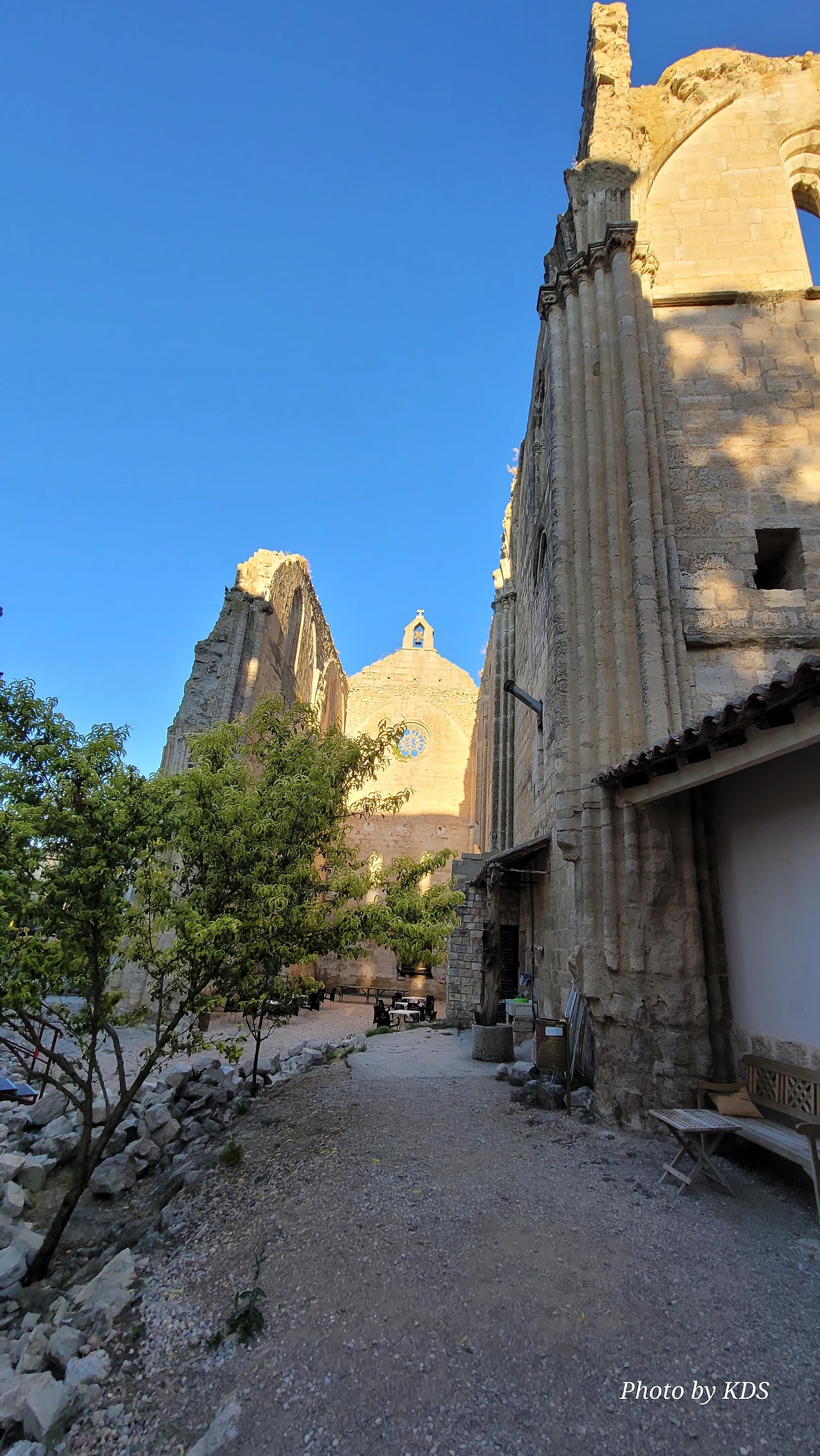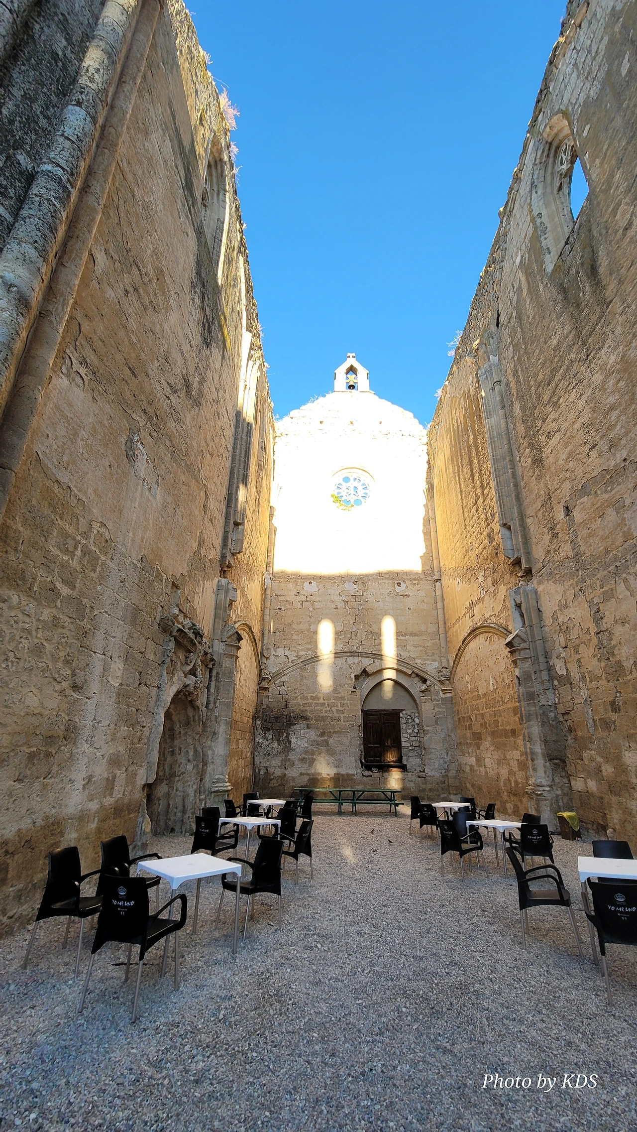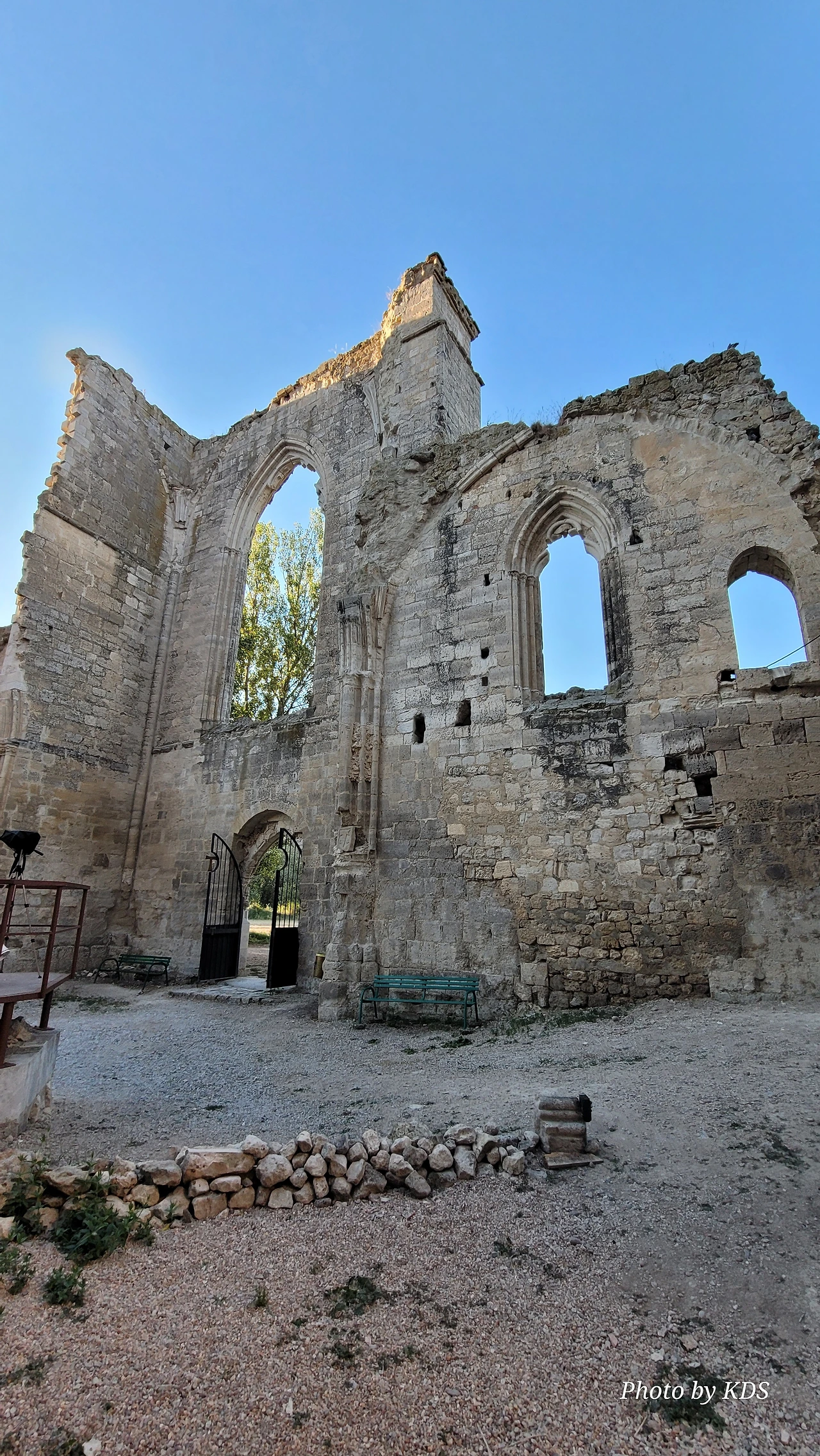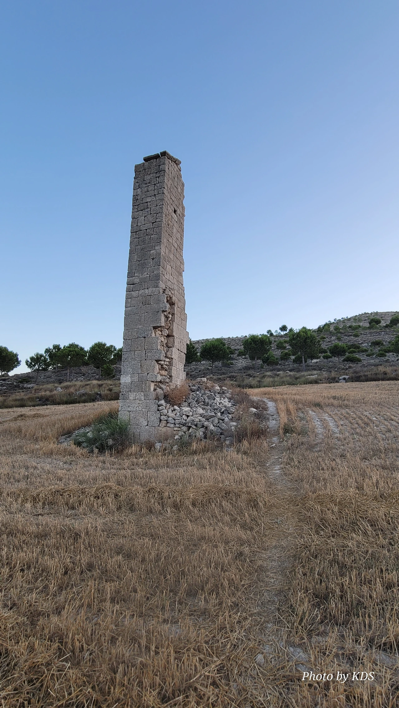 온타나스(Hontanas)에서 즐거운 밤을 보내고 7월 29일 아침 6시 40분경에 숙소를 나섰다. 오늘도 평원을 가로 딜러 걷는 길이다. 마을을 빠져나와서 가르반수엘라 시내(Arroyo de Garbanzuela)를 건너서 약간의 오르막 지대를 올라간다. 언덕의 중간쯤에 거대한 석탑 모양이 눈에 들어온다. 가까이 다가가서 보니 석탑이 아니고 허물어진 유적의 일부였다. 바로 산 비센떼 성당(Ermita de San Vicente)의 유적이다. 까스뜨로헤리스(Castrojeriz) 마을로 향하는 언덕 기슭 까미노의 오른쪽으로 서있는 건축물로 현재는 모퉁이의 벽체만 남은 유적이었다. 과거 순례길이 번창하였을 때 있었던 성당인데 이제 그 잔해만 남아 옛 영광을 기록하고 있다. 성당의 집터와 주변의 돌담은 아직도 남아 있었다. 나머지는 모두 농경지로 변했다. 벽체의 남은 부분이 곧 쓸러 질까 위태위태한 모습으로 서 있어서 조선 과객이 보기에 안타까운 모습이다.
