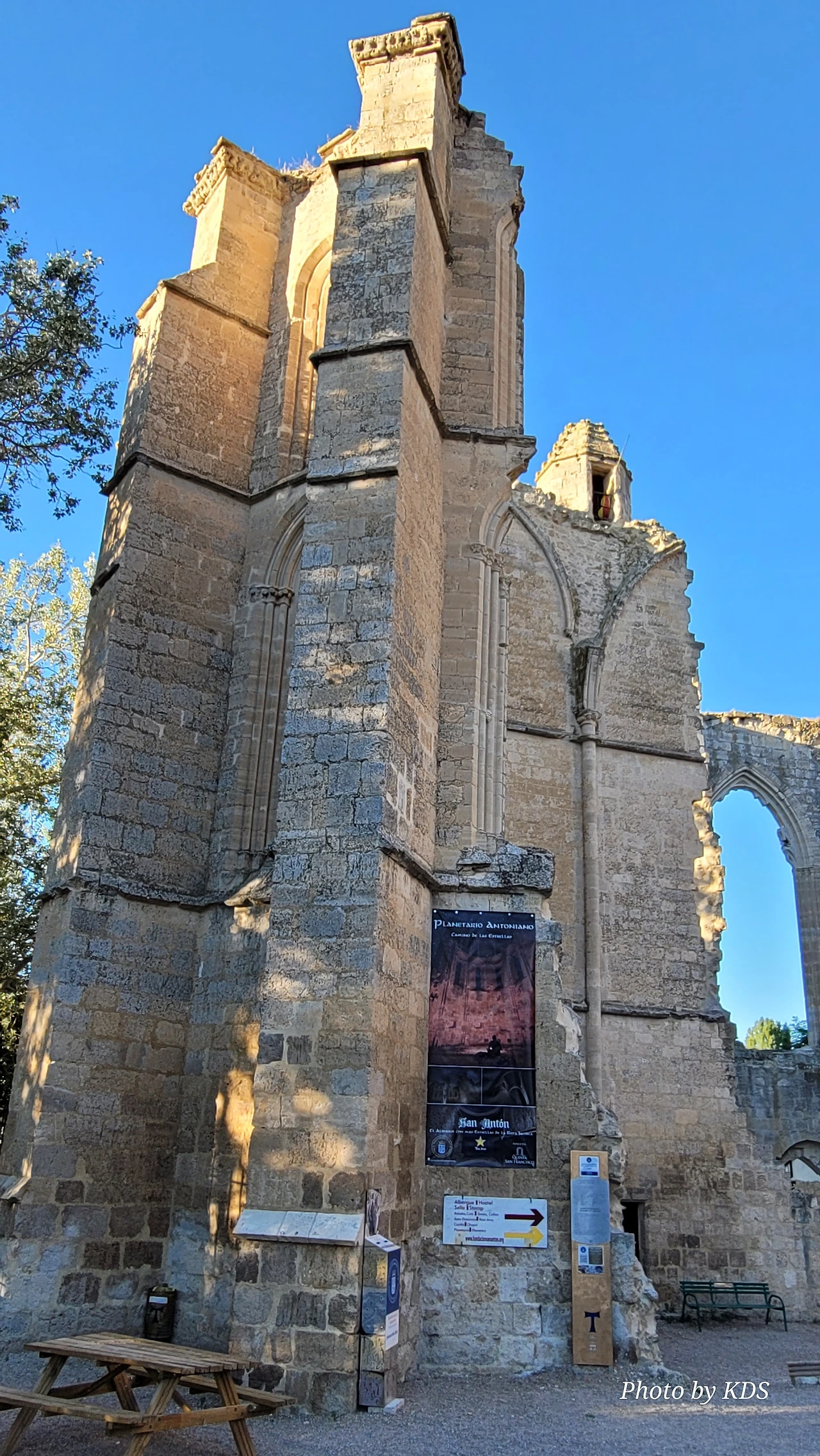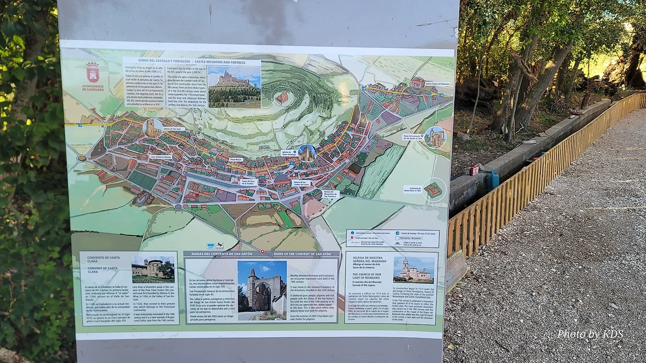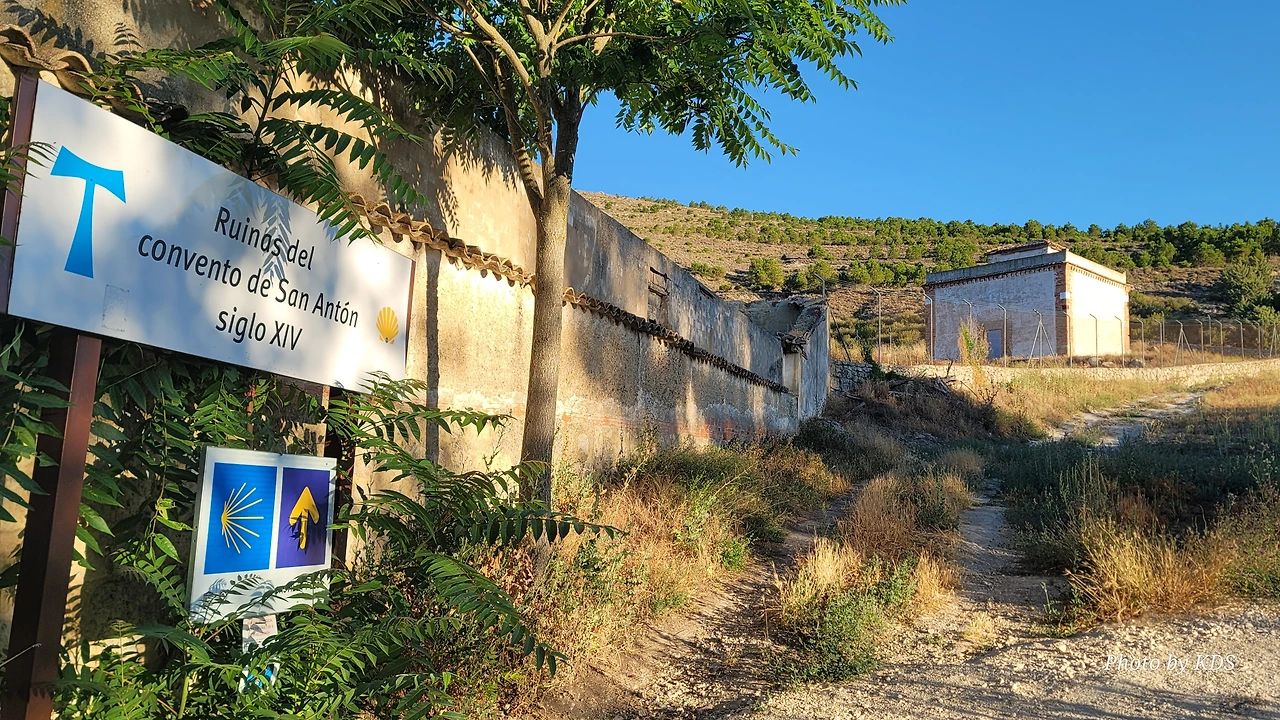 온타나스에서 7kM가량을 걸어오면 산 안톤 수도원(Convento de San Anton)의 유적이 웅장하게 서 있다. 이 유적은 1146년 알폰소 7세(Alfonso VII) 왕이 이곳에 병원 설립을 허가하였고, 1093년 프랑스 귀족 가스톤(Gaston)과 게랭 드 발루아르(Guérin de Valloire)에 의해 설립된 안토니안 기사단의 구성원들이 수도원과 대규모 병원을 건설했다. 병원은 카스티야 왕조와 포르투갈의 여러 왕국에 있는 성 아콘니우스 총사령부의 본부였으며, 20개가 넘는 종속 군령(가옥, 수도원, 병원)이 있었기 때문에 당시 매우 중요한 거점이었다. 13~14세기에 만들어진 이 건물들의 일부가 보존되어 있으며, 이 중 첨두아치형 문과 순례자들이 밑으로 지나가도록 되어 있는 커다란 아치가 돋보인다. 남아있는 유적들의 규모를 보아서 당시의 성대했음을 짐직할 수 있다. 이 수도원장의 원장으로 알려진 성 안톤은 기독교 금욕주의자였으며, 그의 생애는 성 아타나시우스가 기록했다. 그는 이집트의 부유한 가정에서 태어났다. 나중에 그는 재산을 팔고 은둔자가 되었다. 그의 유물은 오랫동안 알렉산드리아에 보관되었다가 콘스탄티노플로 옮겨졌다가 마침내 프랑스로 인도되었다.