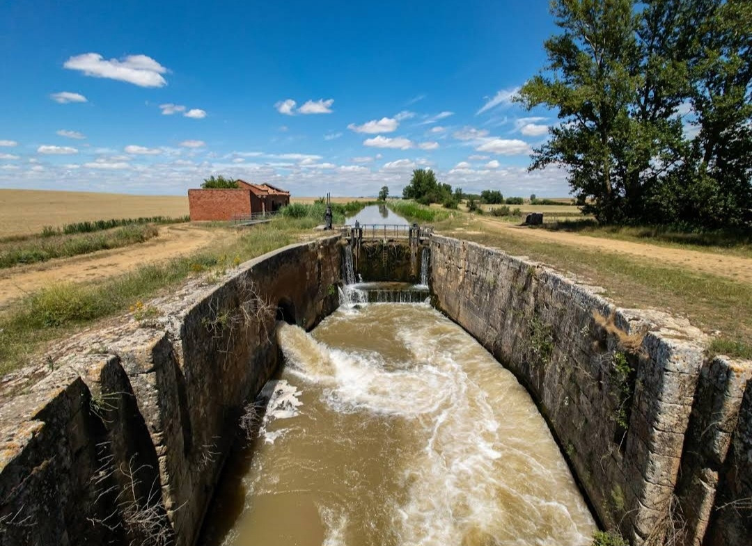 이 카스띠야 운하는 이곳 곡창지대의 곡물을 스페인의 북쪽에 있는 산탄데르(Santander) 항구로 이동하기 위한 운송로의 목적으로 건설되었다. 1753년 페르난도(Ferdinand) 6세의 통치 기간 중에 엔세나다(Ensenada) 후작에 의해 400Km의 계획으로 건설이 시작되었다. 그러나 완공을 보지 못하고, 스페인 독립전쟁, 예산 제약, 북쪽 칸타브리아 산맥의 통과 등 많은 제약 조건으로 결국 초기 계획을 축소시켜 1849년 207Km만 완공하게 되었다. 그것 만으로도 건설에 거의 100년이 걸렸고, 19세기에 북부 스페인 철도가 건설되어 결국 영원히 중단되었다. 이 운하는 1850년에서 1870년 사이에 가장 많이 사용되었는데, 당시 최대 400척의 바지선이 짐을 날았다고 한다. 나중에 운하는 운송 수단으로써 철도 화물에 비해 상대적인 비효율성과 느림으로 인해 이 운하는 거대한 관개 시스템의 중추로 발전했다. 운하의 큰 그림은 'Y' 자를 역방향으로 세운 모양으로, 팔렌시아(Palencia) 지역의 알라르 델 레이(Alar del Rey)와 바야돌리드(Valadolid) 지역의 메디나 데 리오세코(Medina de Rioseco), 부르고스(Burgos) 주의 산 요렌테 데 라 베가(San Llorente de la Vega)를 연결한다. 운하의 폭은 11m에서 22m 사이, 깊이는 1.8m에서 3m 사이이며, 이 주변 지역을 거미줄처럼 연결하고 있다. 1991년에 스페인의 비엔 데 인테레스(Bien de Interes) 문화유산으로 지정되었고, 지금도 48개 자방자치 단체에 물을 공급하고 있다. 이런 운하가 이처럼 고원 곡창 지대의 젖줄의 역할을 하고 있었다.