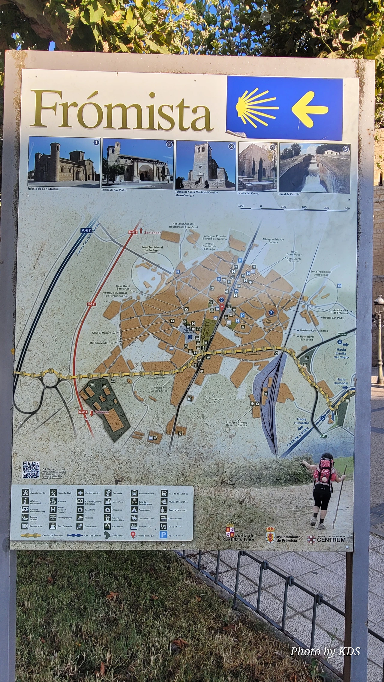 간단하게 요기를 한 후에 마을의 가까운 곳을 둘러보았다. 이 마을은 옛날부터 치즈가 유명했다고 한다. 알폰소 12세 시절에 왕실에 치즈를 공급하여 왕가의 치즈로 불리기도 했단다. 지금은 그 당시 치즈 공장을 개조하여 La VentanBoffard 레스토랑으로 운영하고 있었다. 마을에는 세 개의 제법 큰 성당이었다. 하나는 산 마르띤 성당(Iglesia de San Martin)으로 11세기 로마네스크 양식 성당이며 가장 순수하고 완벽한 로마네스크 양식의 좋은 예라고 한다. 늘씬한 탑과 문, 아치, 상징적인 의미를 갖고 있는 당나귀, 음악가, 곡예사, 여러 얼굴 등 각각 다른 장식이 되어 있는 주두와 300개가 넘는 추녀 받침이 독특하다. 또한 성당 내부에는 식물, 동물, 복잡한 장식이 새겨진 주두가 있으며 13세기의 십자가상과 조각상들이 있다. 또 16세기에 만들어졌으며 1944년 스페인 문화 자산으로 지정된 까스띠요의 성모 성당(Iglesia de Nuestra Senora del Castillo)이 있으며, 산 뻬드로 성당(Iglesia de San Pedro)은 15세기에 건축되었고, 고딕 양식으로 성당 안에 봉헌화 작품이 많이 소장되어 있다고 한다. 전설에 따르면 산 마르틴 성당에는 기적을 일으키는 성체의 접시가 보관되어 있다고 한다. 어느 날 화재가 일어나 산 마르띤 성당에 딸려있는 순례자 병원이 불에 타버렸다. 병원의 재건축을 맡은 사람이 건축에 필요한 비용이 없어서 자금을 유대인에게 빌렸고 그 돈으로 병원을 다시 지을 수 있었다. 그런데 약속한 날짜가 다가왔지만 그는 돈을 갚을 수 없자 그는 또 몰래 다른 곳에서 돈을 빌려 유대인의 돈을 갚았다. 그 후 세월이 흘러 그가 죽을 때가 다가오자 그는 종부 성사를 받고 성체를 모시고자 했으나 성체가 접시에 붙어서 떨어지지 않았단다. 그가 병원을 짓기 위해 두 번이나 돈을 빌린 것을 고백하지 않아서 그런 거다. 그래서 고백을 하고 용서를 구하자 마침내 성체를 모실 수 있게 되어 평화롭게 잠들 수 있었다고 하는 전설이다. 또 이 마을에는 비록 규모는 작지만 와이너리도 있다. 보데가 사르사비야 와이너리(Bodegas Zarzavilla)인데 평소에는 넓은 정원에서 야외 결혼식 장소로 많이 활용되곤 한단다.