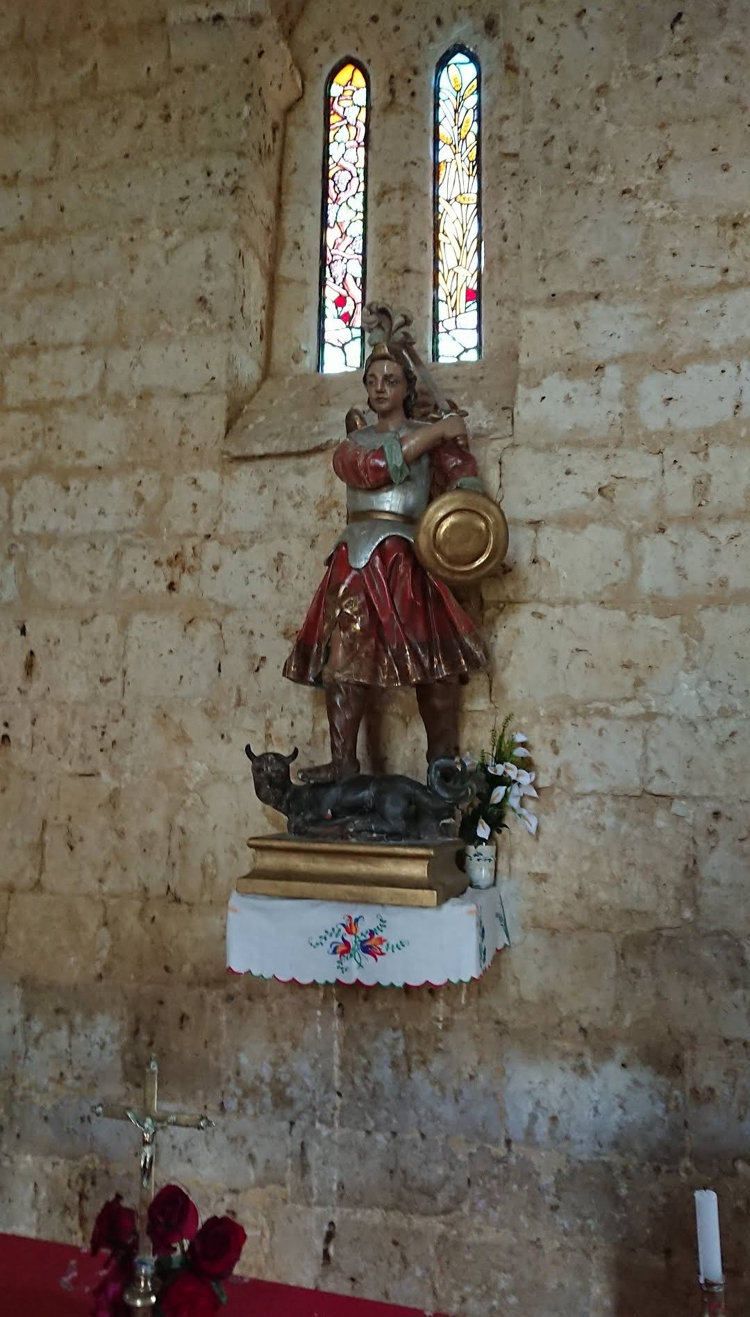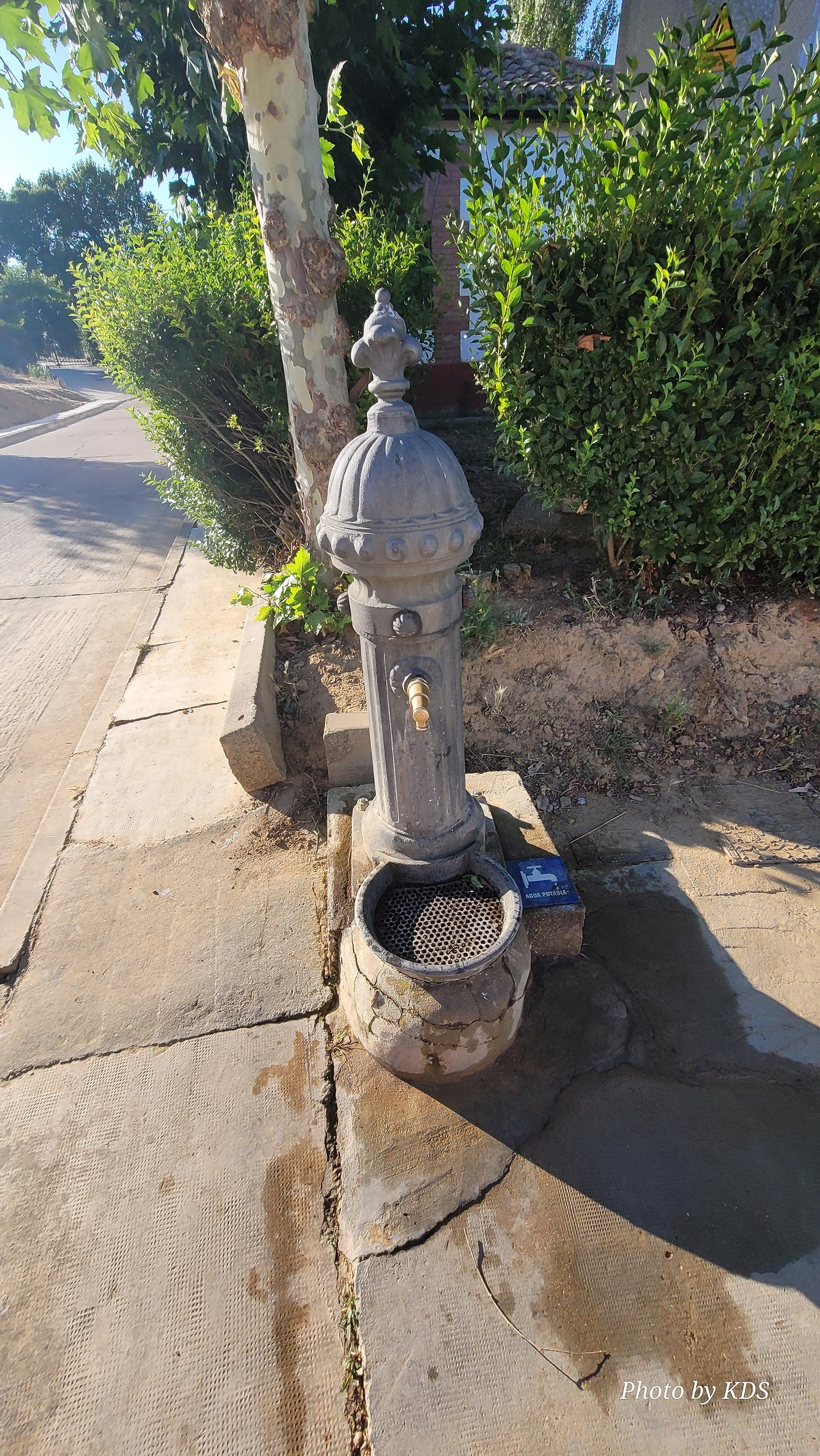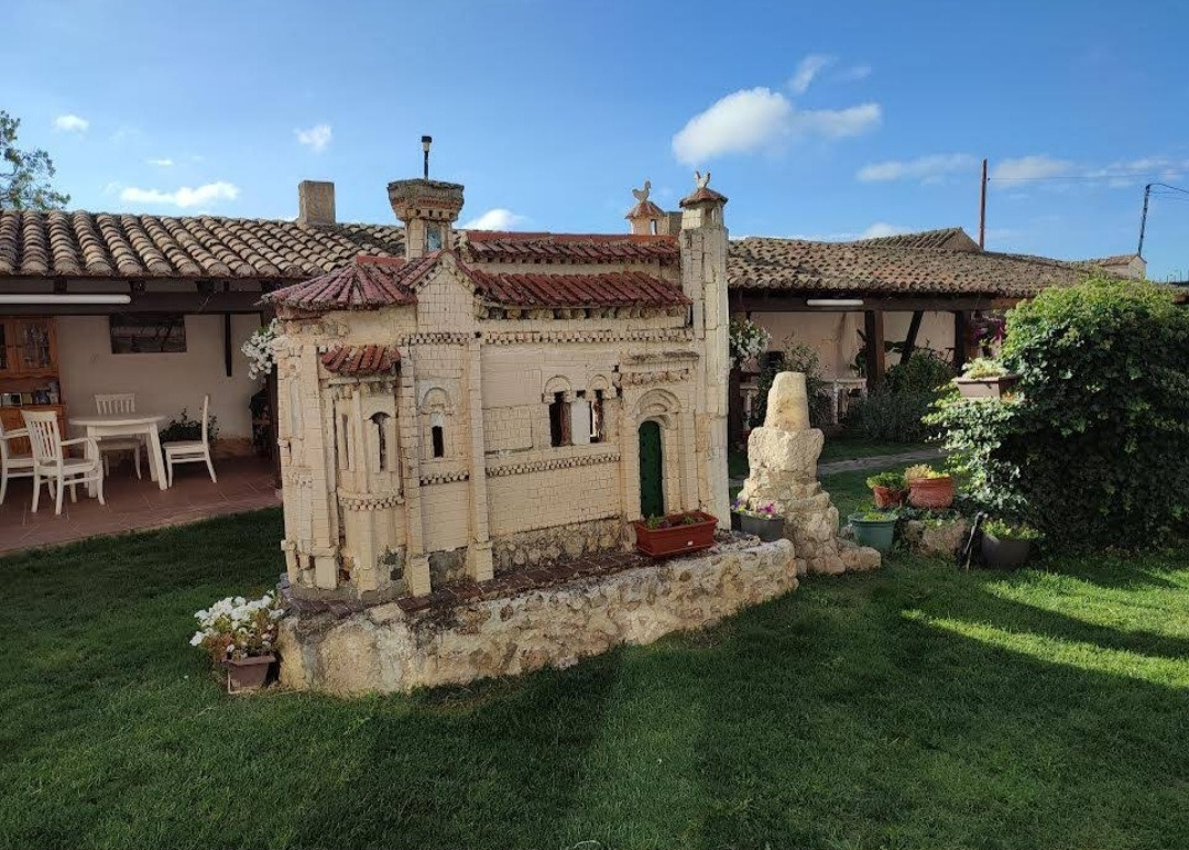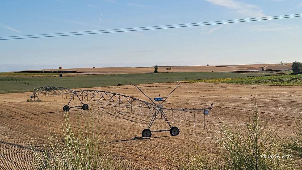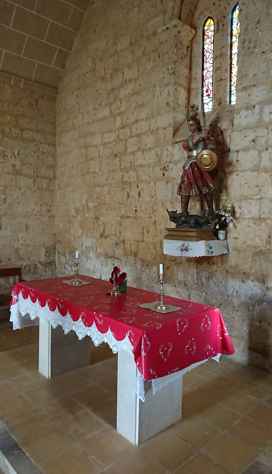 프로미스타(Fromista)에서 약 4Km가량 걸어오면 뽀블라시온 데 캄뽀스(Poblacion de Campos) 마을에 당도하게 되는데, 걷는 길은 아주 평이한 벌판이다. 밀밭이 주류를 이루고 있다. 마을 입구에는 오래된 작은 성당이 나무 숲 속에 아담하게 자리 잡고 있다. 이것이 바로 산 미겔 소성당(Ermita de San Miguel)이다. 13세기 로마네스크 양식에 초기 고딕 양식이 첨가되어 건축되었다. 내부에는 기사도 복장을 한 조형물이 설치되어 있다. 이 나무 숲에는 순례자들의 쉼터도 갖추어져 있다. 아래 사진의 바퀴가 달린 커다란 철 구조물은 밀밭이나 옥수수 밭에 물을 뿌리는 스프링 쿨러 시설이다.