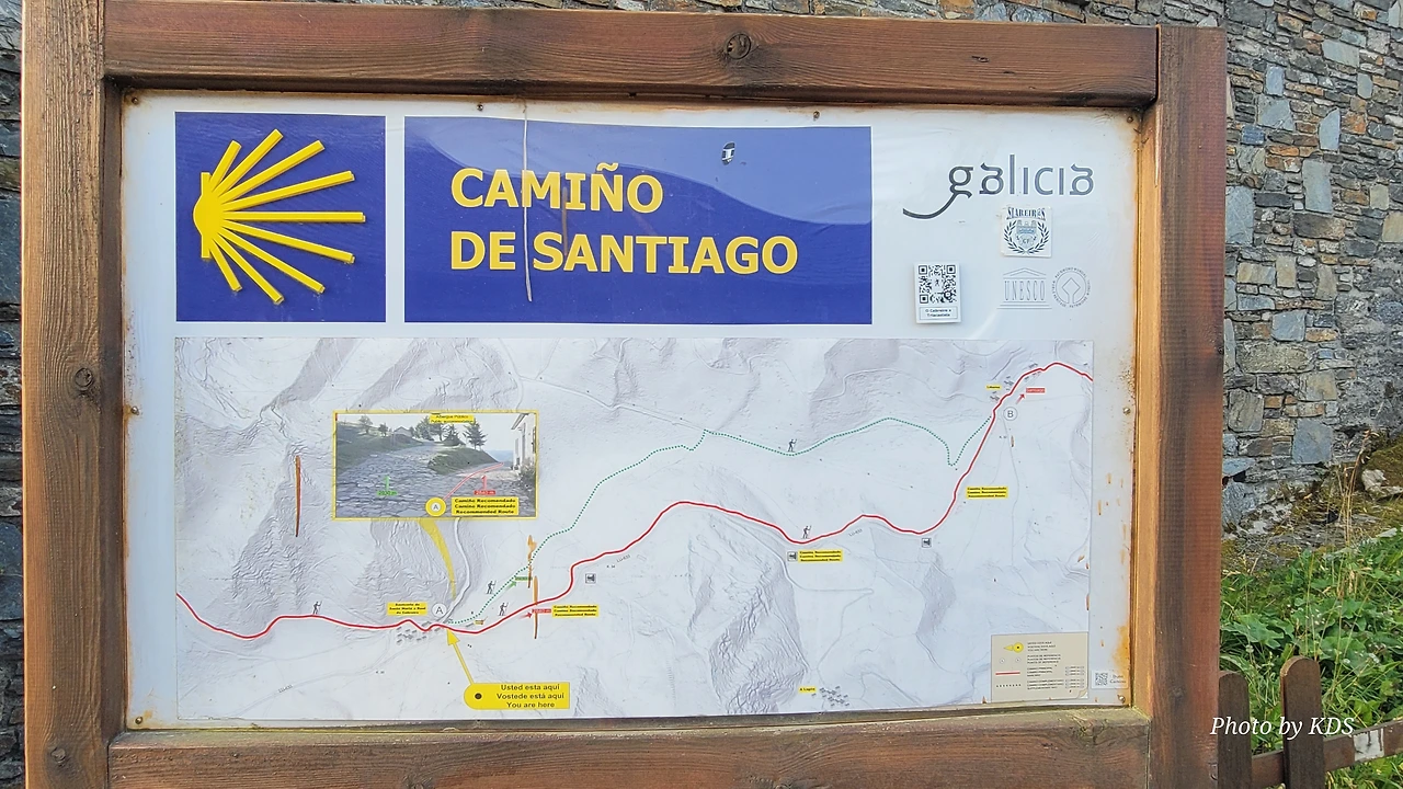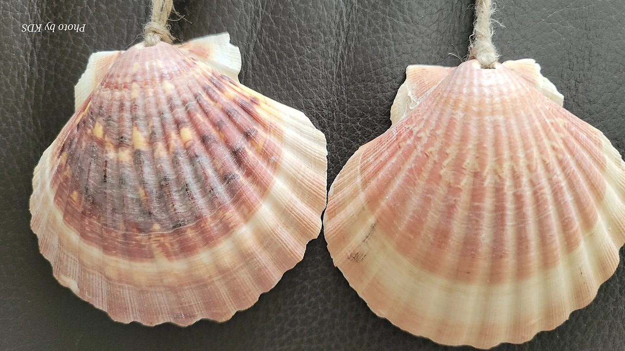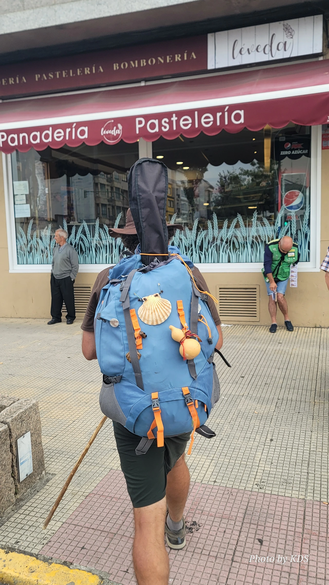 천 년의 세월 동안 무수한 순례자들이 조개껍질을 매달고 이 길을 걸었으리라. 정확히 우리말로 하면 조개 중에 가리비 껍데기이다. 왜 이것을 매달고 길을 걸을까? 그 이유에 대해서는 두 가지의 전설이 있는데, 어느 것이 진실인지 확인 불가하다. 첫 번째 전설은 성 야고보의 시신과 관련된 것이다. 야고보는 요한의 형으로 예수의 열두 제자에 속한다. 야고보는 성질이 우직하고 직선적이어서 예수가 복음을 땅끝까지 전도하라고 하자, 예수 사후에 이를 실천하기 위해서 행동했다. 예루살렘이나 로마에서 전도 구역 넓혀 땅끝까지 가는 방법이 아니라 처음부터 땅끝에서 시작하는 방법이다. 그야말로 단순 우직한 방법이다. 그는 지중해를 출발해서 지브롤터 해협을 지나 대서양을 돌아 이베리아 반도의 땅끝 마을에 도착하여 전도를 하였다. 그러다가 성모 마리아의 임종 소식을 듣고 다시 돌아왔다가 예루살렘의 헤롯 아그리파스왕에게 예수의 제자 중 최초로 순교하였다. 그의 시신은 제자들에 의해 돌로 만든 배에 실려져서 처음 전도를 떠났던 길을 따라 산티아고 콤포스텔라 근처의 연안으로 이동했다. 그때 돌로 만든 배와 시신에 가리비가 잔뜩 달라붙어 있어서 시신이 조금도 손상되지 않아서 거기에서 장례를 치렀다. 그 후 스페인의 대부분 국토가 무어인의 이슬람교도들에게 점령되어 있을 때, 9세기경 기적적으로 하늘의 별빛이 그의 무덤 있는 곳을 계시해 주었다. 그래서 그의 시신을 찾고, 알폰소 국왕이 그 묘지위에 산티아고 성당을 세워서 지금의 산티아고 콤포스텔라가 되었다. 그리고 역사적으로 스페인이 이슬람을 물리치는 전쟁에서 야고보의 기적이 가끔 일어나서 전승을 거두게 되자 성 야고보는 스페인의 수호신이 되었다. 당시 유럽의 여러 나라 신도들이 예루살렘이나 로마로 순례여행을 하기가 위험하고 힘드니까 이곳으로 모이게 되어서 천년의 세월 동안 이어지고 있는 것이다. 그래서 가리비가 야고보 성인 순례길의 상징물이 된 것이다. 12세기에 발행된 순례길의 안내서인 <칼릭스티누스 고사본(Codex Calixtinus)>에도 야고보 성인이 들고 있는 깃발과 주변에 가리비 껍데기 그림이 별처럼 흩어져 있다.