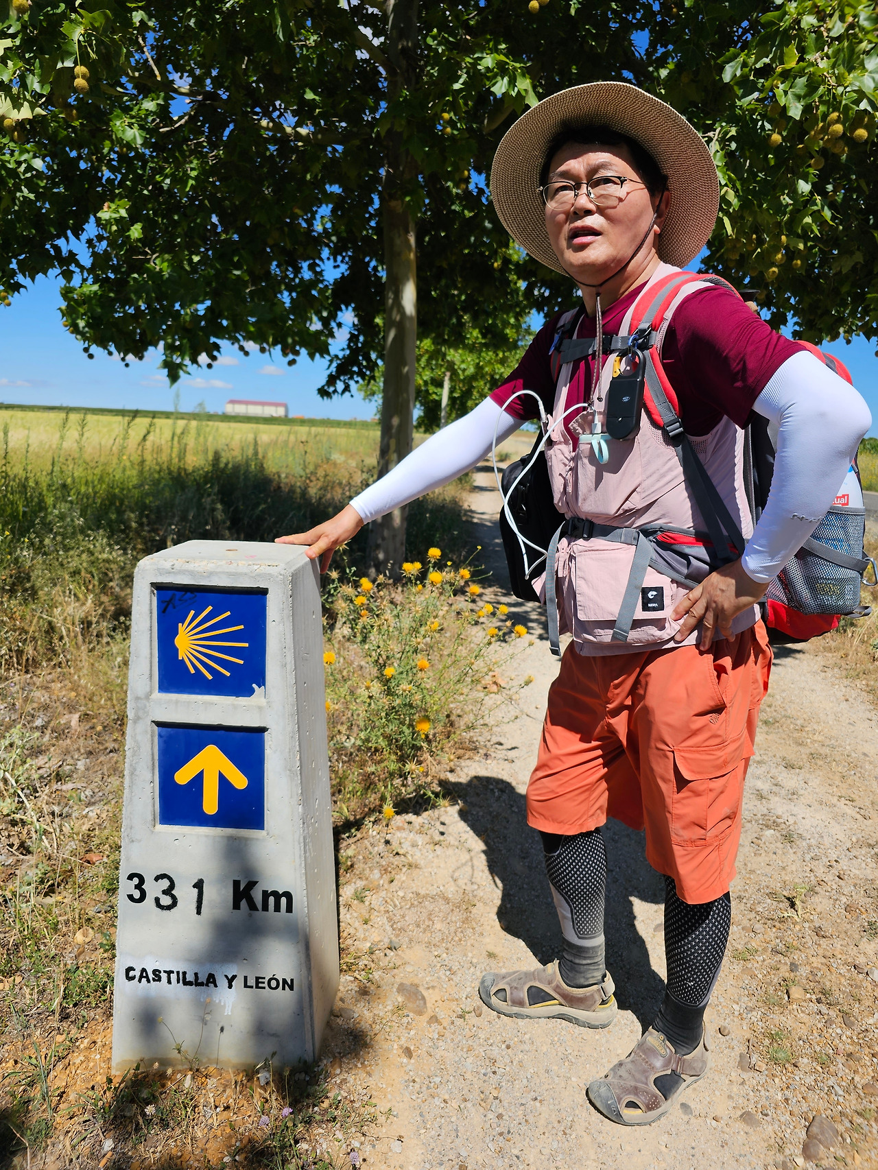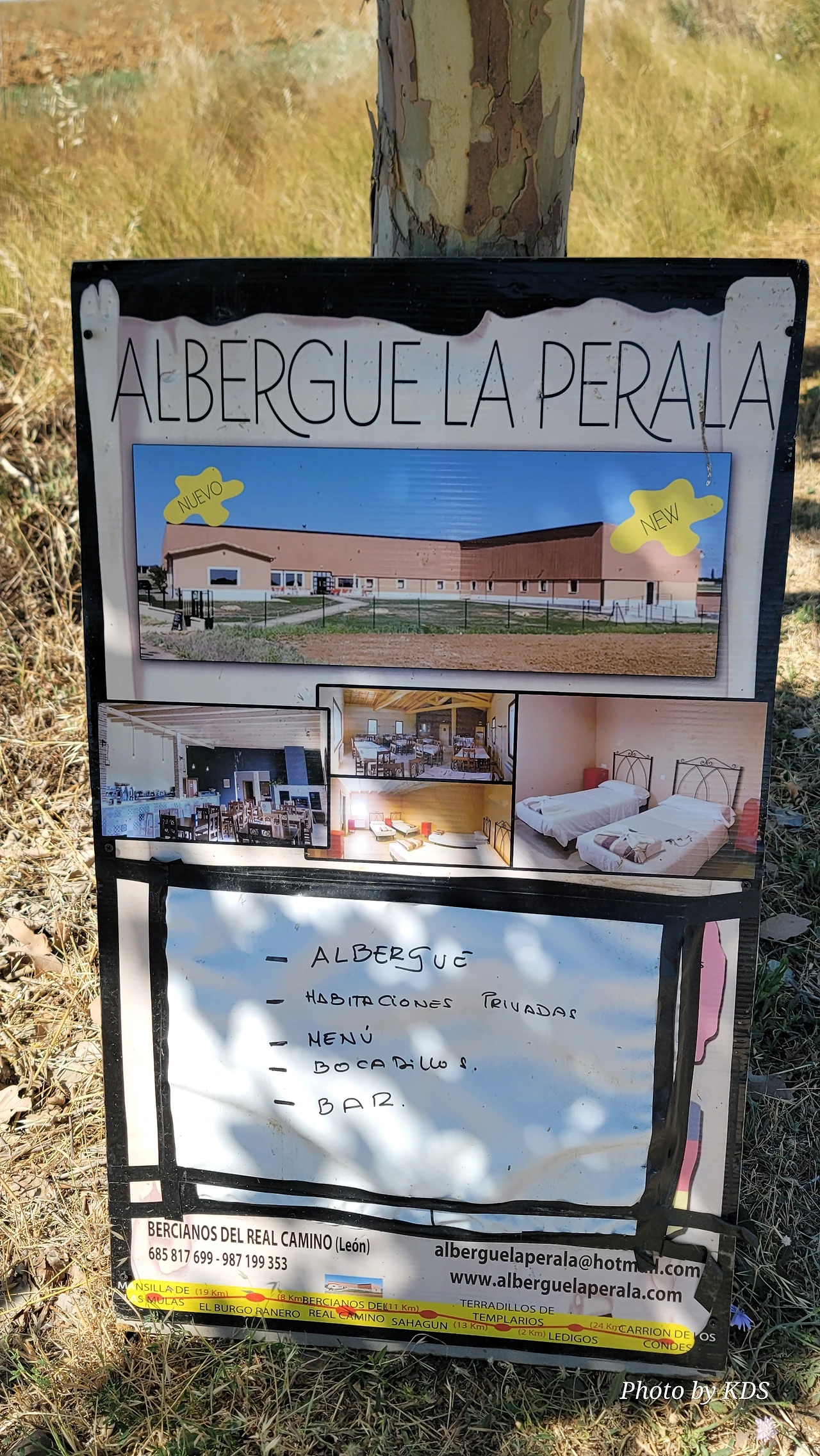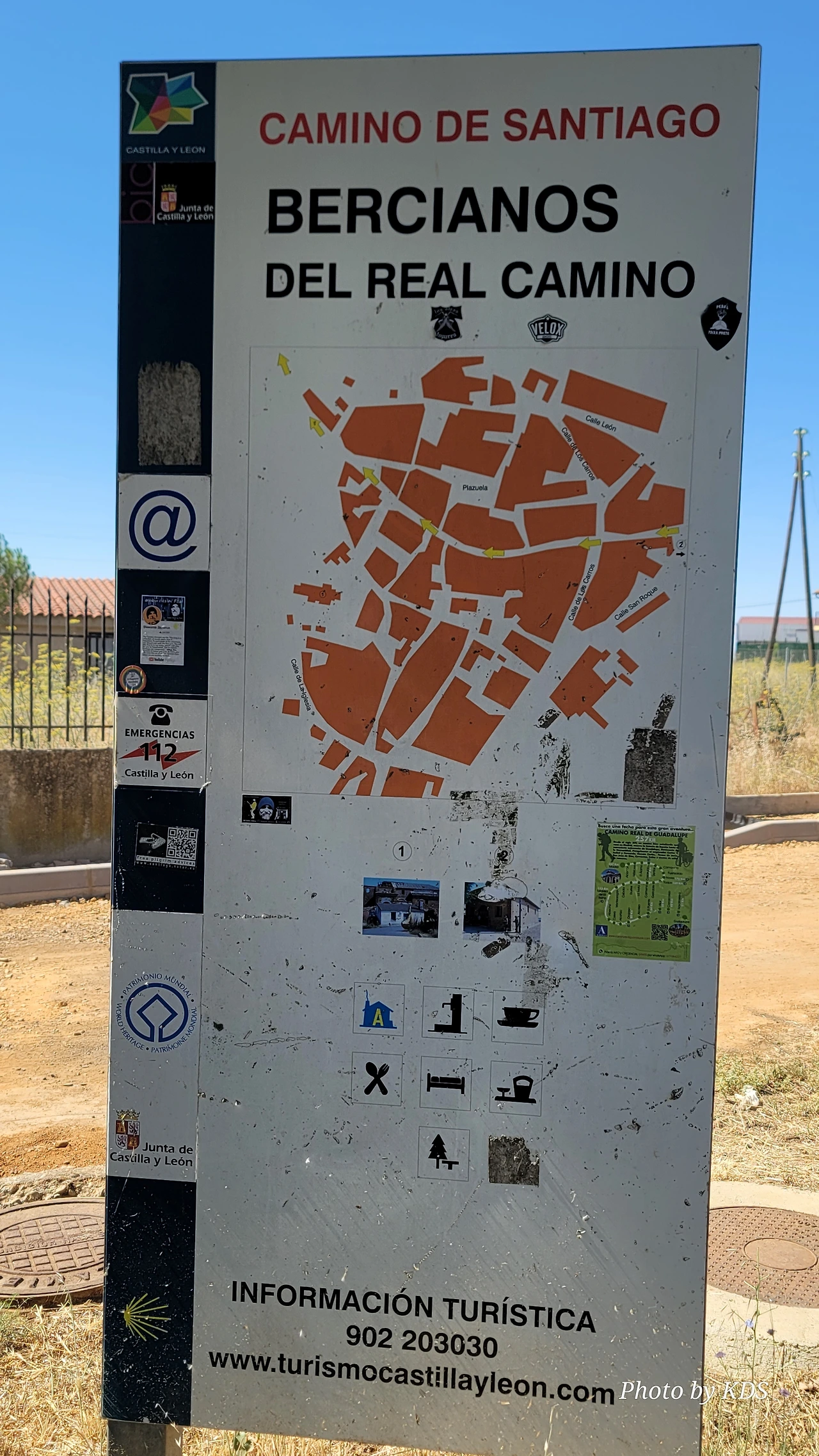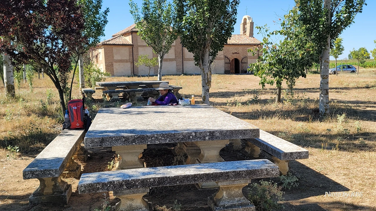 깔사다 델 꼬또(Calzada del Coto) 마을에서 4.5Km 정도 걸어오면 길옆으로 넓은 공터에 쉼터가 만들어져 있다. 그 옆으로 뻬랄레스 성모 성당(Ermita de la Virgen de Perales)이 있다. 베르시아노스 델 레알 까미노(Bercianos del Real Camino) 마을로 진입하기 바로 전인데, 성당내부에는 라 뻬랄라(La Perala)라고 부르는 성모상이 있어서 마을 사람들이 항상 이곳에 와서 예배를 드린다. 베르시아노스 델 레알 까미노 마을은 아주 작아서 인구가 200여 명도 되지 않는다고 한다. 점토와 짚으로 섞어 햇볕에 말린 가벼운 벽돌로 지은 집, 흙으로 만든 담들을 볼 수 있다. 마을 이름의 기원은 마을의 첫 거주자가 엘 비에르소(El Bierzo) 출신인 것에서 유래되었다고 한다. 이 마을의 주위에는 저수지와 작은 연못들이 많은데, 여름철에는 무더위 때문에 물이 모두 증발하여 사라지기도 한다. 마을로 걸어오는 길목에는 1998년에 순례길에서 죽은 맨프레드 프레드리히(Manfred Kress Friedrich)를 기리는 십자가 비석이 서있는데 언제 부러졌는지 십자가의 목부부이 부러진 채 서 있었다. 또 플라타너스 나무 숲길에는 알루미늄 아치 조형물이 서있다.