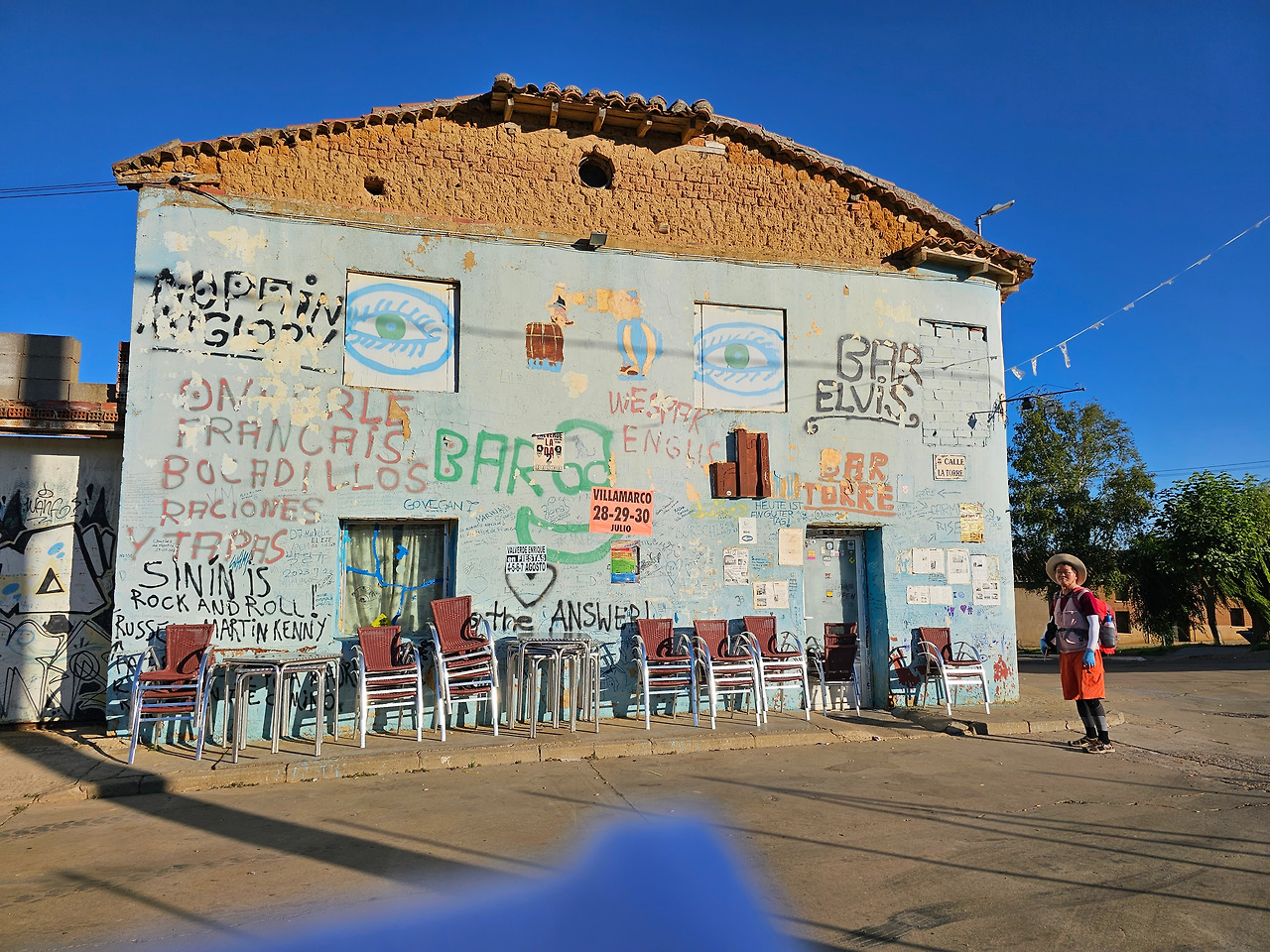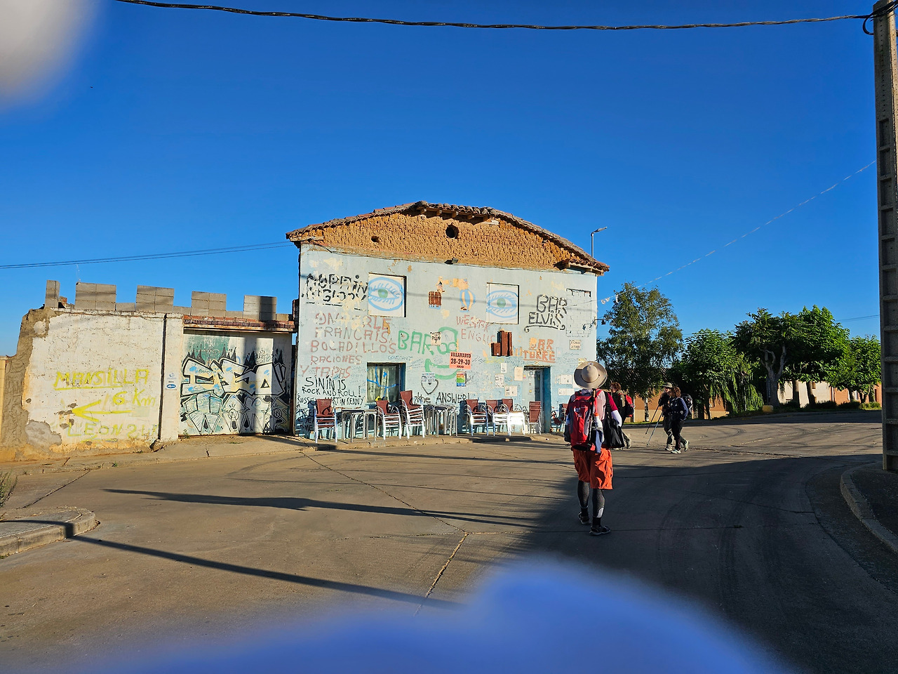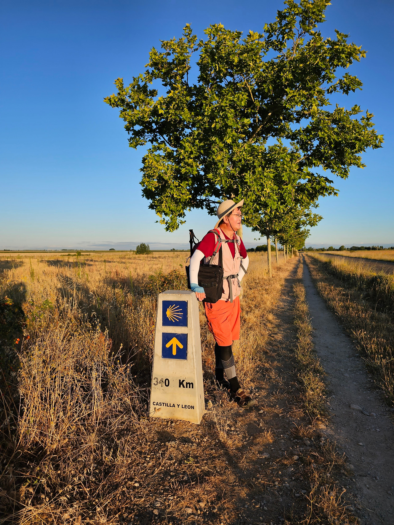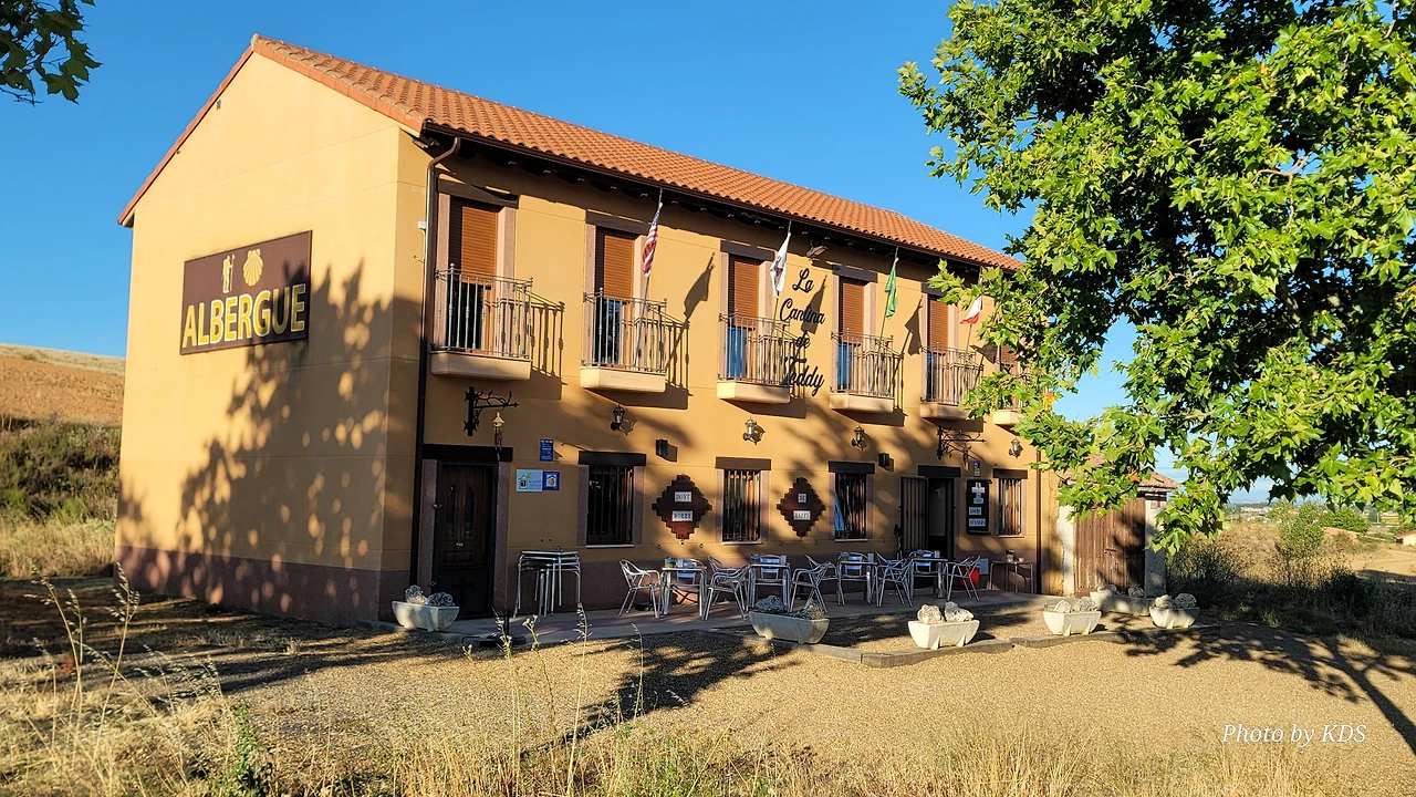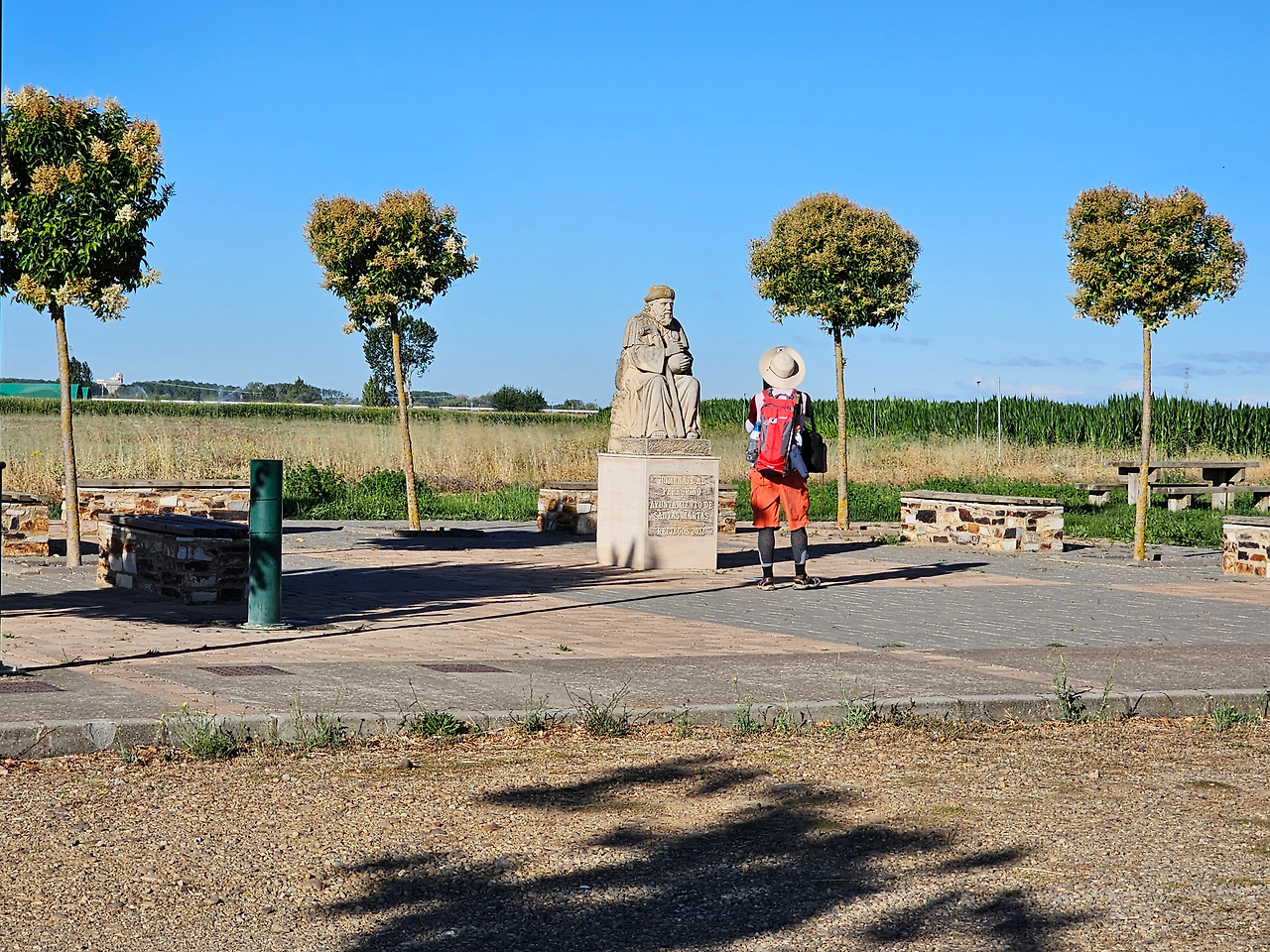 19일째 순례길의 아침을 맞는다. 05시에 기상을 하여 준비를 마치고 06:10분경에 엘 부르고 라네로(El Burgo Ranero)의 숙소를 나섰다. 하늘은 아직 시커멓고 서쪽 평원 저 멀리에 새벽달이 불그스름하게 넘어가고 있다. 마을을 빠져나오는데 길 옆에 십자가 조형물이 든든하게 서 있다. 오늘도 무사하게 예정된 순례길을 걸을 수 있기를 바래 본다. 평원에서 부는 바람은 걷기에 힘들 정도로 강하게 불기도 한다. 순례길과 자동차 포장도로가 나란히 이어져 있다. 발이 불편한 순례객을 유혹하는 것이다. 새벽이라서 다니는 차도 별로 없으니 돌멩이도 없고 발이 편한 아스팔트 포장도로 위를 걸어본다. 전등을 밝히고 걷는데 도로 위에 주검이 하나 있다. 로드킬(Road Kill)인지 자연사인지 모르겠다. 상처나 피가 나지 않을 것으로 보아서 자동차에 부딪혀서 죽은 로드킬은 아닌 듯하다. 제법 덩치가 큰 고슴도치의 사체다. 순례길을 걷다 보면 간혹 이런 로드킬을 접하곤 한다. 도로에 그냥 두면 달리는 자동차에 2-3차 깔릴 것 같아서 얼른 발로 도로 옆의 풀숲으로 밀어 넣었다. 아침부터 기분이 안 좋을 수 있으나 그런 것에 괘념할 필요가 없다. 점차 날이 밝아오니 광활한 옥수수밭에서 열 일을 하는 거대한 스프링클러가 보인다. 마치 거대한 티라노사우러스 공룡의 화석처럼 생긴 구조물이 옥수수밭이랑을 왔다 갔다 하면서 물을 주고 있는 모습이 이채롭다.