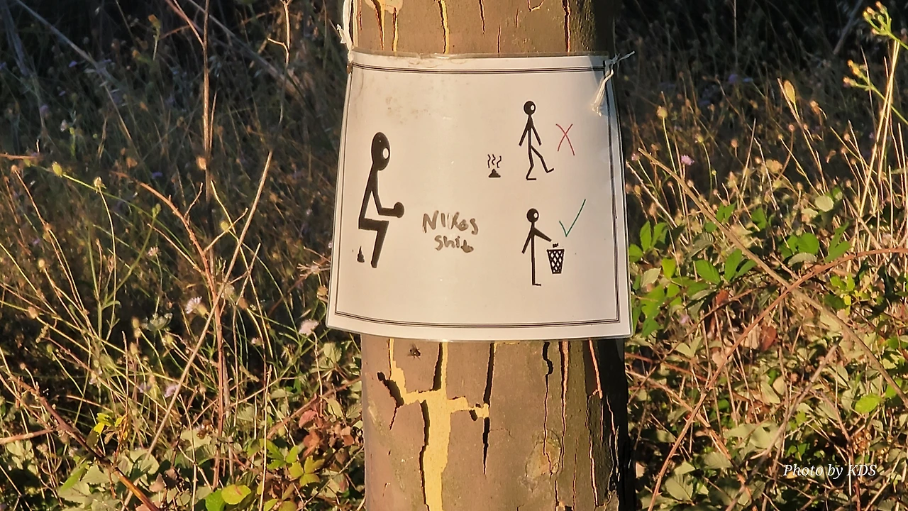 이쪽의 순례길은 메세타(Mesata)라고 해서 고원지대의 평원으로 계곡이나 산이 없다. 따라서 은폐(隱弊)나 엄폐(掩弊)할 물건이나 장소도 없고, 마을도 멀기 때문에 순례객들은 숙소를 나올 때 필히 용변을 마치는 것이 좋다. 급한 용무를 보려 해도 개활지라서 곤란한 것이다. 그래도 자연 현상은 인체의 인내를 무시하기 때문에 실례를 하게 되는 경우가 있는데, 제발 아래의 사진처럼 조치를 해달라는 간곡한 메시지를 붙여 놓았다.