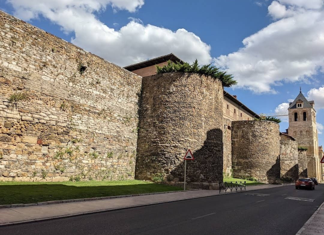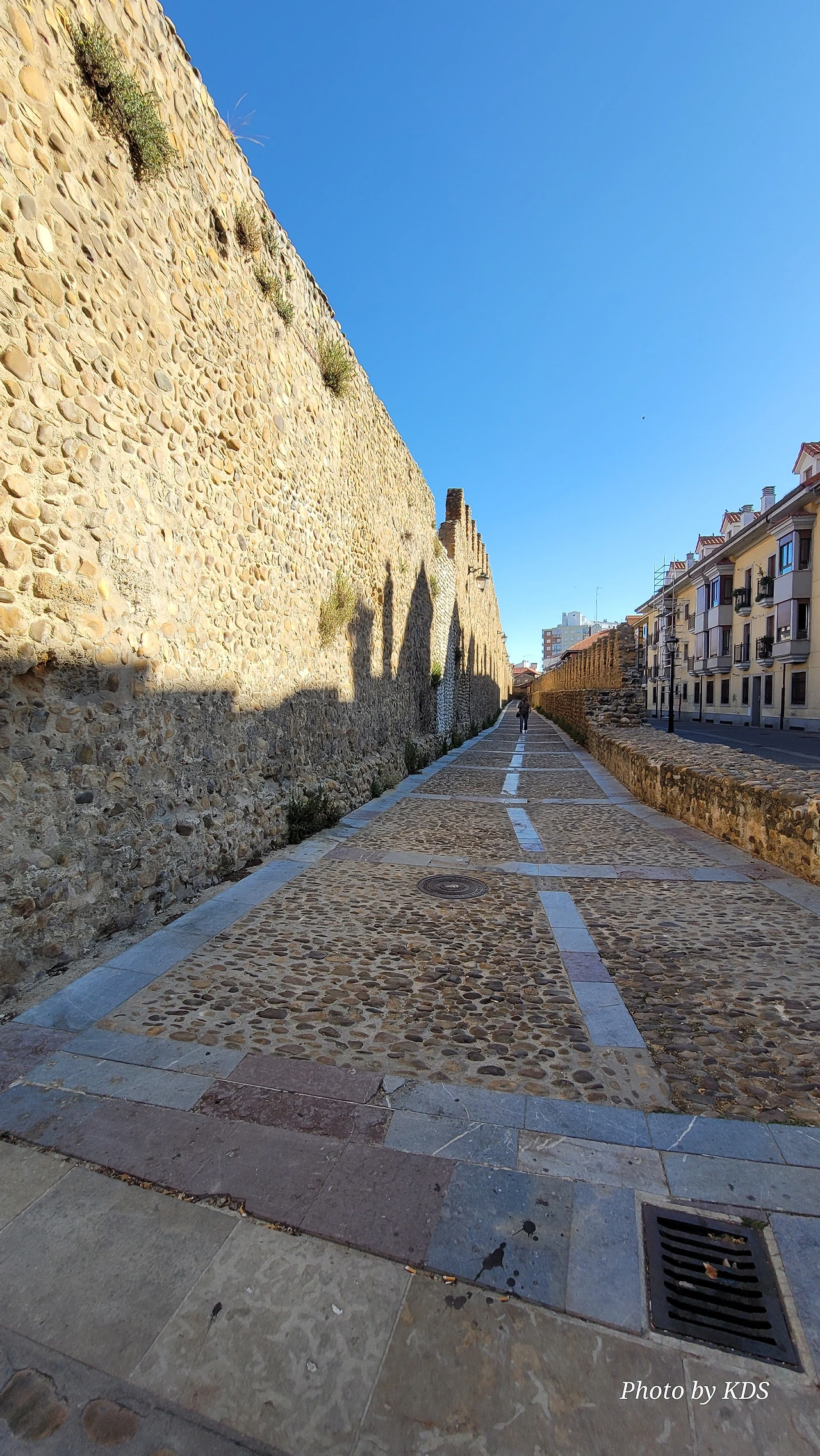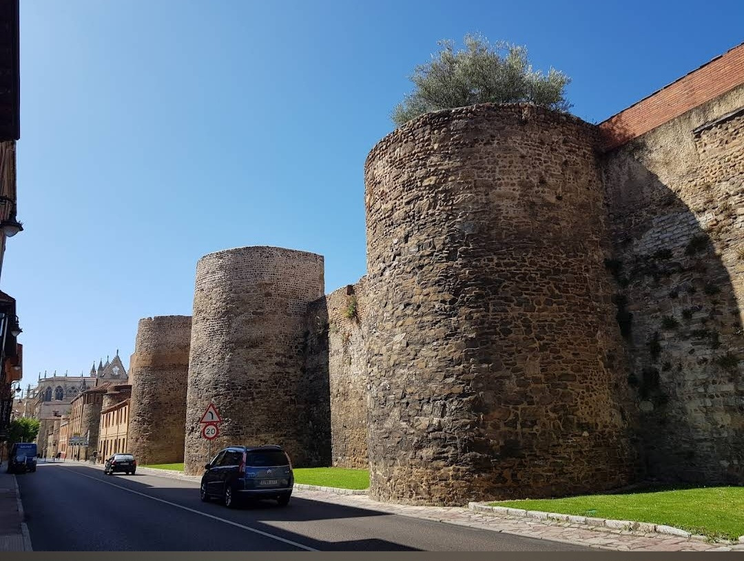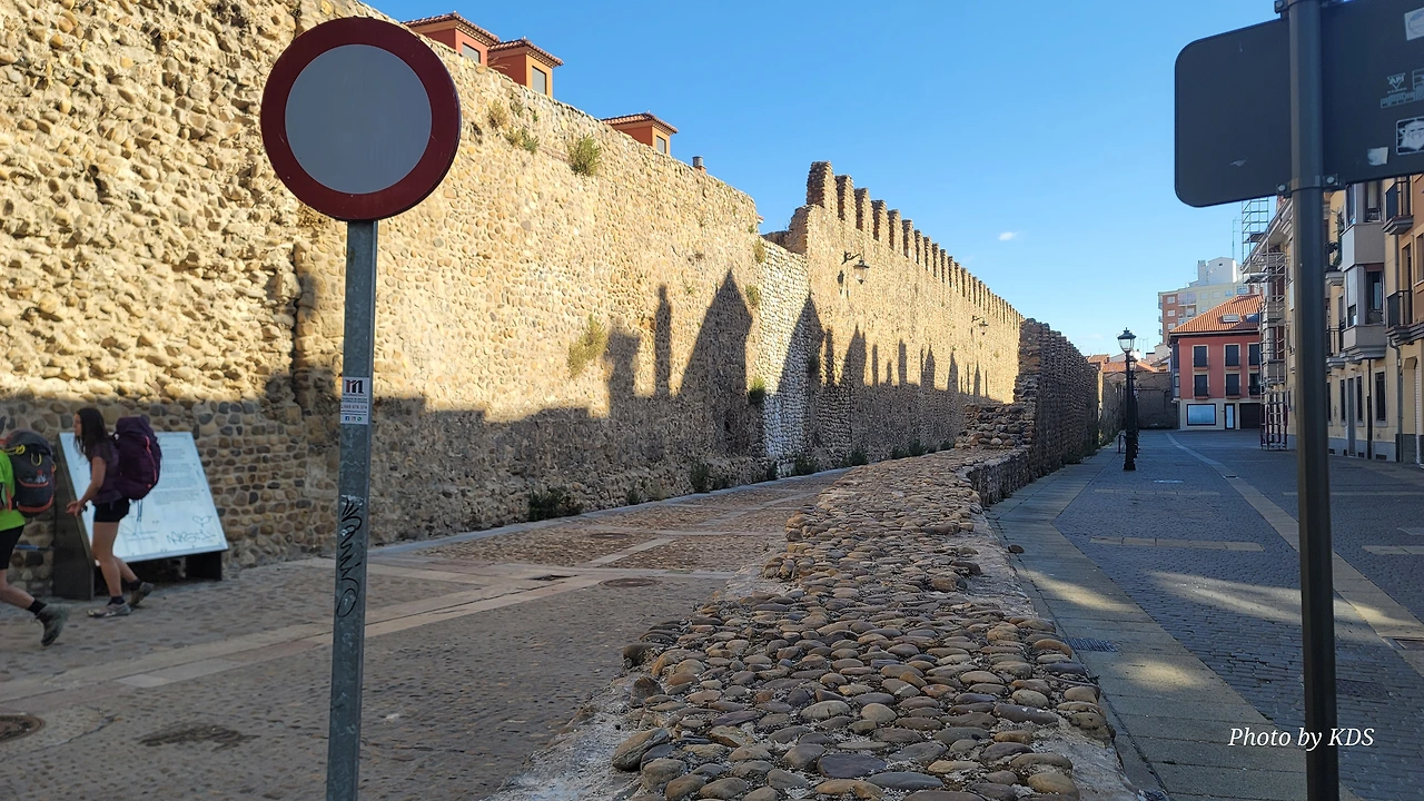 레온(Leon) 신시가지에 진입해서 Calle Rollo de Santa Ana 거리와 Alcalde Miguel Castano 거리가 맞닿는 부분이 바로 추로스 맛집 Churreria Santa Ana가 있는 곳이다. 이곳에서 아침 식사 대용으로 맛있게 추로스를 실컷 먹고 Alcalde Miguel Castano 거리를 따라 구시가지를 향해 걷는다. 도심의 거리를 한참 걸으면 Lancia 거리와 갈라지는 로터리가 나오는데, 거기서 로터리를 끼고 3시 방향으로 난 Independecia 거리로 우회전을 해서 걸으면 곧바로 구시가지가 시작된다. 구시가지는 과거 로마시대에 쌓은 성벽으로 구분이 된다. 현재는 이성벽을 Muralla Medieval de Leon(레온의 중세 성벽)으로 불린다. 많은 부분이 허물어져서 현대적 도시의 건물로 바뀌고, 성벽도 많이 훼손되었는데, 조금씩 복원을 하고 있는 중이다. 1세기경 로마인들에 의해 만들어진 이 도시는 인근의 금광에서 캐낸 금이 모이는 곳이었다. 현재 레온은 이베리아 반도 북서부의 경제발전 중심지이며, 풍성한 식재료로 스페인 최고의 식도락을 전해주는 도시로 알려져 있다. 그러나 갈 길이 바쁜 조선 과객 금삿갓으로서는 맛있는 이곳의 풍미를 즐기지 못하고 길을 제촉해야 하는 형편이라서 이쉽다. 거리와 광장을 느긋하게 거닐면서 이 지역에서 생산되는 포도주와 전통 음식의 꽃인 따빠스(Tapas)를 즐길 수 있는 바와 선술집이 눈에 선하지만 포기하고 길을 나서야 한다.