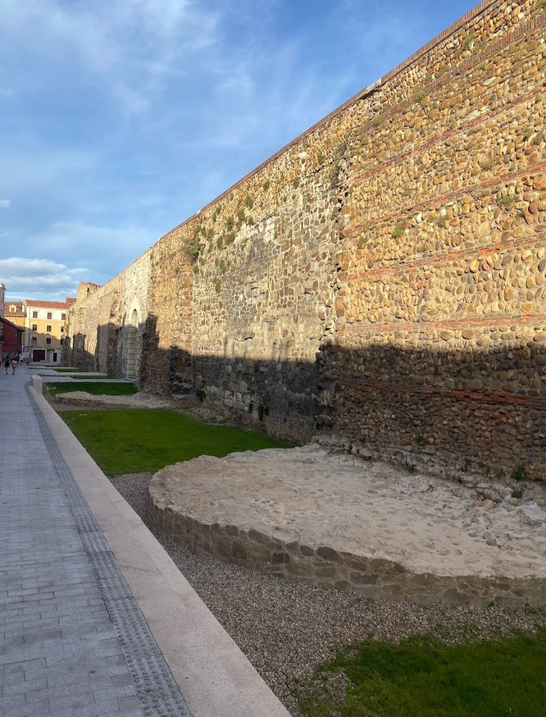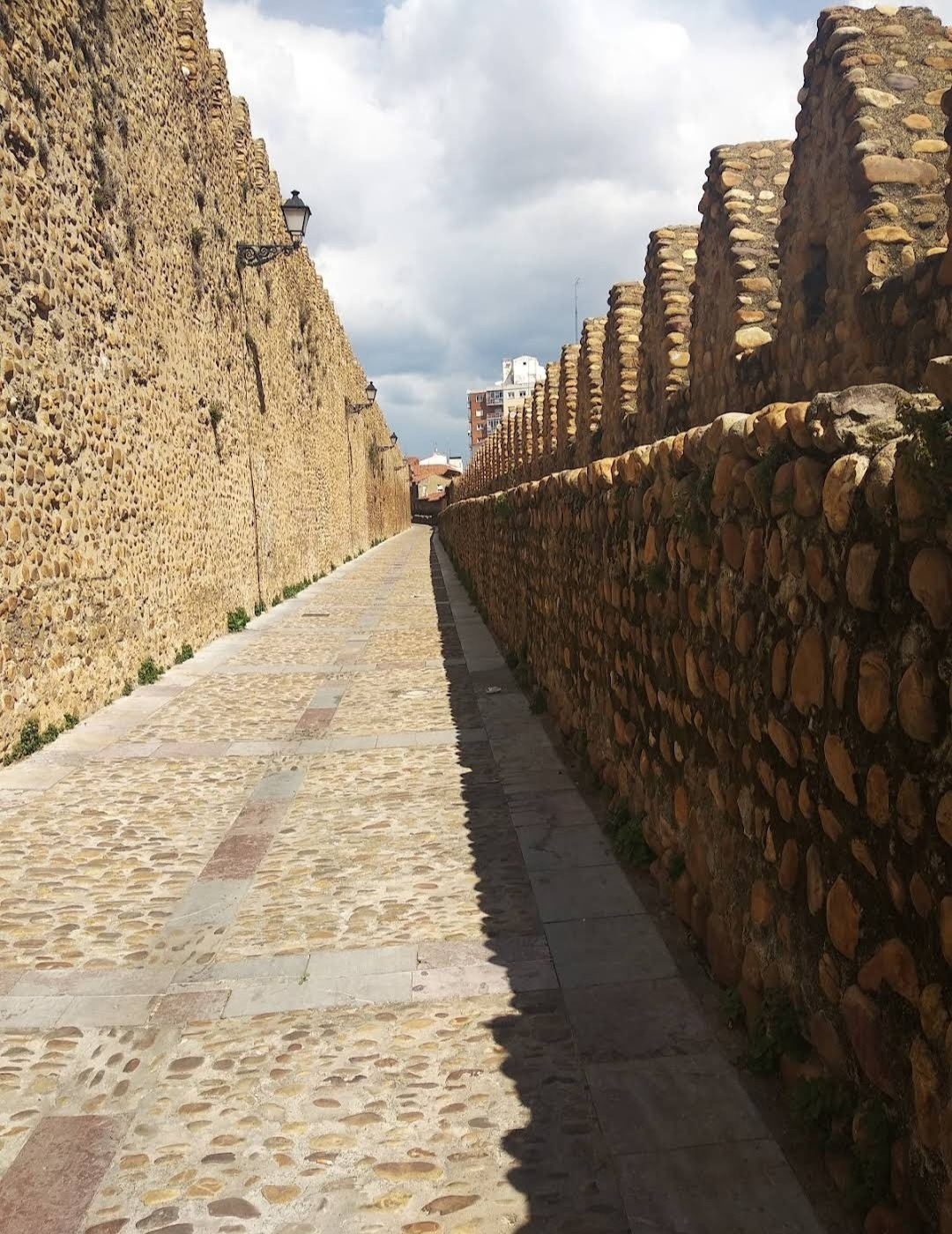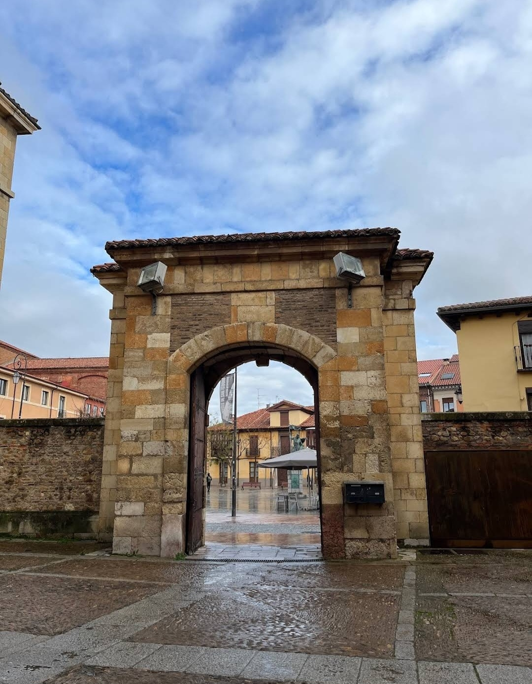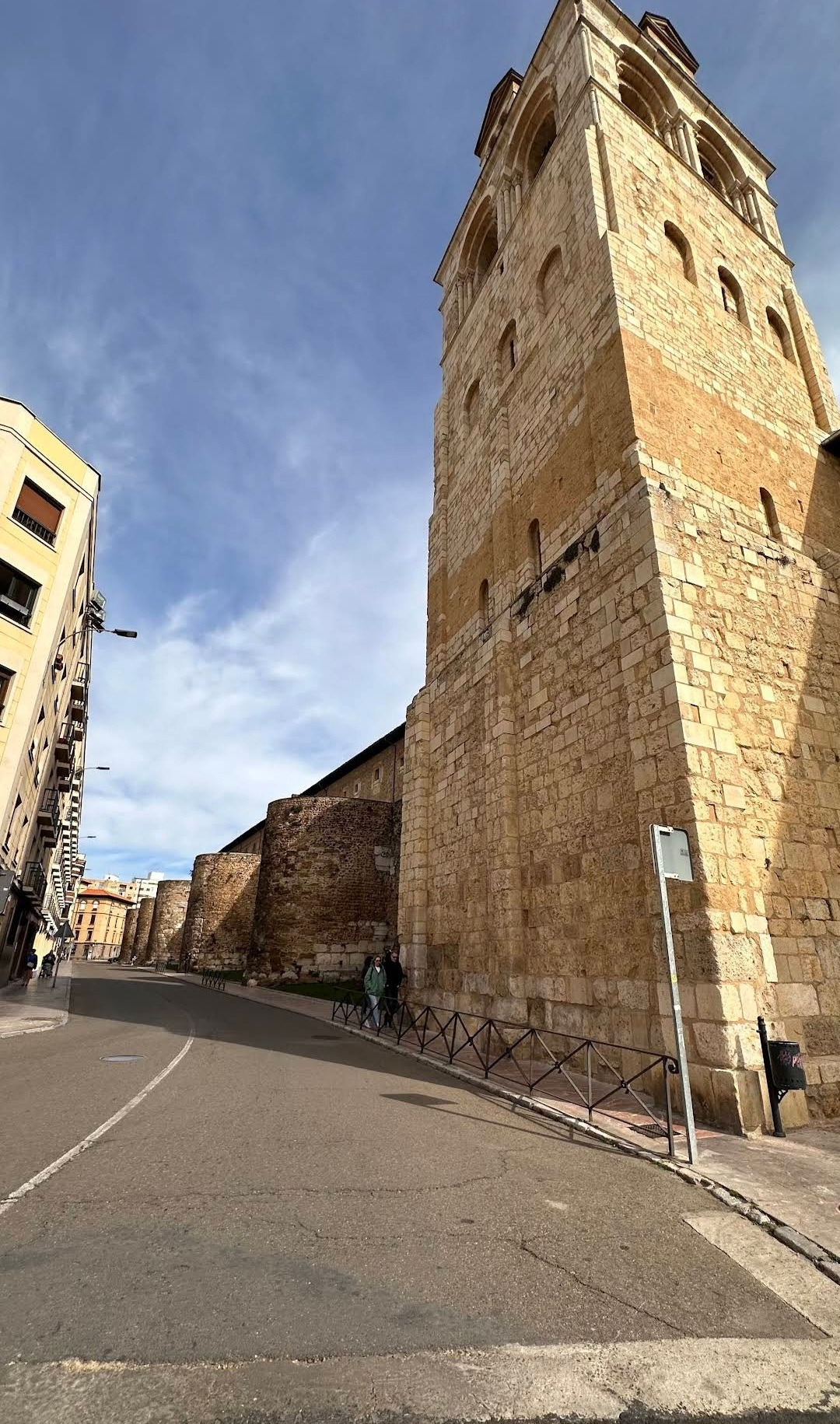 레온(Leon) 신시가지에 진입해서 Calle Rollo de Santa Ana 거리와 Alcalde Miguel Castano 거리가 맞닿는 부분이 바로 추로스 맛집 Churreria Santa Ana가 있는 곳이다. 이곳에서 아침 식사 대용으로 맛있게 추로스를 실컷 먹고 Alcalde Miguel Castano 거리를 따라 구시가지를 향해 걷는다. 도심의 거리를 한참 걸으면 Lancia 거리와 갈라지는 로터리가 나오는데, 거기서 로터리를 끼고 3시 방향으로 난 Independecia 거리로 우회전을 해서 걸으면 곧바로 구시가지가 시작된다. 구시가지는 과거 로마시대에 쌓은 성벽으로 구분이 된다. 현재는 이성벽을 Muralla Medieval de Leon(레온의 중세 성벽)으로 불린다. 많은 부분이 허물어져서 현대적 도시의 건물로 바뀌고, 성벽도 많이 훼손되었는데, 조금씩 복원을 하고 있는 중이다. 1세기경 로마인들에 의해 만들어진 이 도시는 인근의 금광에서 캐낸 금이 모이는 곳이었다. 현재 레온은 이베리아 반도 북서부의 경제발전 중심지이며, 풍성한 식재료로 스페인 최고의 식도락을 전해주는 도시로 알려져 있다. 그러나 갈 길이 바쁜 조선 과객 금삿갓으로서는 맛있는 이곳의 풍미를 즐기지 못하고 길을 제촉해야 하는 형편이라서 이쉽다. 거리와 광장을 느긋하게 거닐면서 이 지역에서 생산되는 포도주와 전통 음식의 꽃인 따빠스(Tapas)를 즐길 수 있는 바와 선술집이 눈에 선하지만 포기하고 길을 나서야 한다.