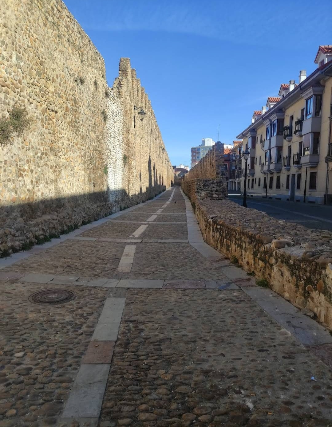 이 성벽은 AD 74년에 로마의 아우구스투스시대 Legio 6 군단에 의해 장방형으로 건축되었다. 당시에 돌로 축성을 하였다. 베르네스가(Bernesga) 강과 또리오(Torio) 강사이에 형성된 삼각형의 쐐기 모양의 지형이 산맥과 고원 사이의 전략적인 위치 해 있었기 때문일 것이다. 원래의 형태는 직사각형 모양의 길이가 570m, 너비가 350m로 면적은 20헥타르가 조금 넘는 면적을 차지했다고 한다. 방어벽의 두께는 180~200cm로 약간 안족으로 돌출된 사각탐을 축성하여 사용하였다. 그 후 로마 제국이 물러나고, 856년 아스투리아스 왕국이 여기에 좀 더 큰 성벽을 추가하였다. 1020년엔 알폰소 5세가 부르고 누에보(Burgo Nuevo)와 산마르틴(San Martin)과 같은 성벽 밖의 도시를 건설하여 현재에 이르고 있다.