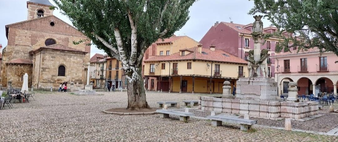 플라자 델 그라노(Plaza del Grano)는 레온(Leon)의 구시가지 중세 성벽 안에 위치한 광장이다. 흔히 그라노 광장(Plaza del Grano)으로 불리지만 원래 공식 명칭은 같은 이름의 교회를 끼고 있어서 산타 마리아 델 카미노 광장(Plaza de Santa maria del Camino)이다. 다른 이름으로는 누에스트라 세뇨라델 메르카도(Nuestra Senoa del Mercado) 광장으로도 불린다. 중세 시대부터 만들어진 광장으로 바닥이 조약돌로 잘 깔려있다. 현재 이곳은 곡물이나 각종 농산물을 판매하는 시장이 열리기도 한다. 또 산 프로리안(San Frolian) 축제 기간에는 중세 시장과 민속 공연이 이곳에서 개최된다. 광장은 불규칙한 평면도를 가지고 있으며 원래는 전체 광장이 현관이었지만 수년에 걸쳐 오래된 현관 건물은 아케이드가 없는 다른 건물로 대체되었기 때문에 부분적으로 현관이 있다. 광장 중앙에는 도시를 감싸고 흐르는 베르네스가 강(Bernesga Rio)과 또리오 강(Torio Rio)이 합류하는 것을 나타내는 두 명의 어린이가 있는 분수 조형물이 있다. 분수는 기둥과 아칸서스와 종탑 잎이 있는 수도, 그리고 도시의 상단 두 개의 방패가 있는 받침대로 구성되어 있다. 아이들은 팔 아래에 그릇에 물을 붓는 사자 가면을 등 뒤로 교차시킨 채 기둥에 붙어 있다. 또 다른 정사각형 기초가 있는 돌 십자가 조형물도 있다. 이 십자가는 또한 전설에 따르면 성모가 2월 9일에 발현한 것을 나타내는 것이란다.