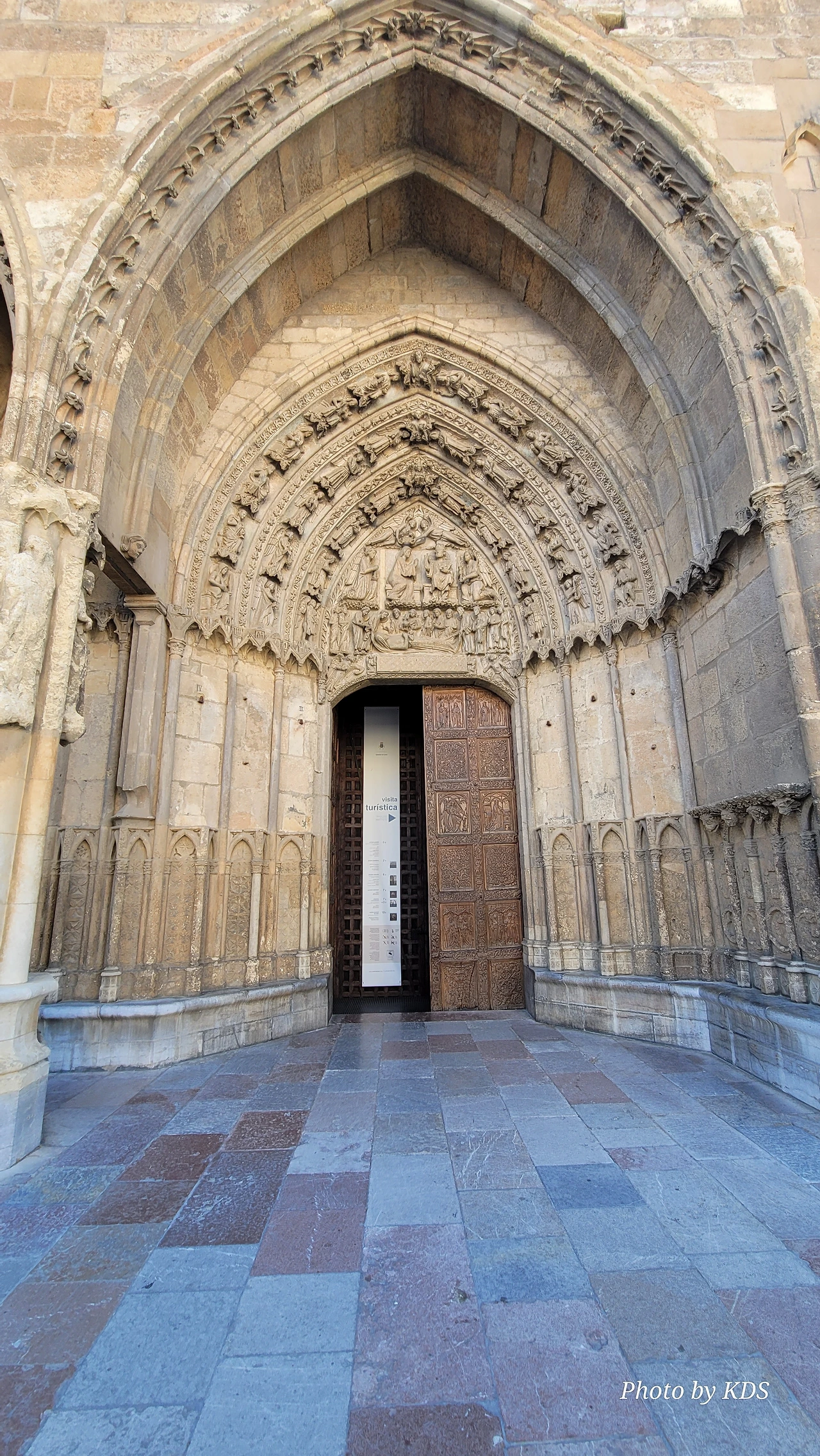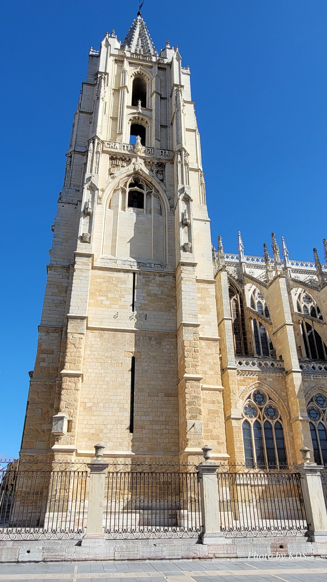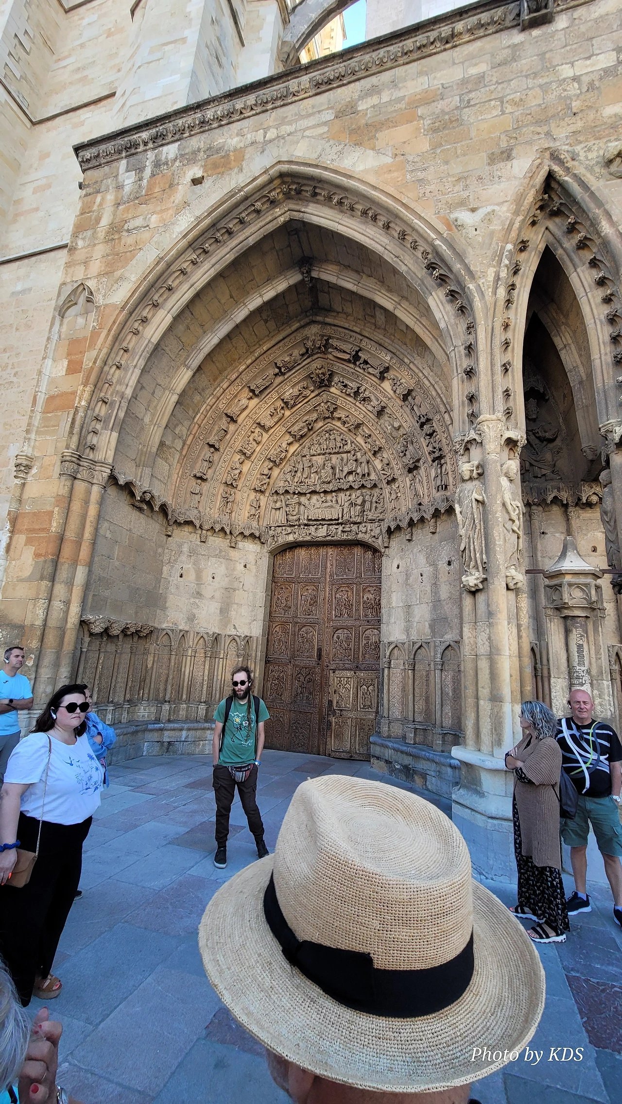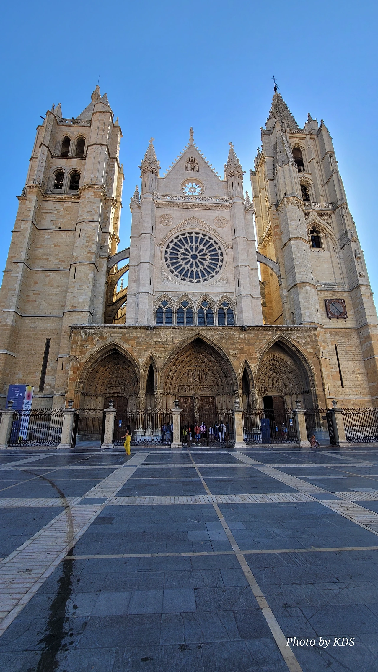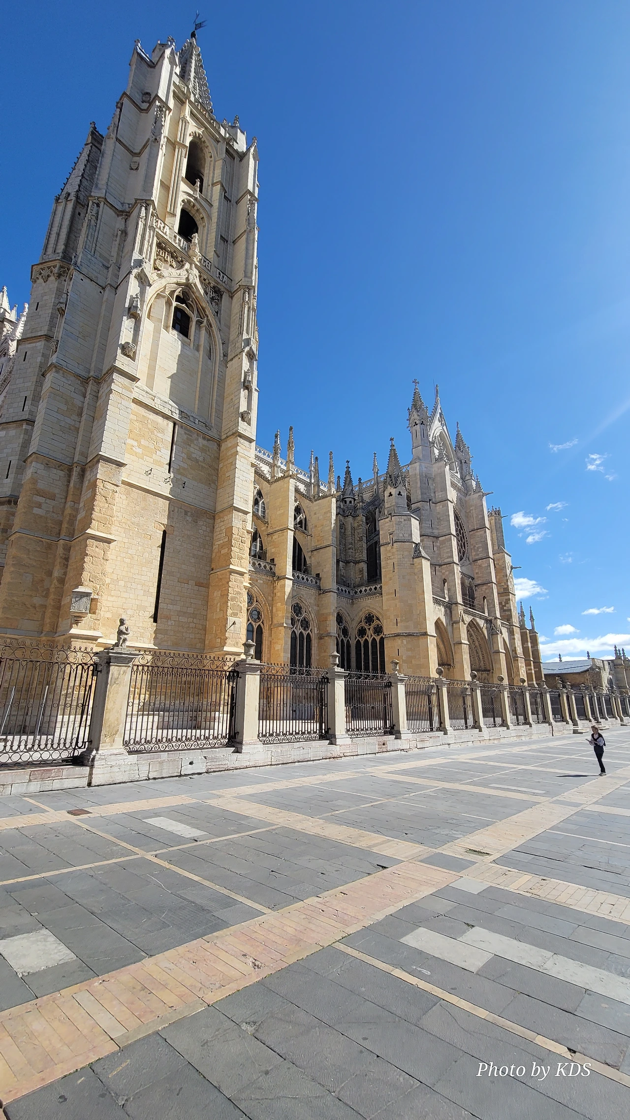 레온 대성당은 명칭이 산타 마리아 데 레글라 데 레온 대성당(Santa María de Regla de León Cathedral)인데, 성모 마리아의 이름으로 봉헌되었다. 스페인 역사상 가장 위대한 건축물 중의 하나이다. 13세기에 시작된 이 건축물은 프랑스의 영향을 받은 고딕 양식의 가장 위대한 작품 중 하나이다. '아름다운 레오네세'라는 뜻의 풀크라 레오니나(Pulchra Leonina )라고도 알려진 이곳은 산티아고 순례길 옆으로 위치해 있다. 레온 대성당에는 건축 당시에 대한 재미있는 이야기가 있다. 처음 이 성당을 건축할 때 석공들이 낮 동안 일을 해서 건물을 올리면 밤마다 거대한 두더지 한 마리가 나타나서 건물을 망가뜨리곤 했단다. 화가 난 석공들은 거대한 올가미를 놓아 두더지를 잡아서 죽였다. 죽인 두더지의 가죽을 산 후안 문에 걸어놓은 후로 더 이상 두더지가 나타나지 않았다고 전한다. 레온 대성당은 벽을 최소한의 표현으로 축소하여 스테인드 글라스로 대체한 것으로 알려져 있으며, 이는 중세 스테인드 글라스의 가장 큰 컬렉션 중 하나이다. 교회에는 거의 1,800제곱미터에 달하는 스테인드 글라스 창문이 있다. 그중 대다수는 13세기에서 15세기 사이에 만들어졌는데, 이는 중세 고딕 교회 중에서는 드문 일이다. 레온 대성당은 산티아고 순례길에 있는 부르고스(Burgos)와 종착지에 있는 산티아고 데 콤포스텔라 대성당과 함께 가장 중요한 3대 대성당 중 하나이다. 아래 사진의 길이 산 마르셀로(San Marcelo) 광장에서 레온 대성당으로 가는 산티아고 길이다.