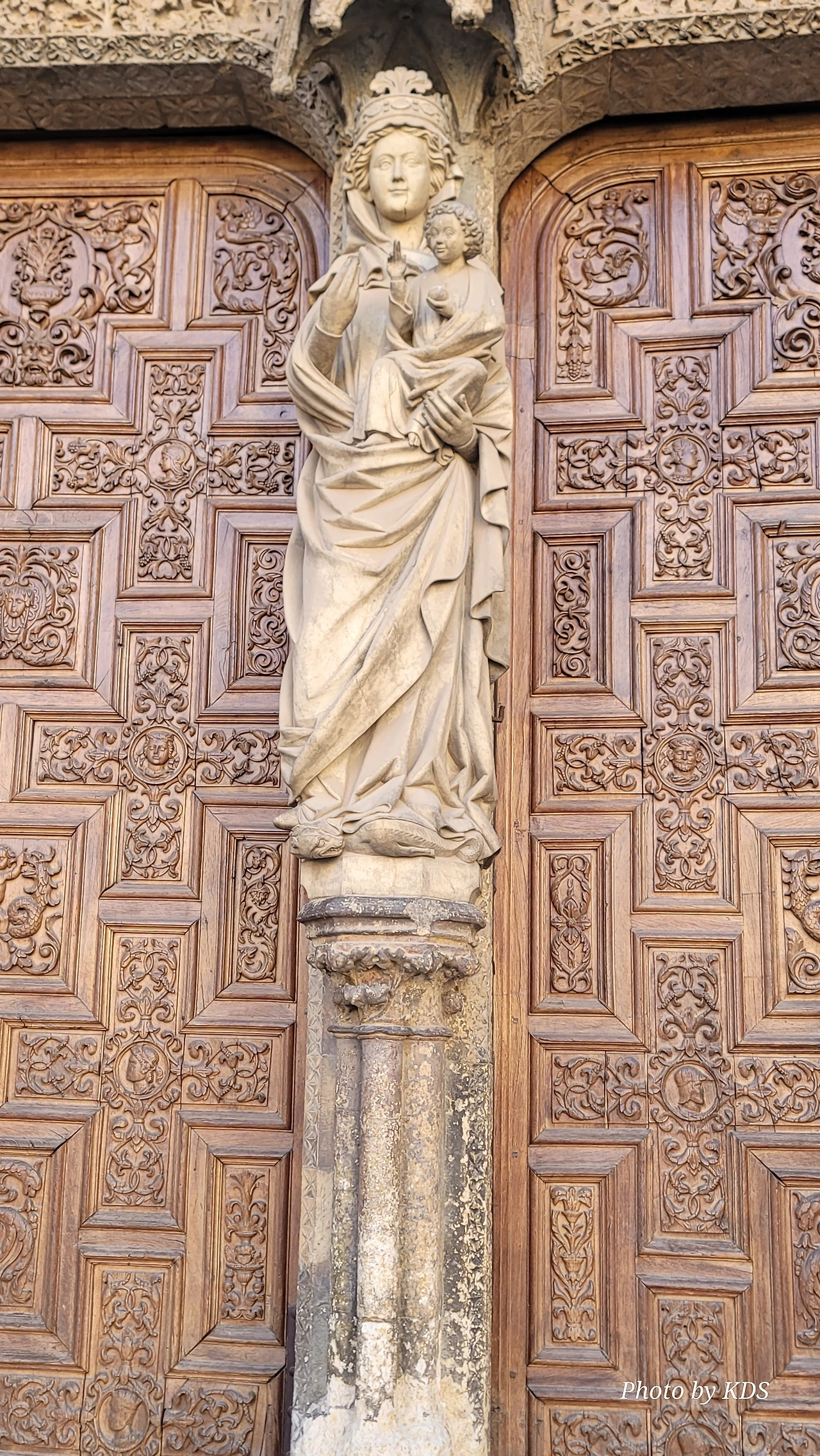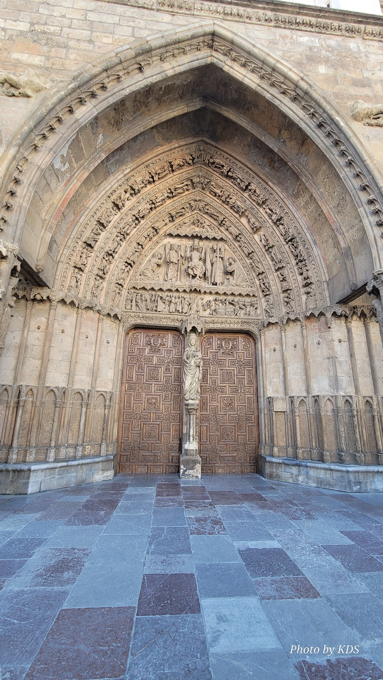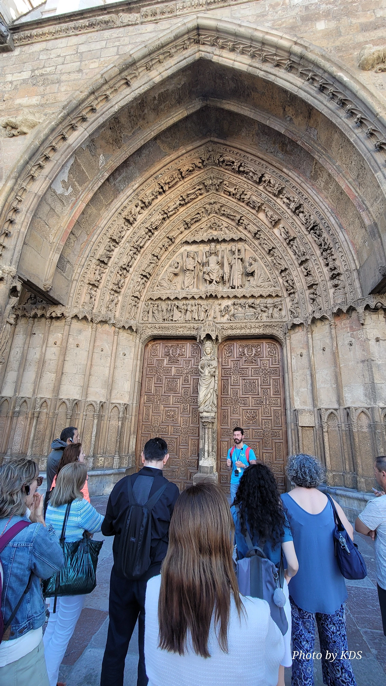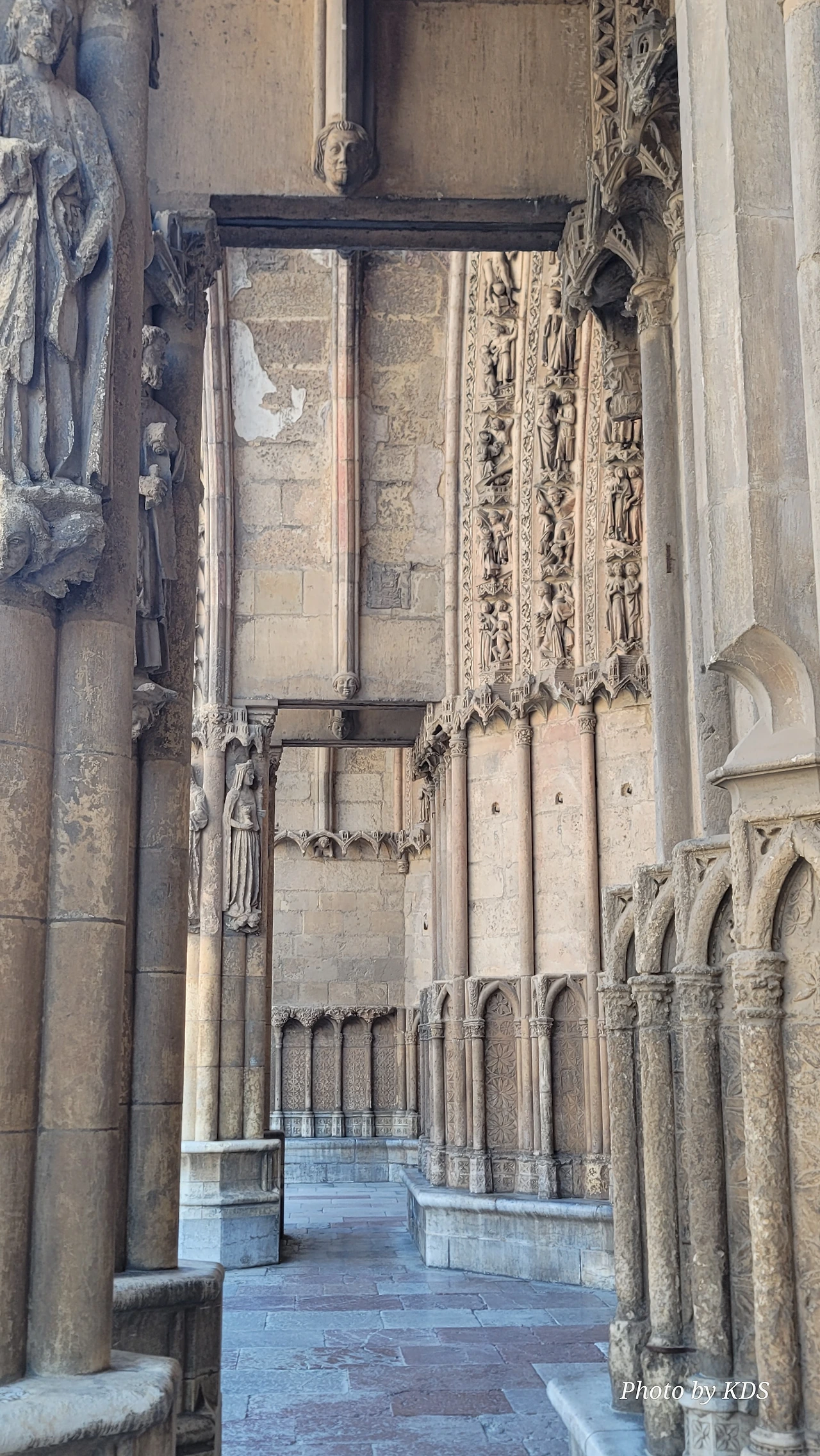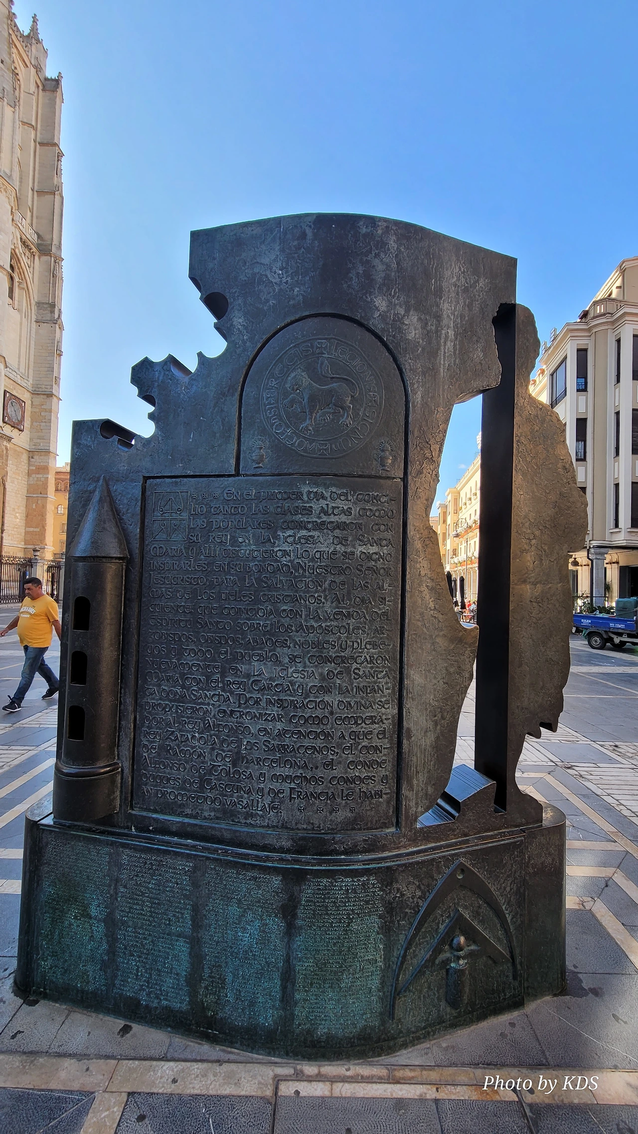 레온 대성당은 명칭이 산타 마리아 데 레글라 데 레온 대성당(Santa María de Regla de León Cathedral)인데, 성모 마리아의 이름으로 봉헌되었다. 스페인 역사상 가장 위대한 건축물 중의 하나이다. 13세기에 시작된 이 건축물은 프랑스의 영향을 받은 고딕 양식의 가장 위대한 작품 중 하나이다. '아름다운 레오네세'라는 뜻의 풀크라 레오니나(Pulchra Leonina )라고도 알려진 이곳은 산티아고 순례길 옆으로 위치해 있다. 레온 대성당에는 건축 당시에 대한 재미있는 이야기가 있다. 처음 이 성당을 건축할 때 석공들이 낮 동안 일을 해서 건물을 올리면 밤마다 거대한 두더지 한 마리가 나타나서 건물을 망가뜨리곤 했단다. 화가 난 석공들은 거대한 올가미를 놓아 두더지를 잡아서 죽였다. 죽인 두더지의 가죽을 산 후안 문에 걸어놓은 후로 더 이상 두더지가 나타나지 않았다고 전한다. 레온 대성당은 벽을 최소한의 표현으로 축소하여 스테인드 글라스로 대체한 것으로 알려져 있으며, 이는 중세 스테인드 글라스의 가장 큰 컬렉션 중 하나이다. 교회에는 거의 1,800제곱미터에 달하는 스테인드 글라스 창문이 있다. 그중 대다수는 13세기에서 15세기 사이에 만들어졌는데, 이는 중세 고딕 교회 중에서는 드문 일이다. 레온 대성당은 산티아고 순례길에 있는 부르고스(Burgos)와 종착지에 있는 산티아고 데 콤포스텔라 대성당과 함께 가장 중요한 3대 대성당 중 하나이다. 아래 사진의 길이 산 마르셀로(San Marcelo) 광장에서 레온 대성당으로 가는 산티아고 길이다.
